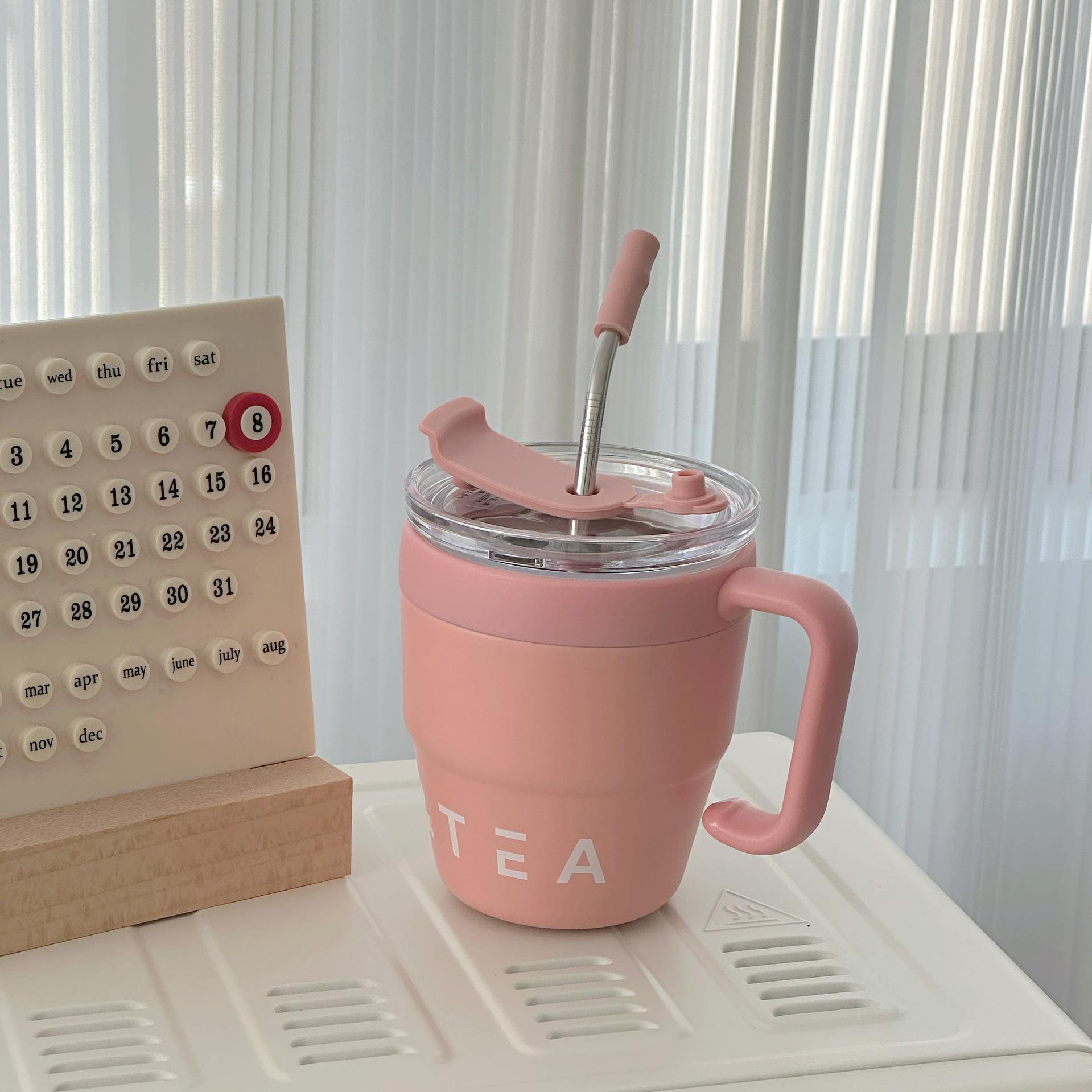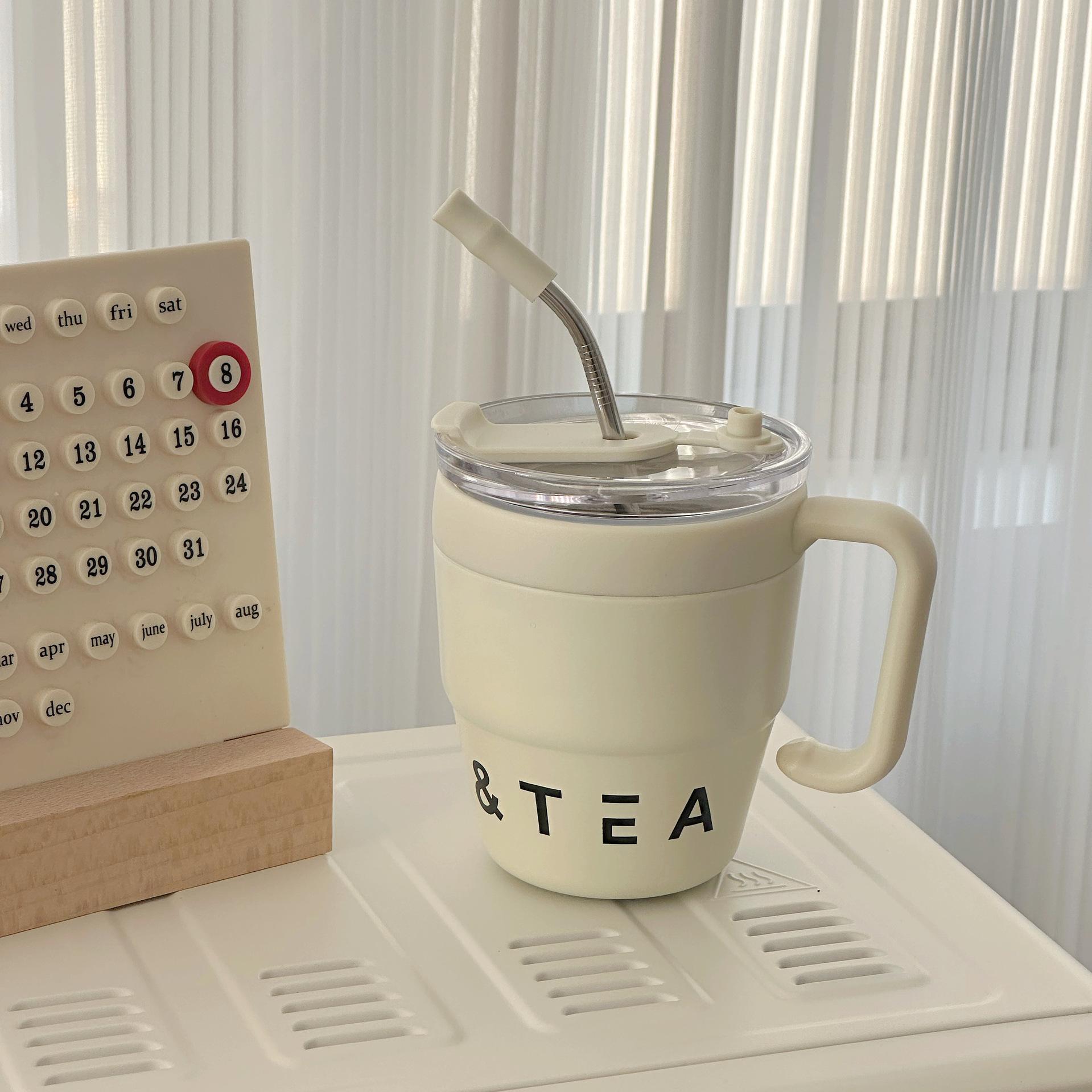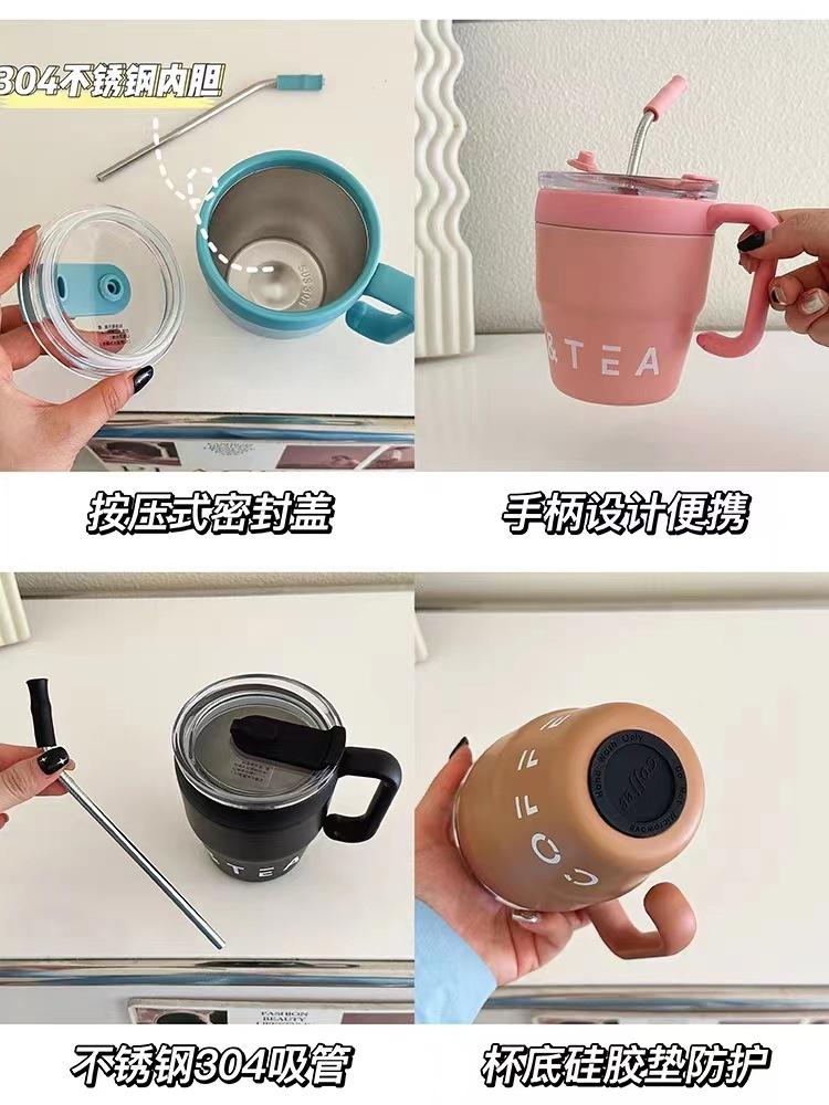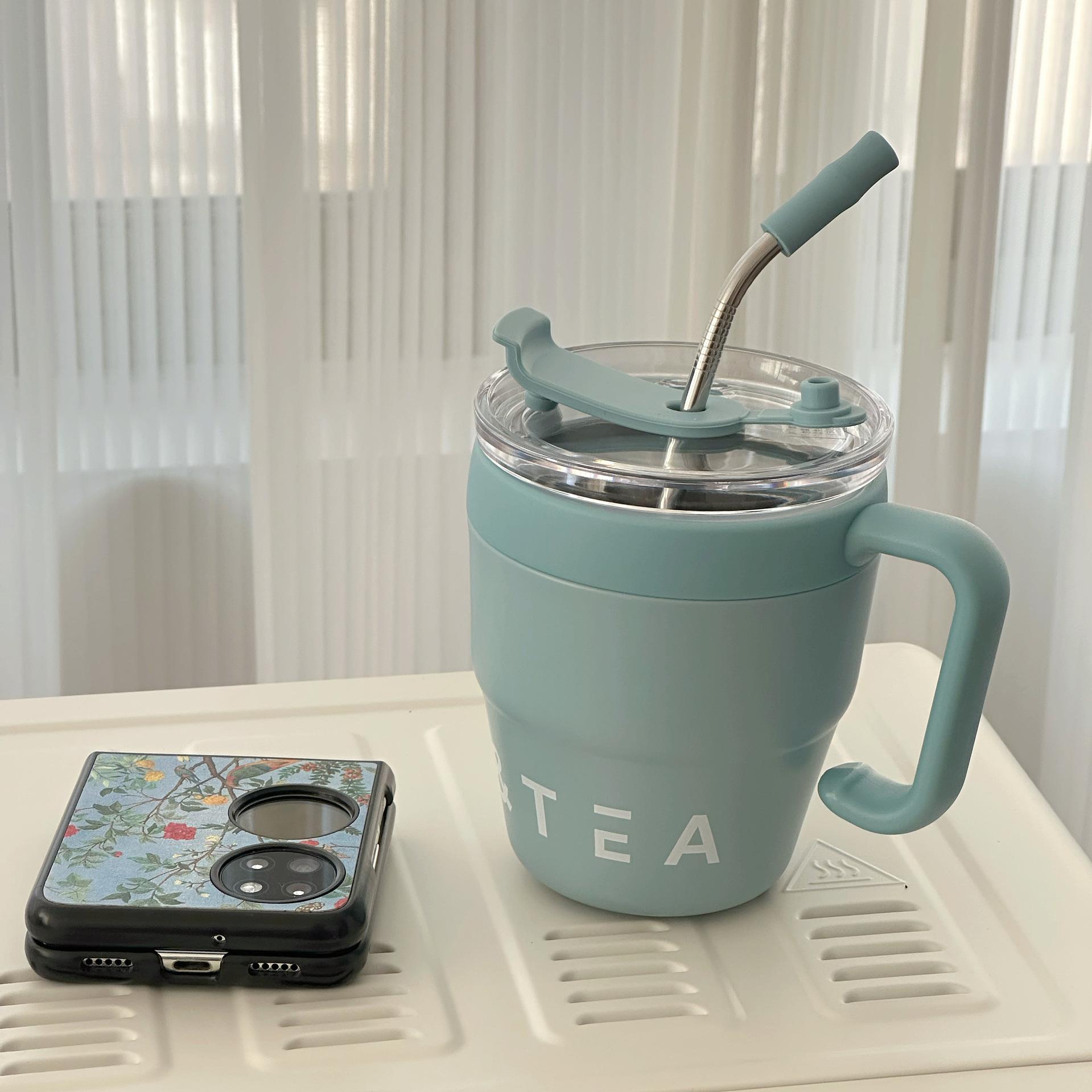 Taza Termo de Acero Inoxidable Nueva Estilo INS Taza para Café de Doble Bebida Taza para Leche con Popote Asa de Oficina Taza para Té