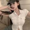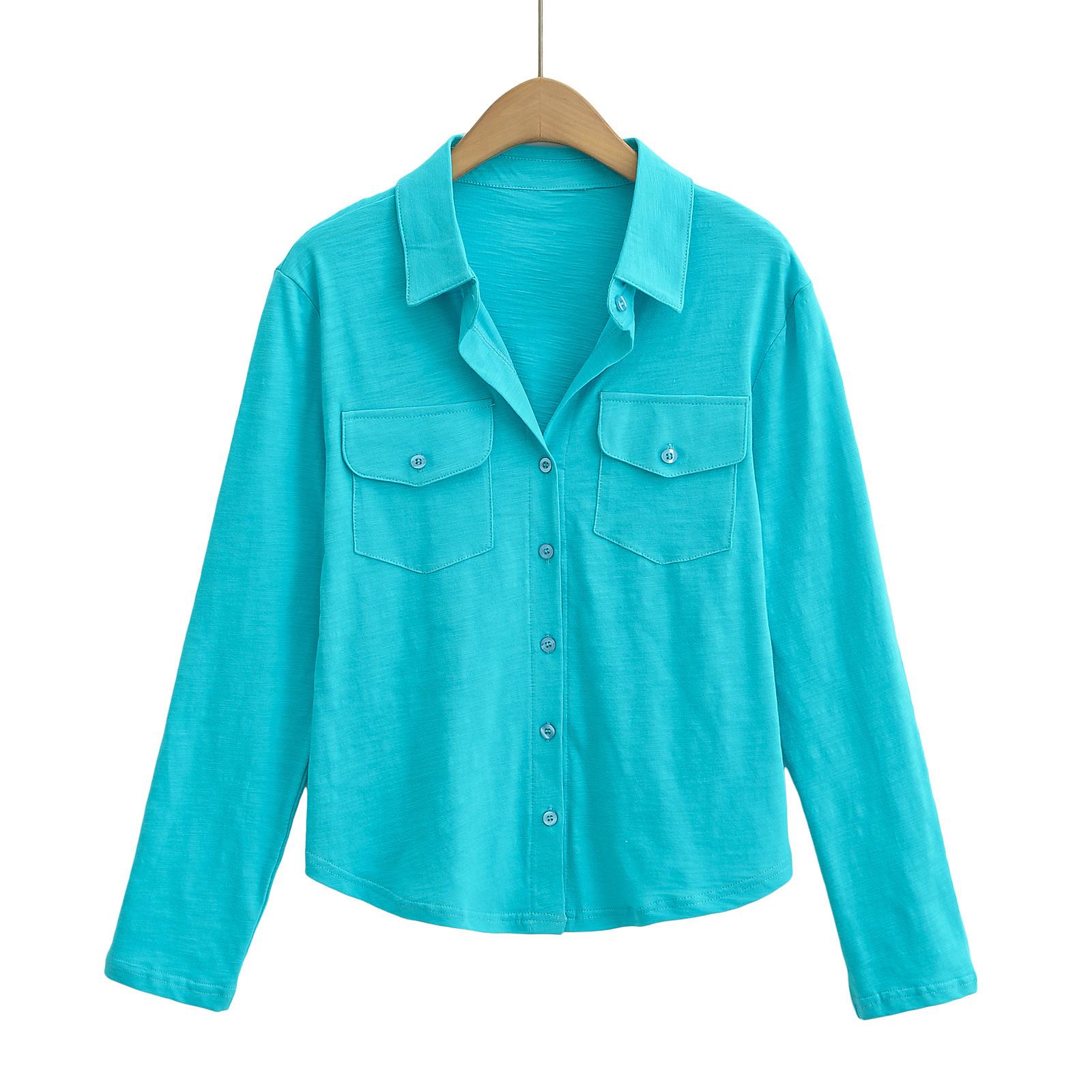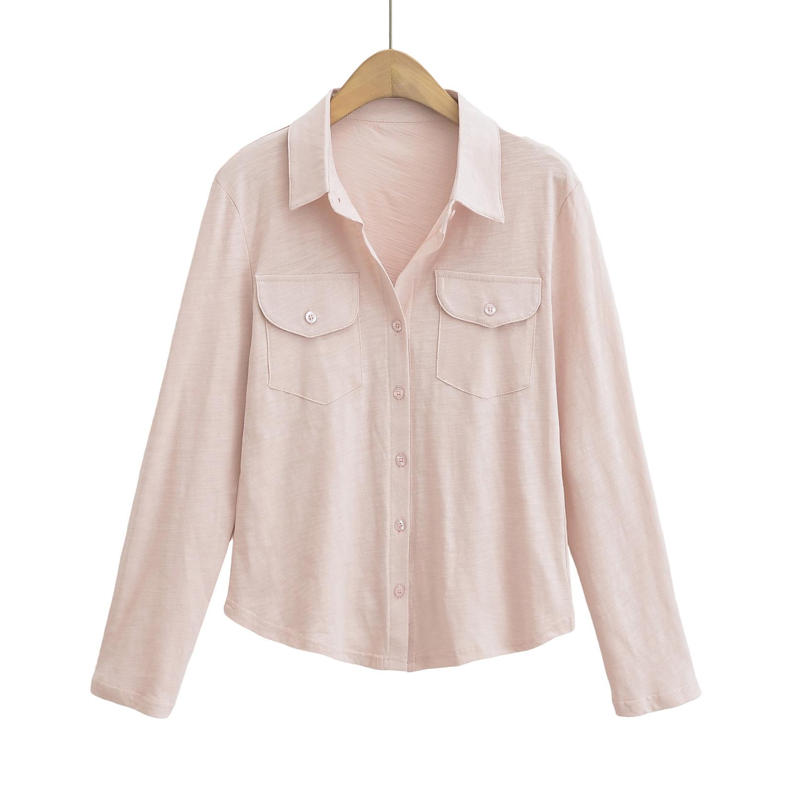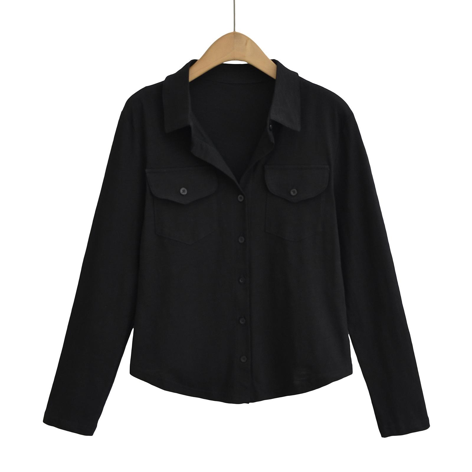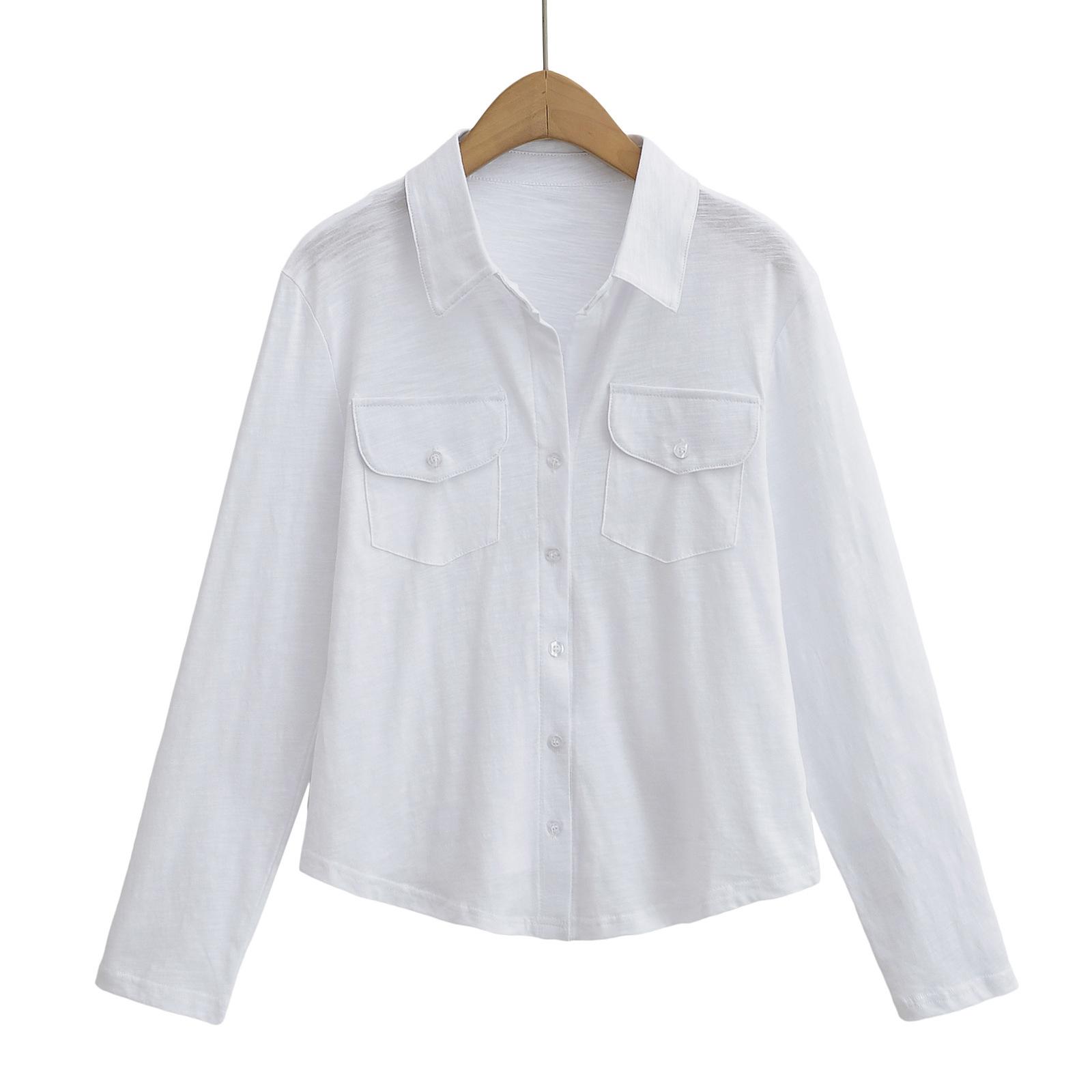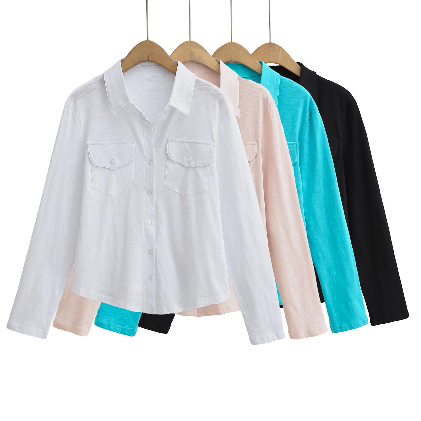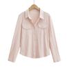 Camisa de manga larga con bolsillo de solapa para mujer, estilo Pure Desire Wind, versátil, holgada, de verano 2024