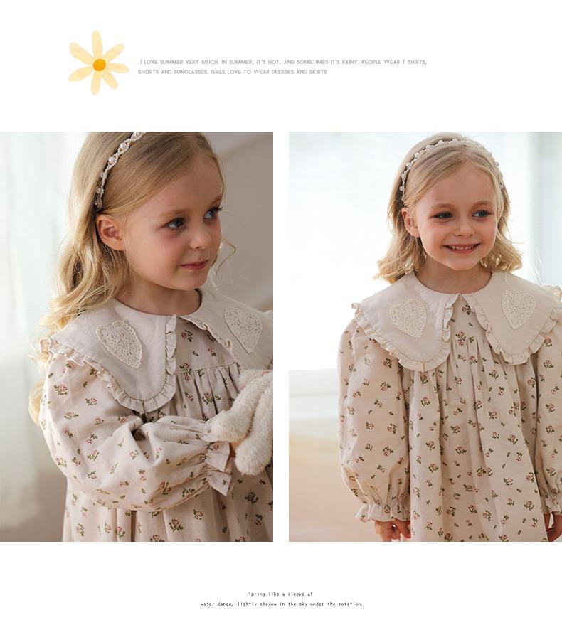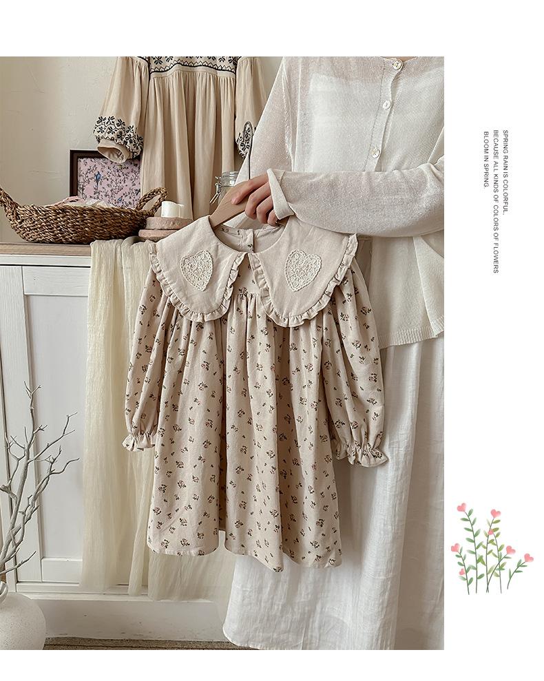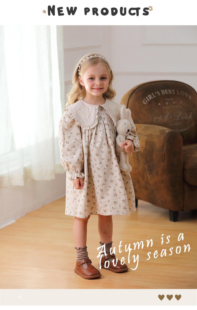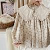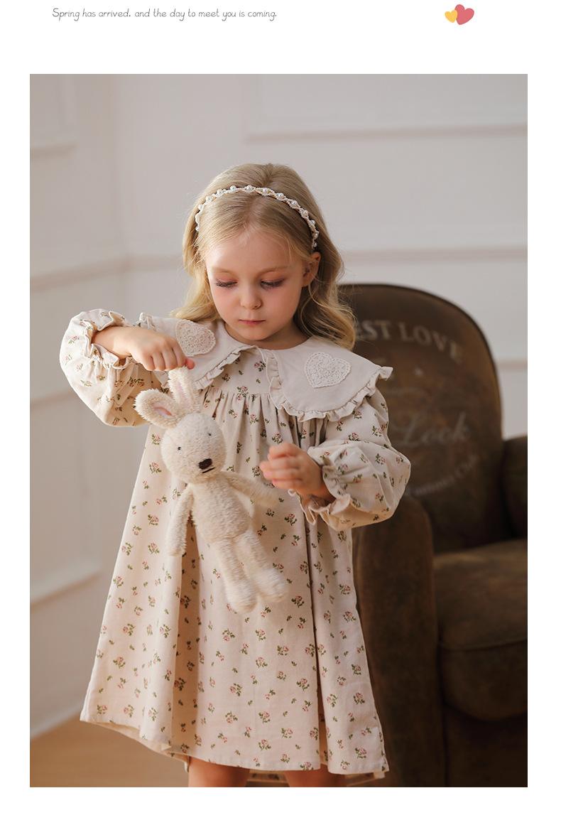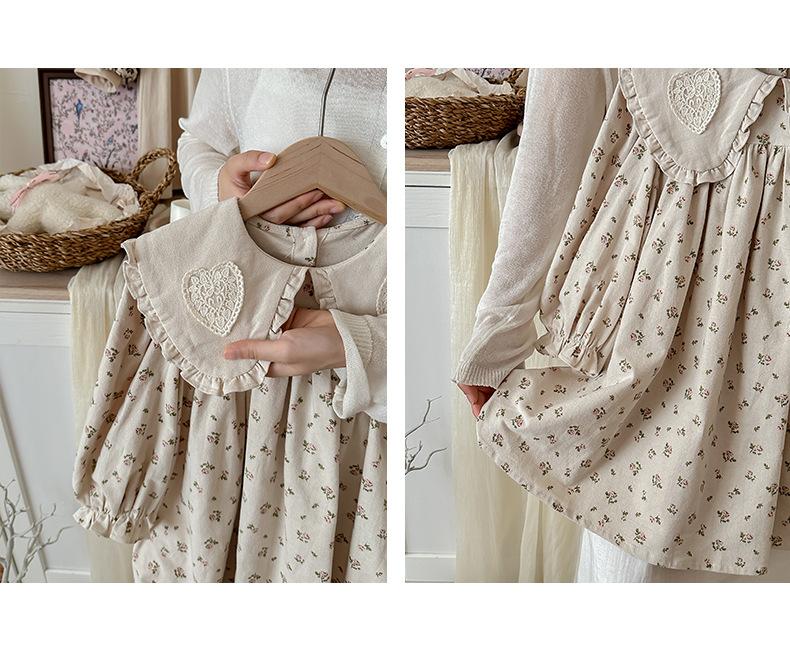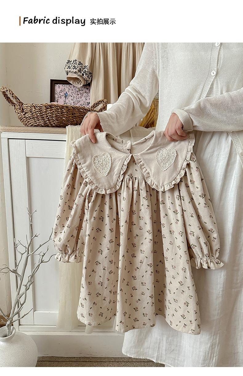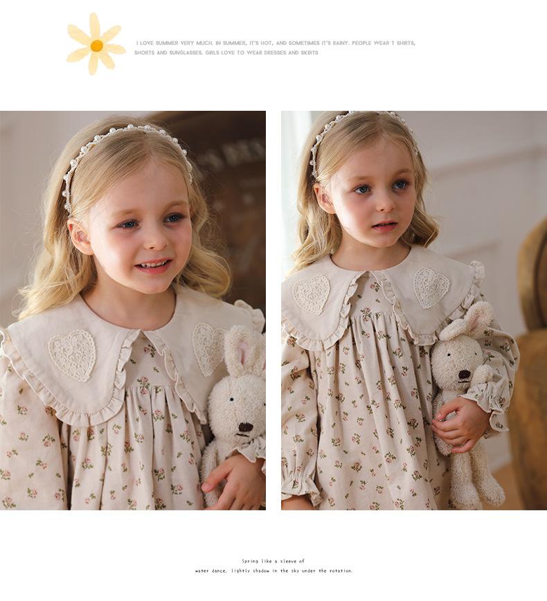 Vestido de encaje con estampado de solapa estilo coreano para niñas, otoño 2024, nuevo vestido de princesa dulce de manga larga para niñas, algodón puro
