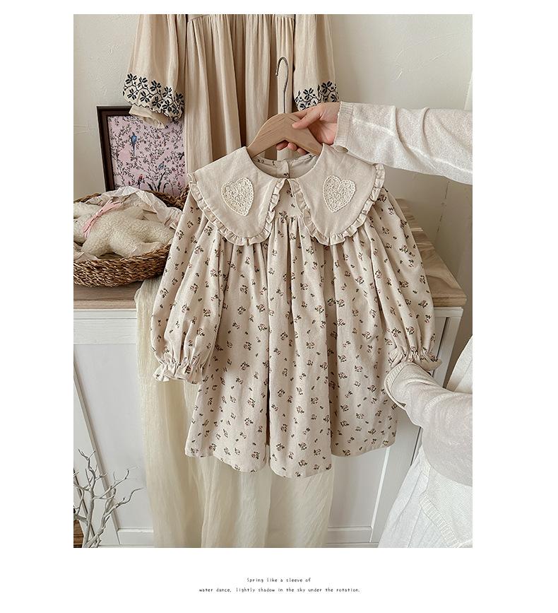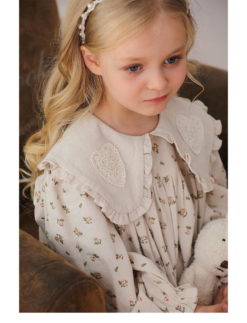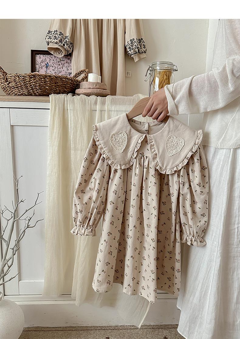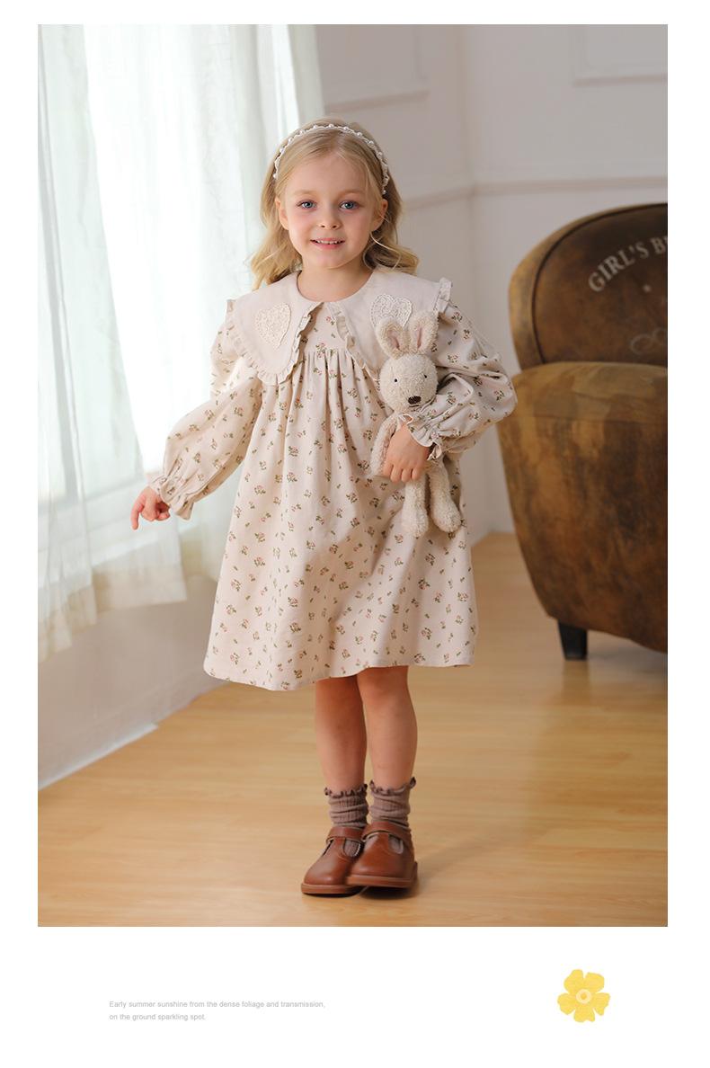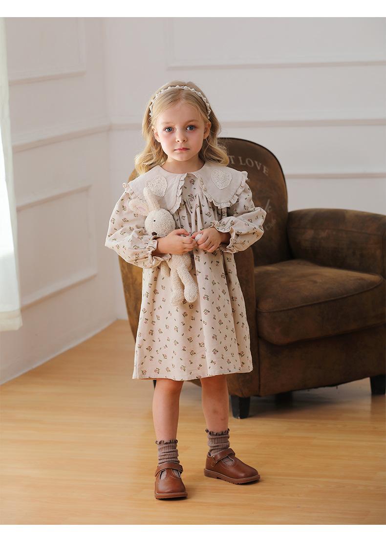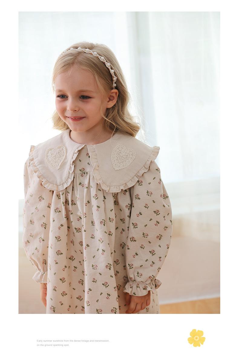 Vestido de encaje con estampado de solapa estilo coreano para niñas, otoño 2024, nuevo vestido de princesa dulce de manga larga para niñas, algodón puro