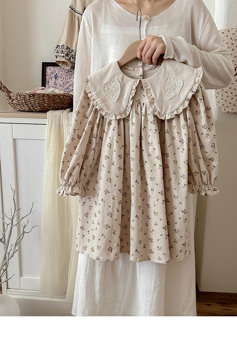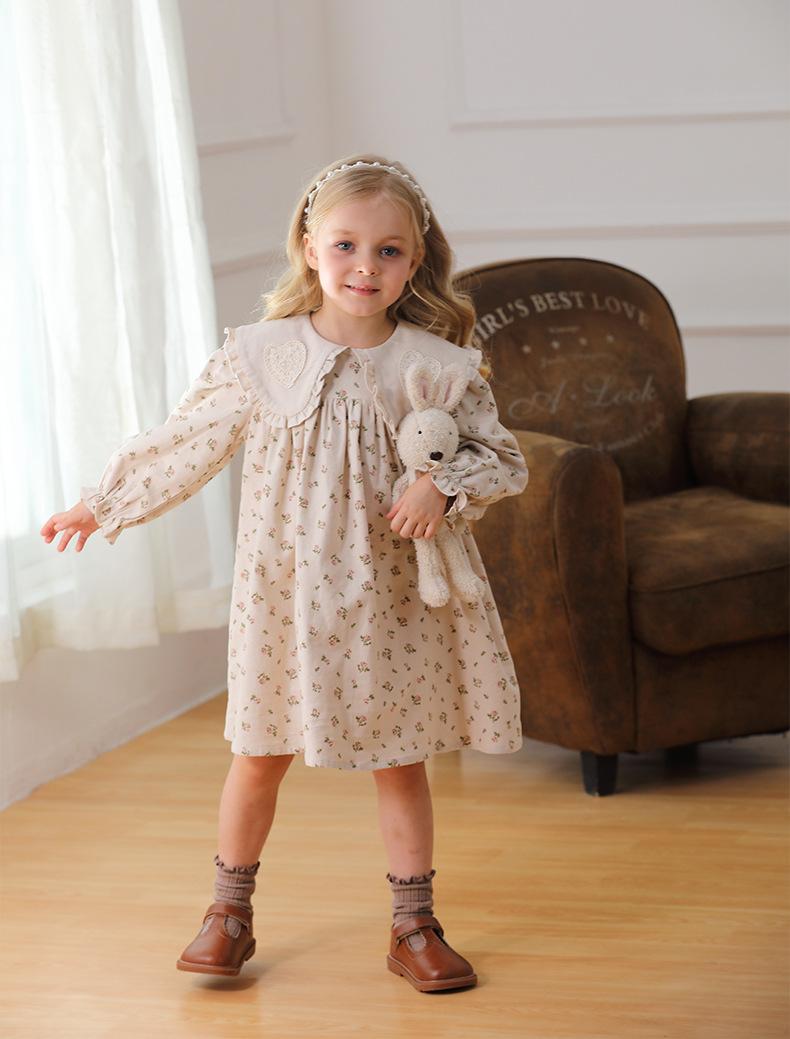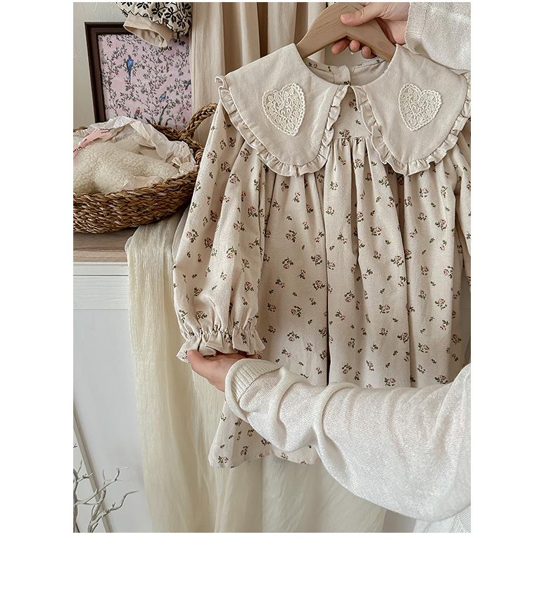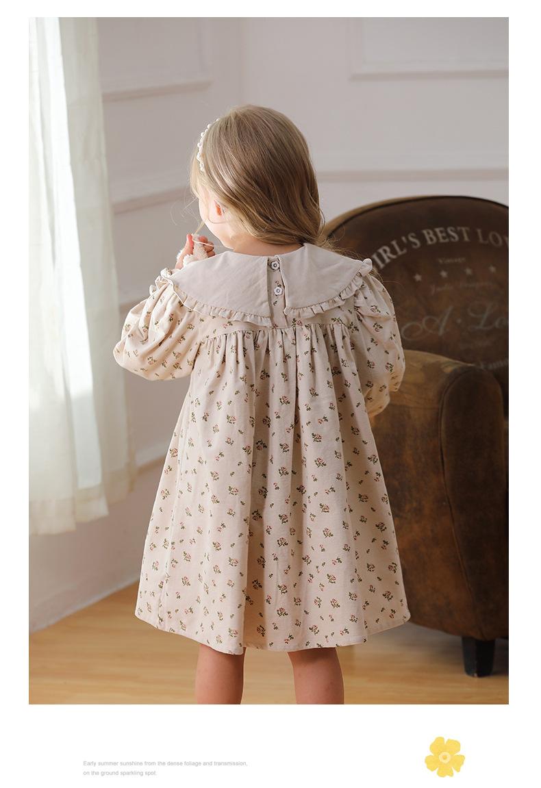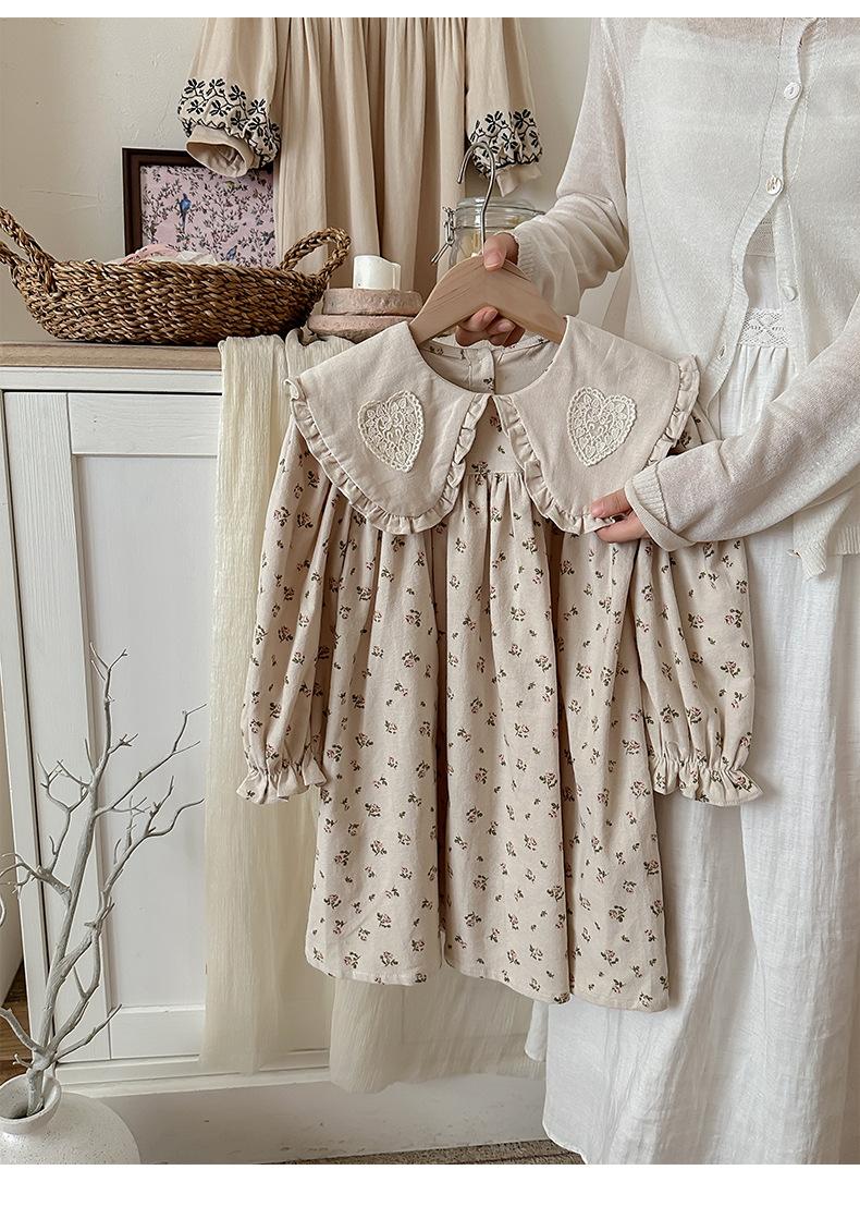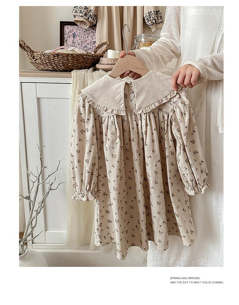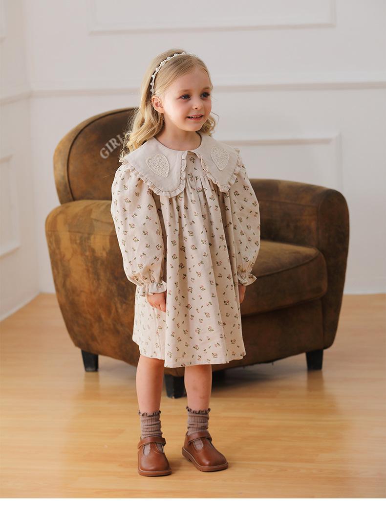 Vestido de encaje con estampado de solapa estilo coreano para niñas, otoño 2024, nuevo vestido de princesa dulce de manga larga para niñas, algodón puro
