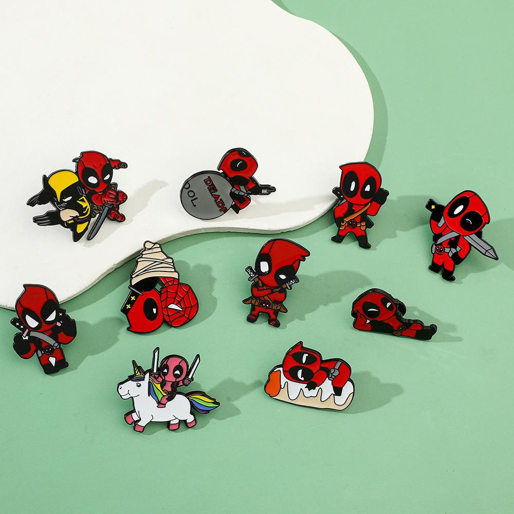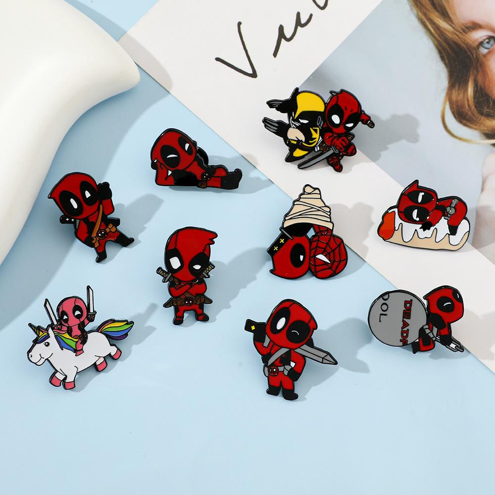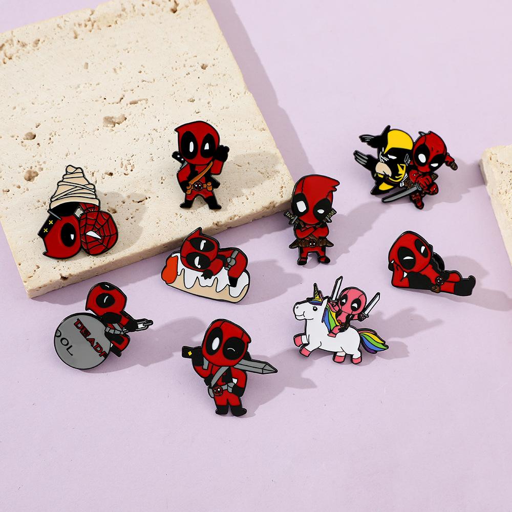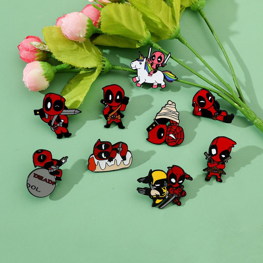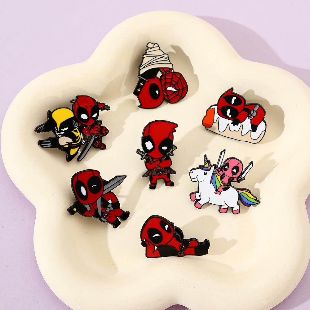 Broche de metal con forma de gota de aceite de personaje de película decorativa de Deadpool con personalidad linda de animación de dibujos animados, insignia de aleación, accesorios