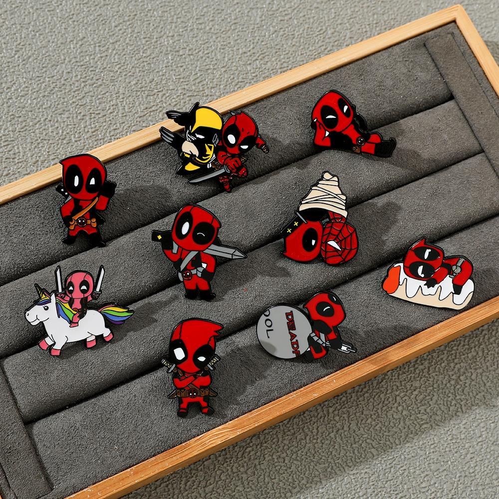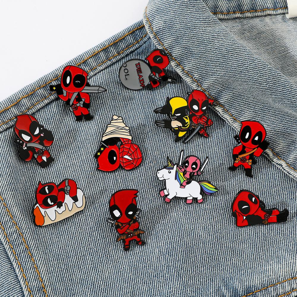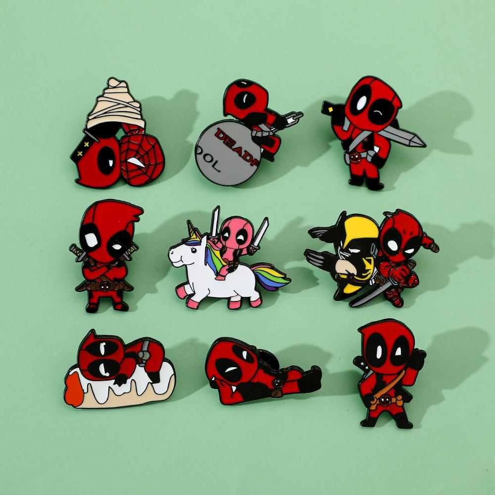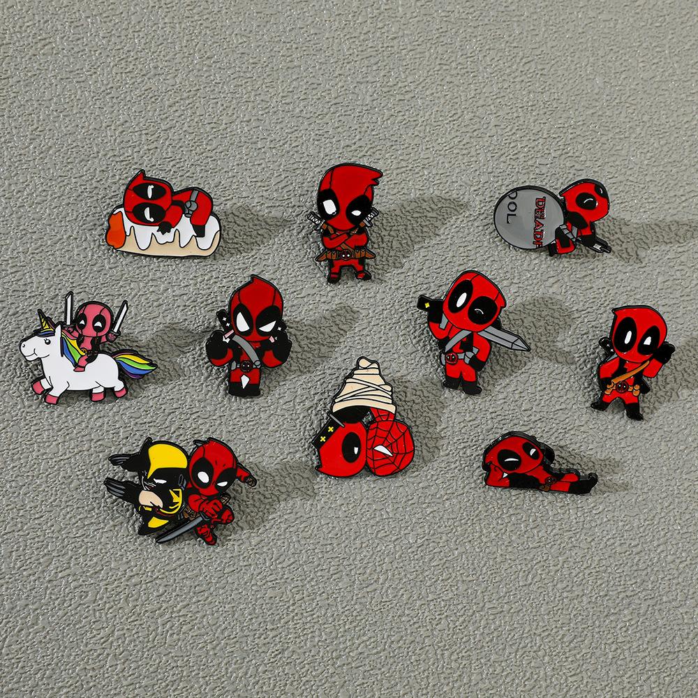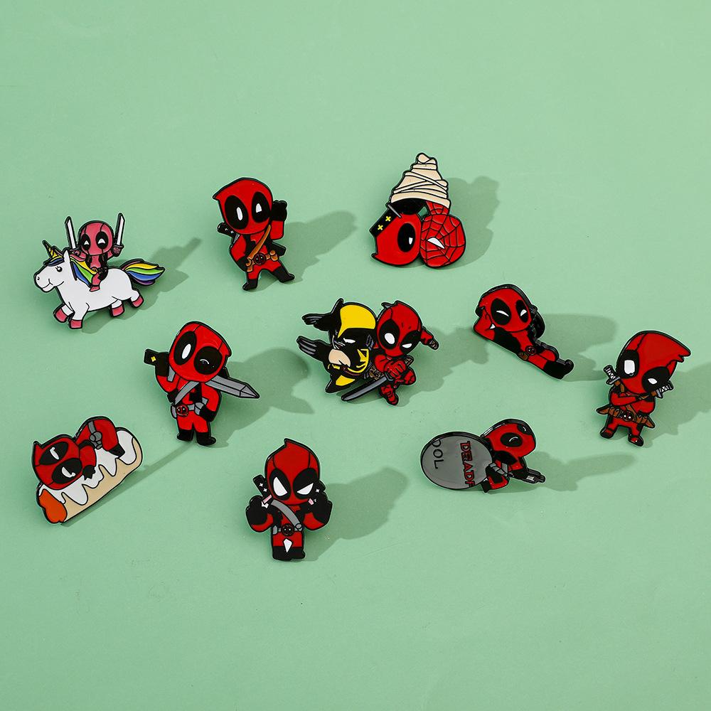 Broche de metal con forma de gota de aceite de personaje de película decorativa de Deadpool con personalidad linda de animación de dibujos animados, insignia de aleación, accesorios