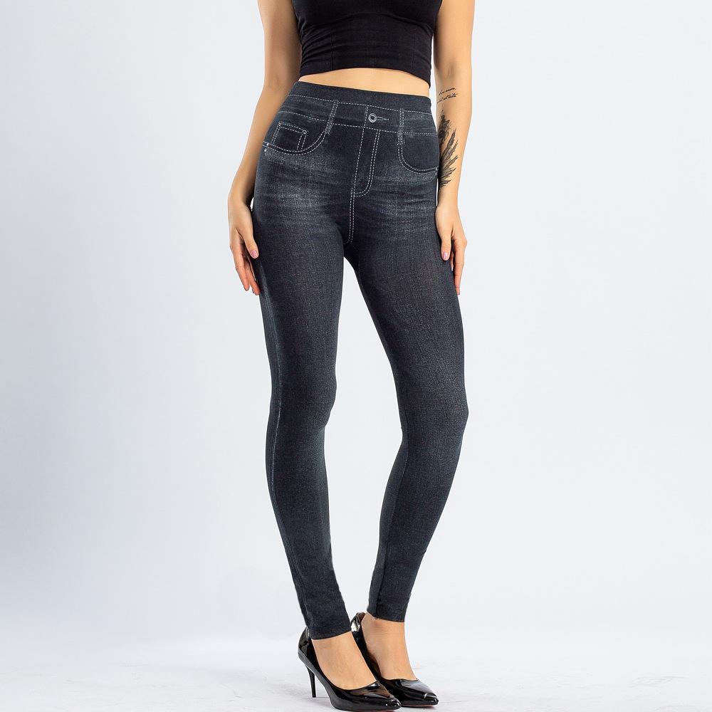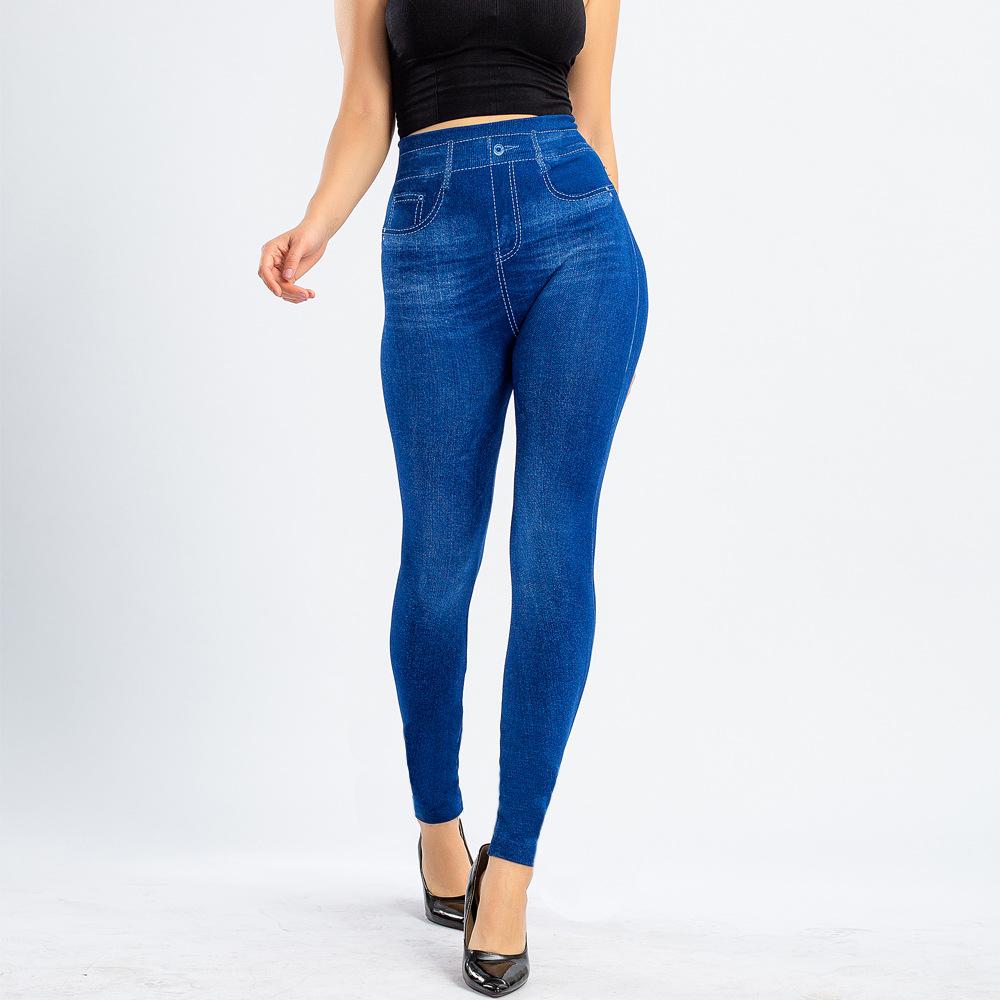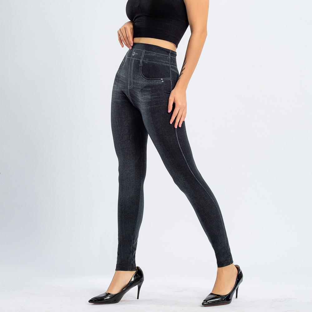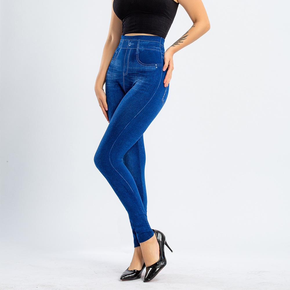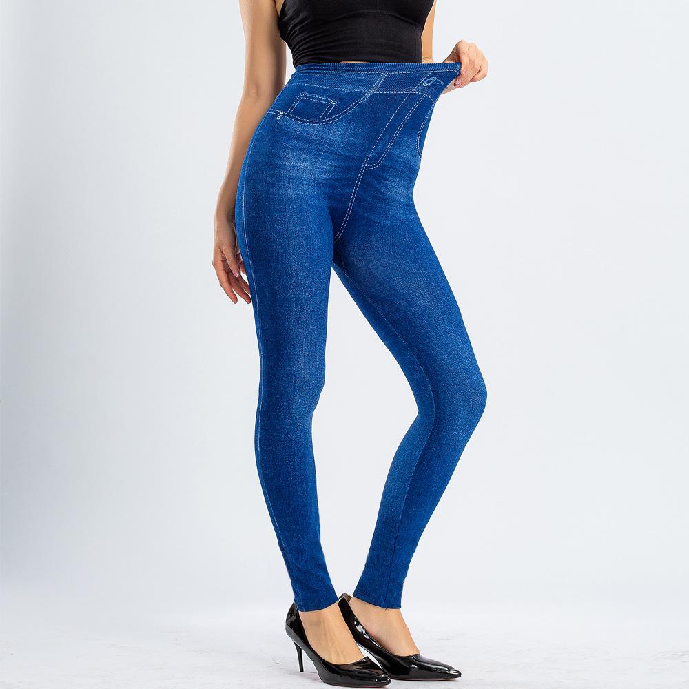 Leggings de mezclilla de imitación sin costuras de AliExpress, súper elásticos, de una pieza, con explosiones de deseos europeos y americanos.