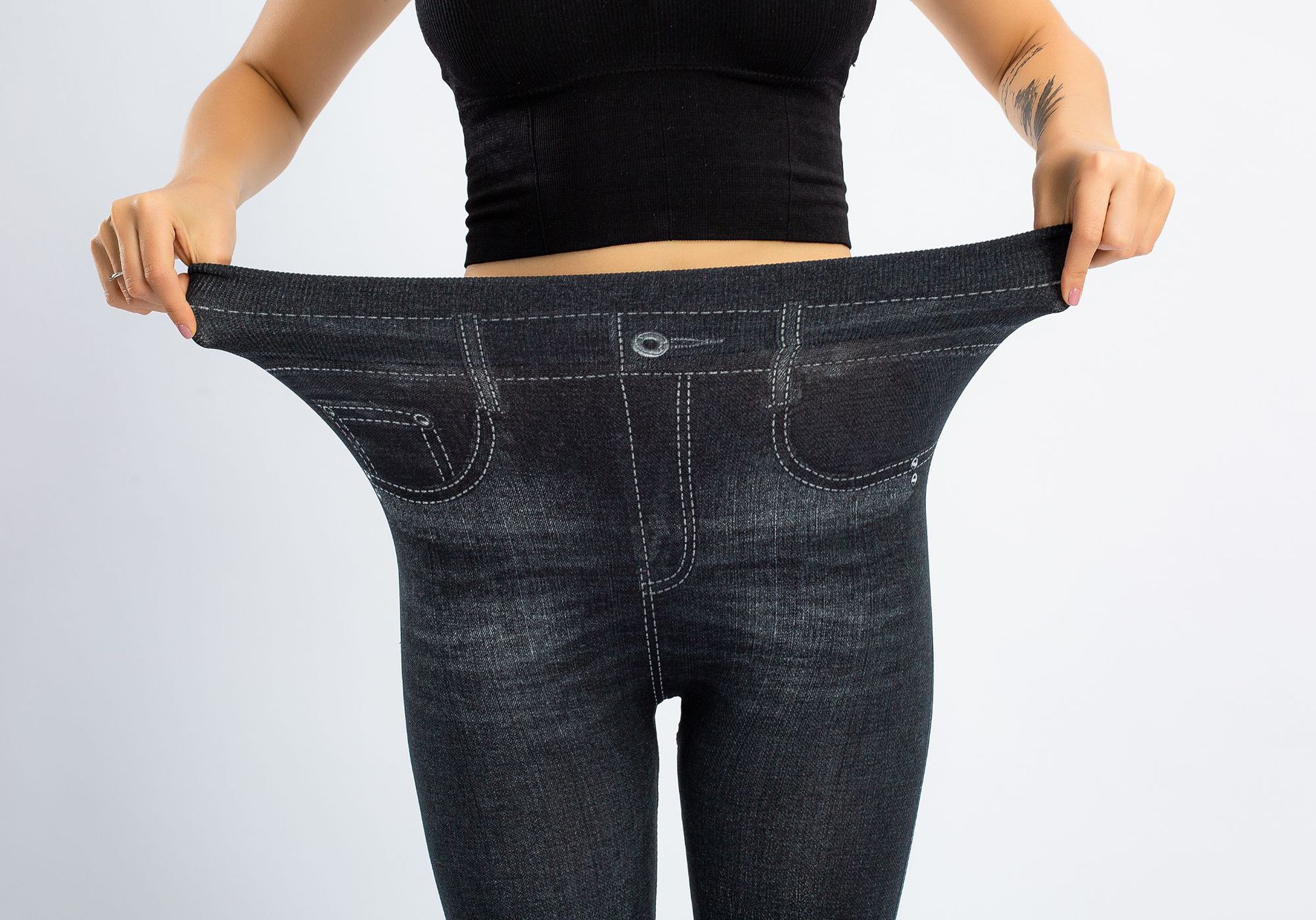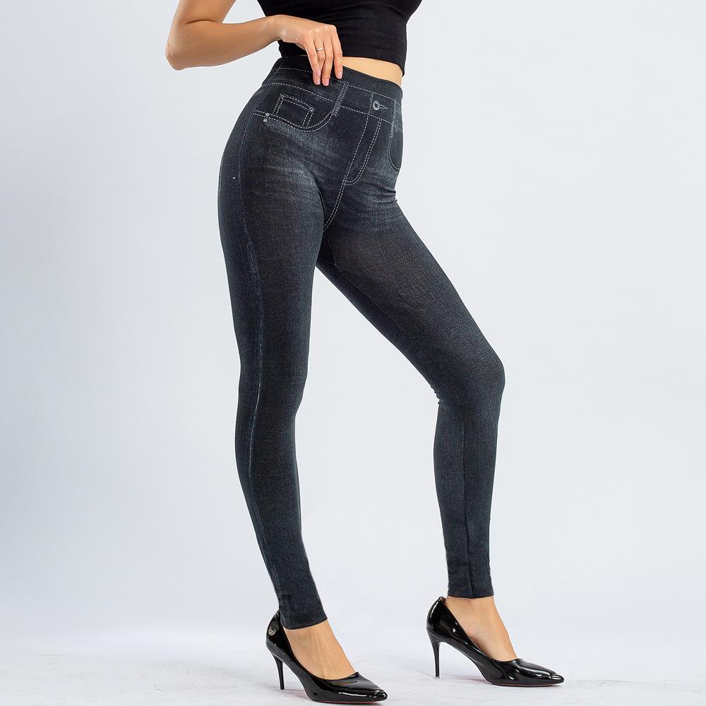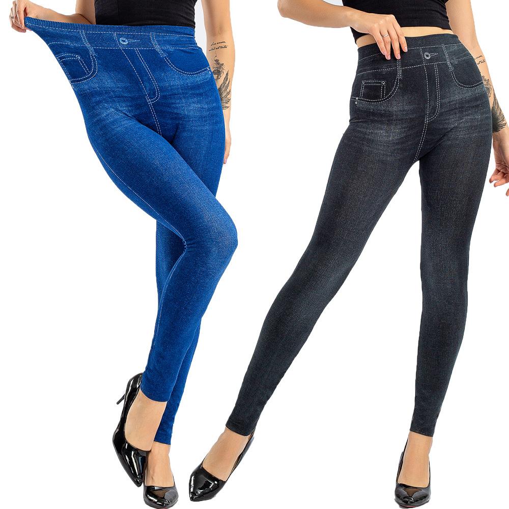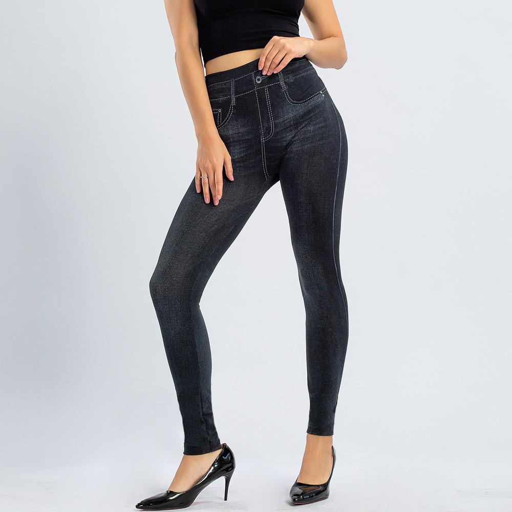 Leggings de mezclilla de imitación sin costuras de AliExpress, súper elásticos, de una pieza, con explosiones de deseos europeos y americanos.