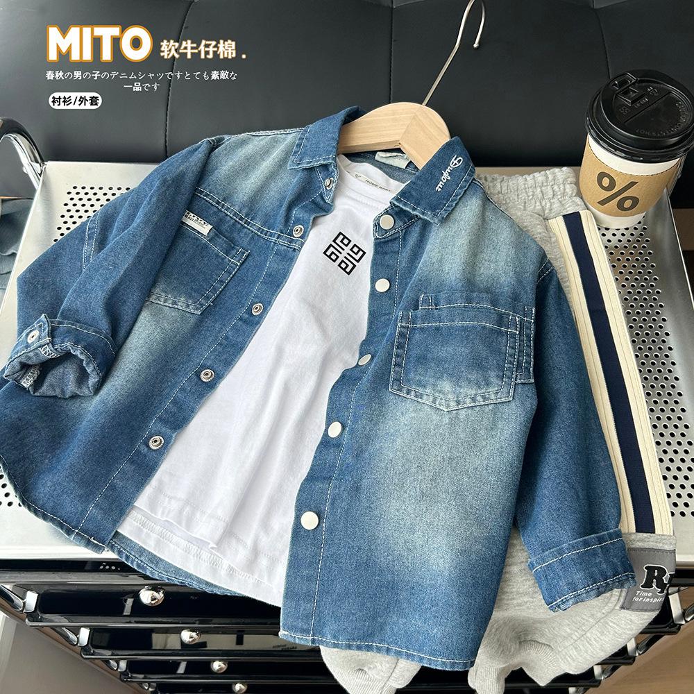 Ropa infantil para niños 2024 primavera y otoño nueva ropa infantil para bebé abrigo de mezclilla lavado para niños grandes abrigo estilo europeo y americano