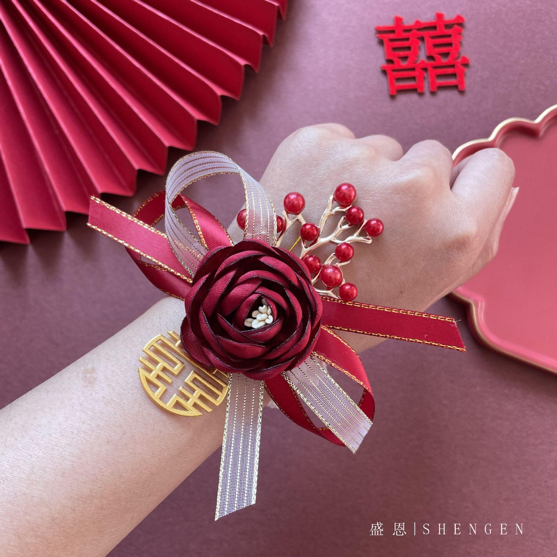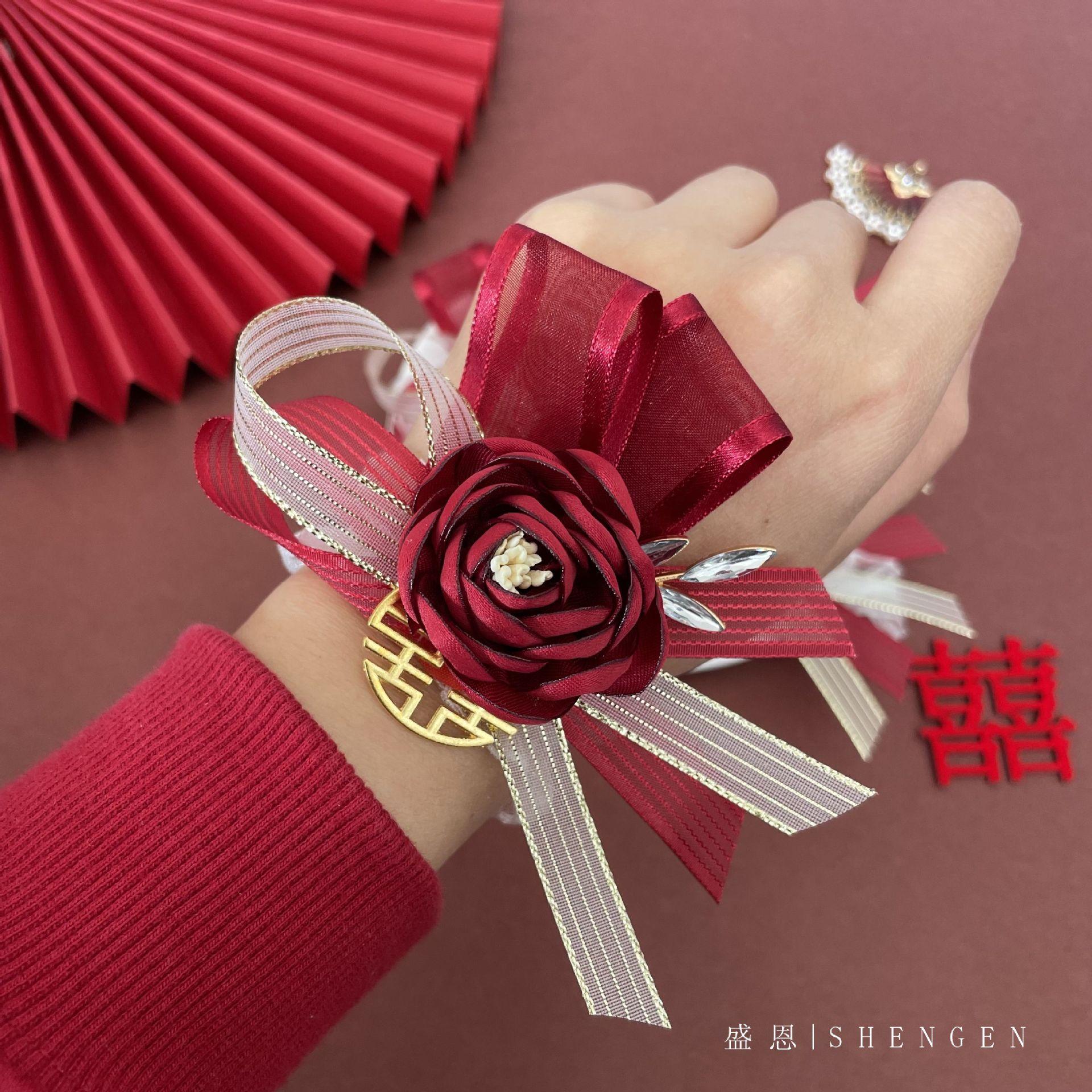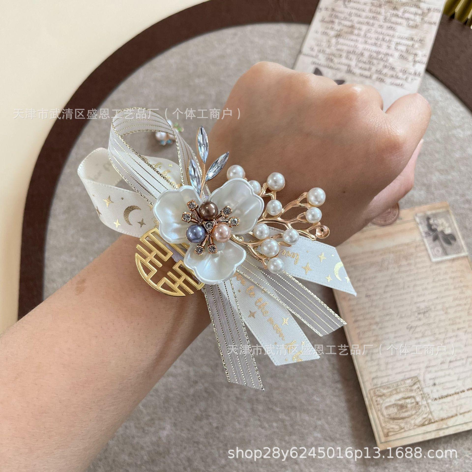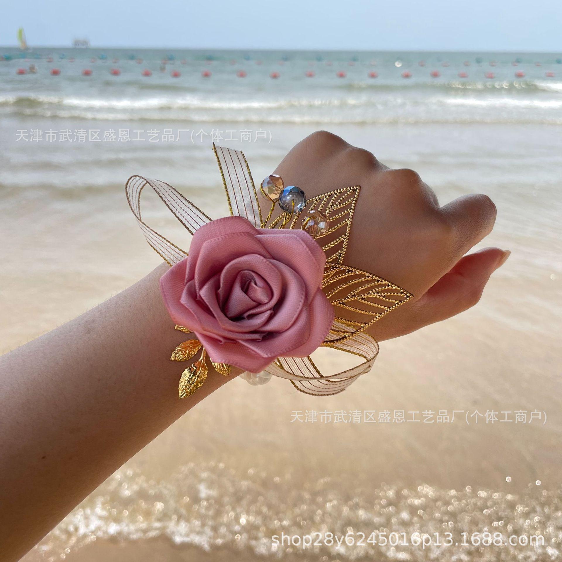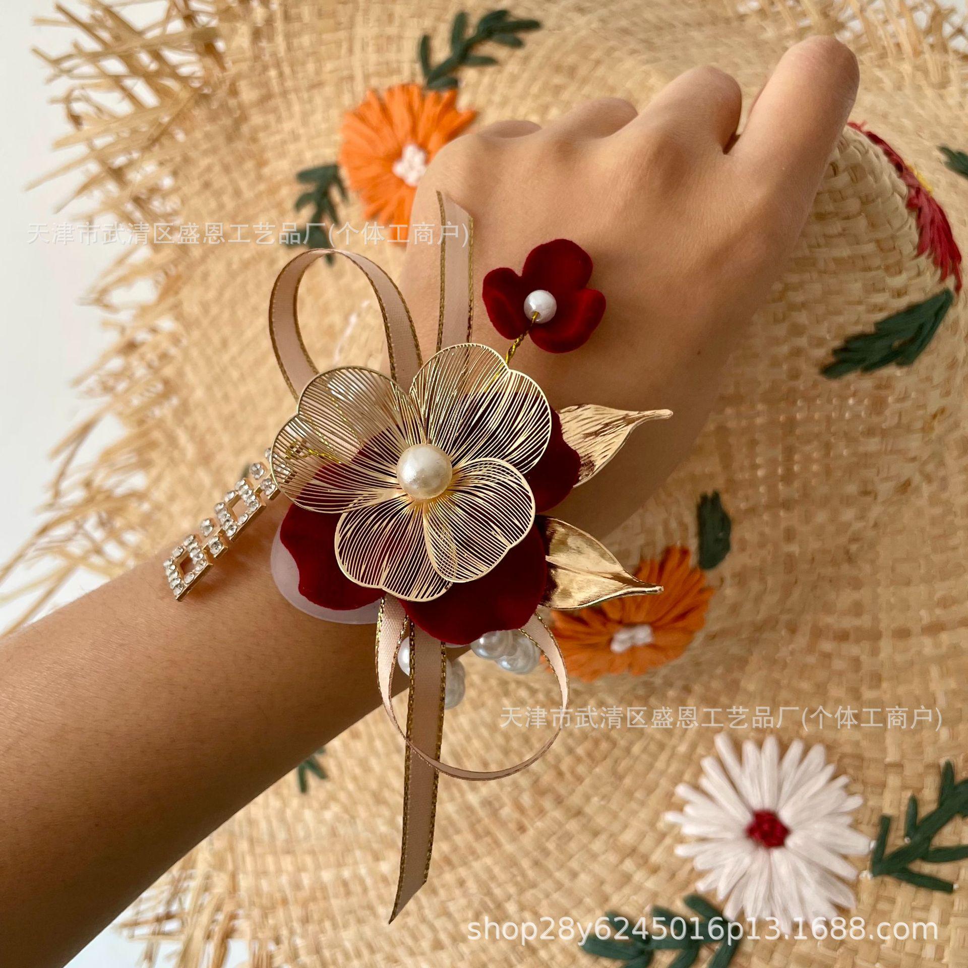 Nueva flor de muñeca para dama de honor, flor de mano para novia, grupo de hermanas, pulsera de gran sentido, ramillete de boda, flor de simulación de súper hada
