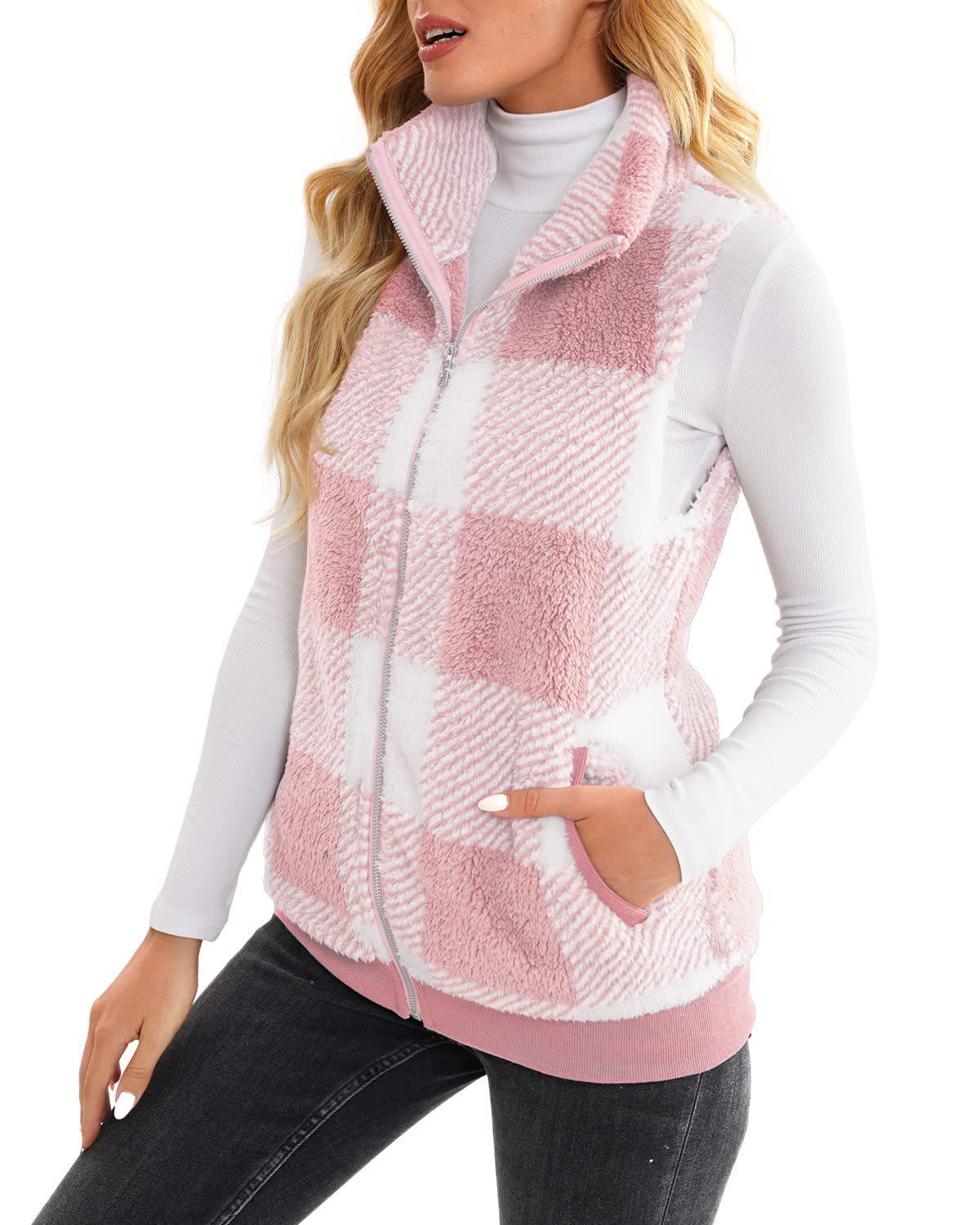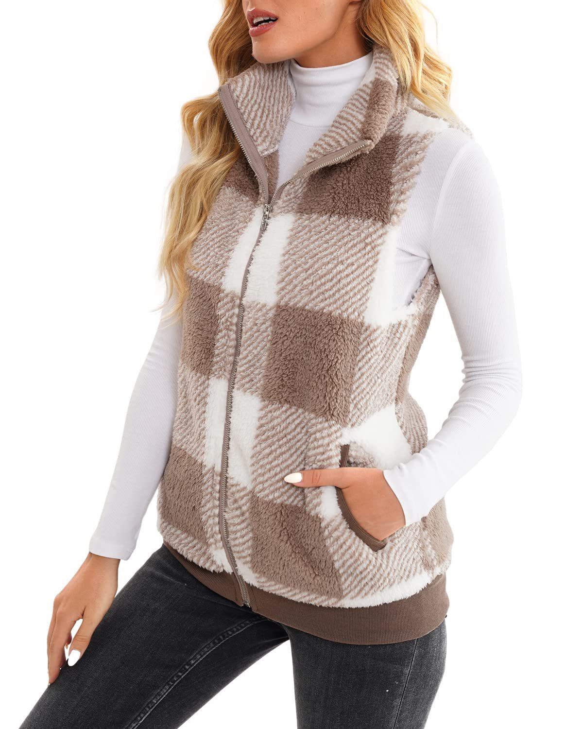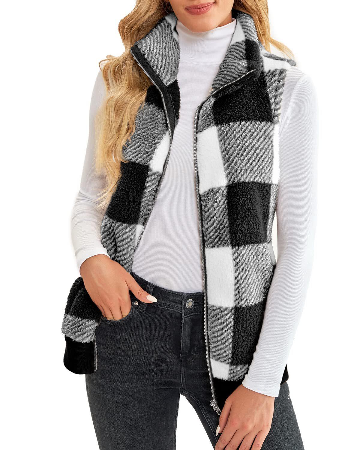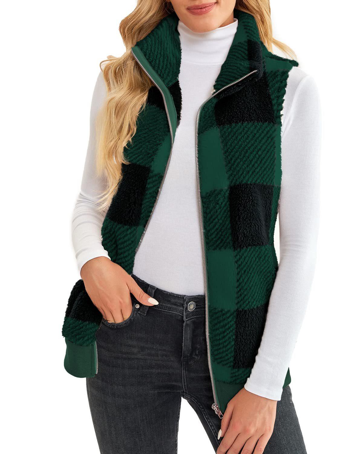Chaleco de mujer europeo y americano 2024 nuevo Amazon a cuadros cómodo terciopelo cárdigan chaleco cuello alto sin mangas abrigo de mujer