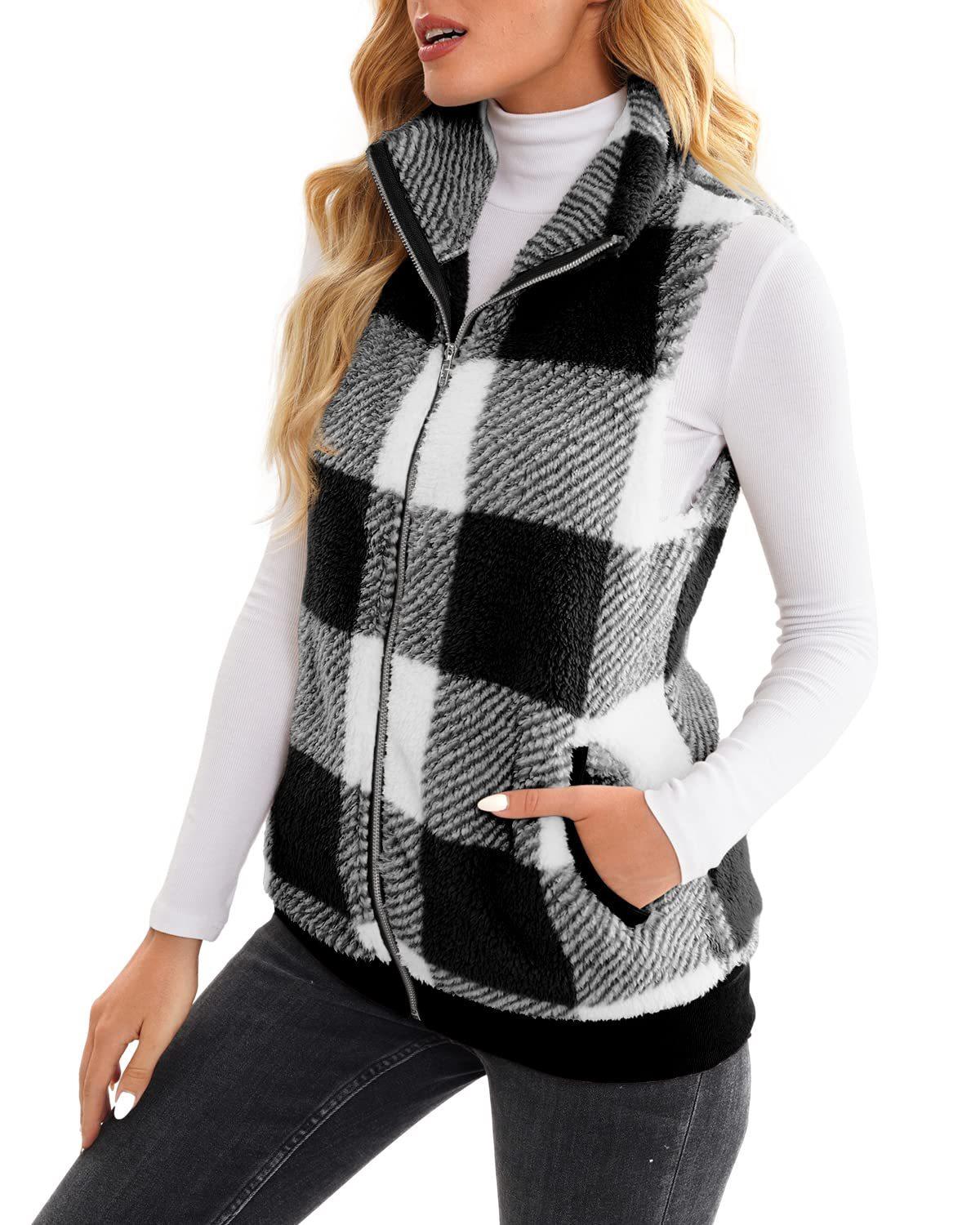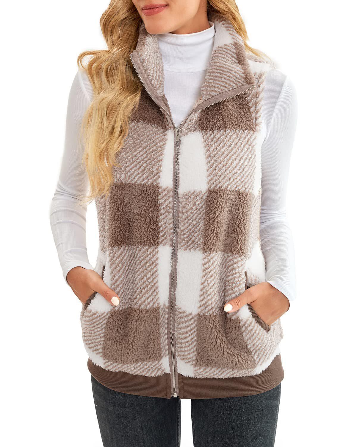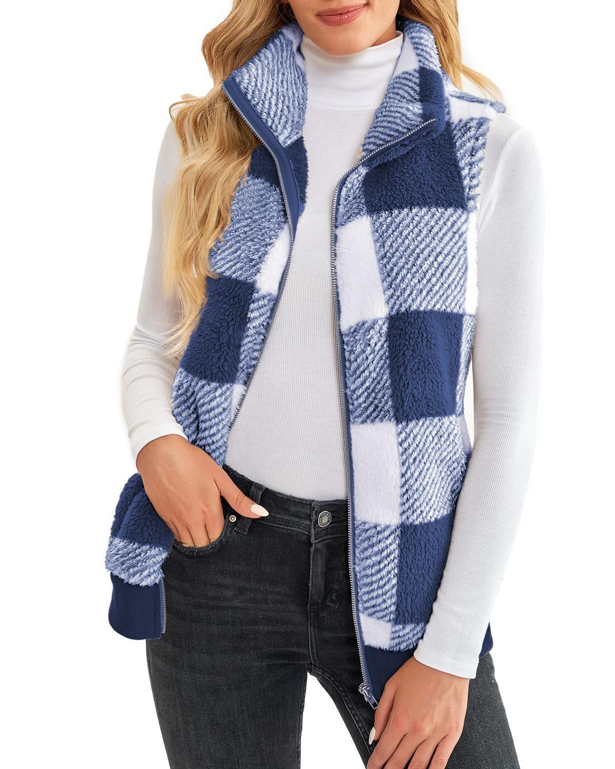 Chaleco de mujer europeo y americano 2024 nuevo Amazon a cuadros cómodo terciopelo cárdigan chaleco cuello alto sin mangas abrigo de mujer