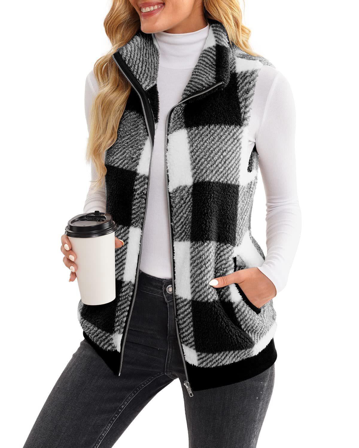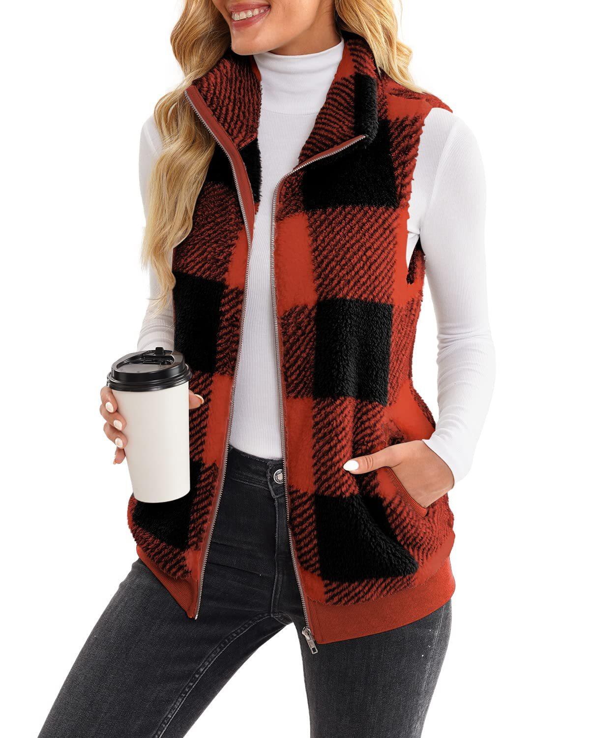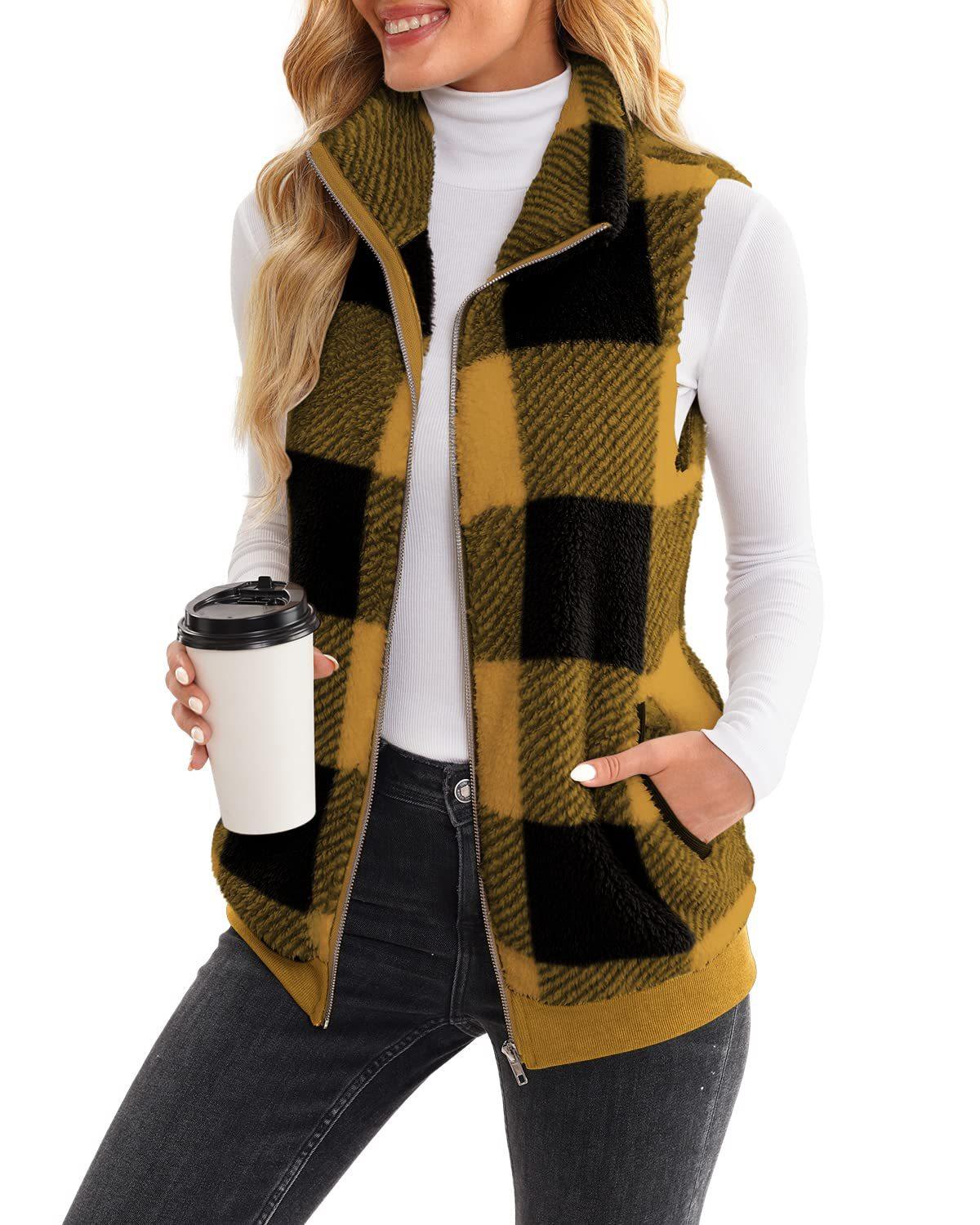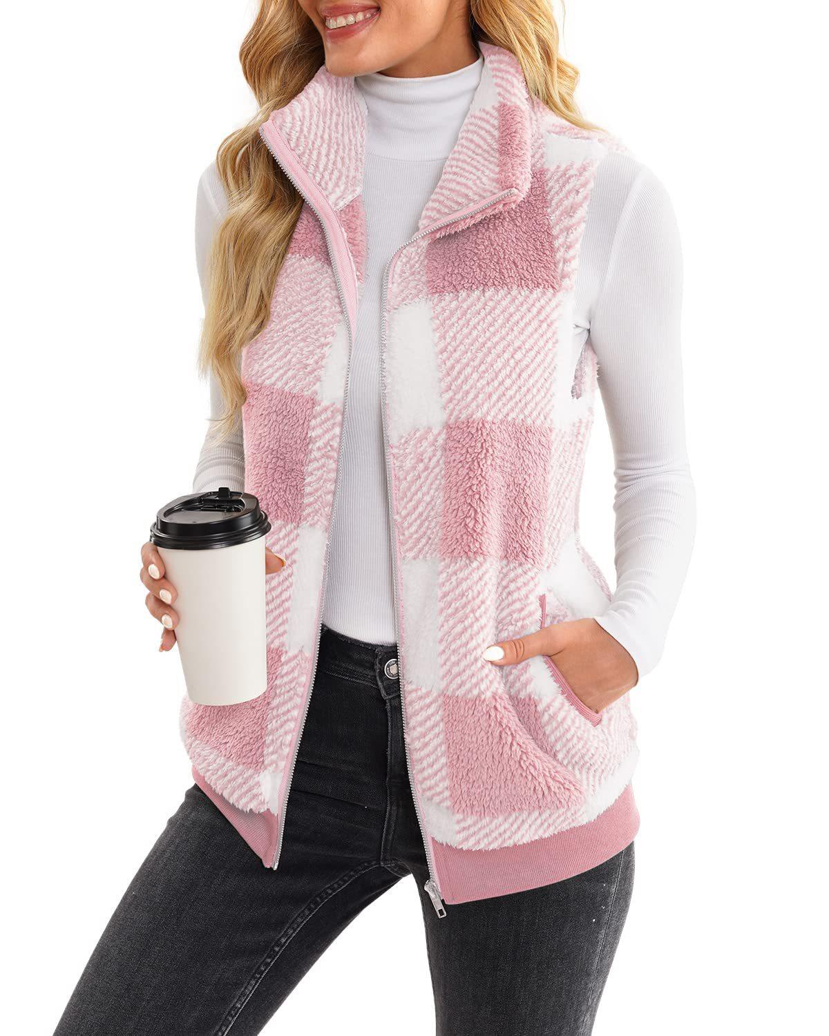 Chaleco de mujer europeo y americano 2024 nuevo Amazon a cuadros cómodo terciopelo cárdigan chaleco cuello alto sin mangas abrigo de mujer