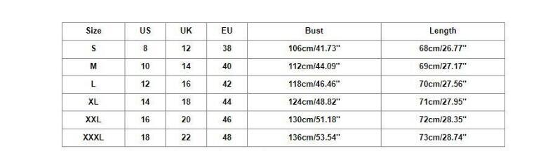S, M, L, XL, XXL, 3XL, 4XL, 5XL