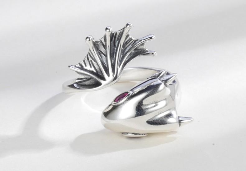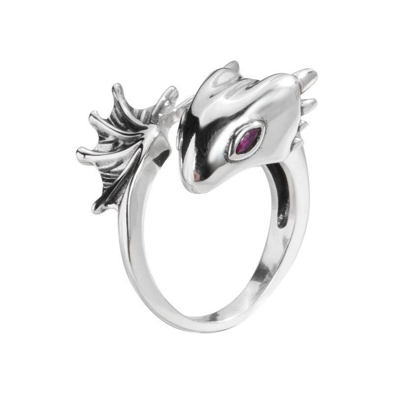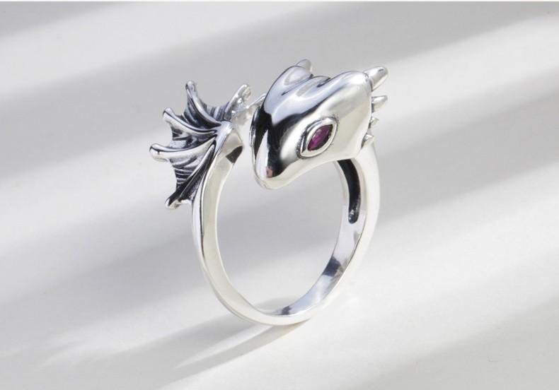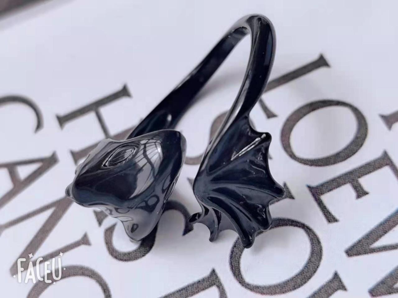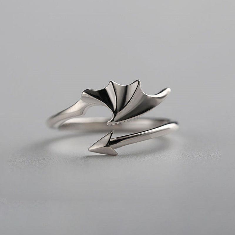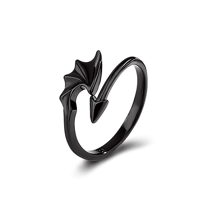 Joyería de Tendencia Oscura Anillo Ángel Demonio Anillo Abierto Pterosaurio Gótico Anillo Negro para Pareja