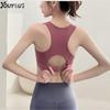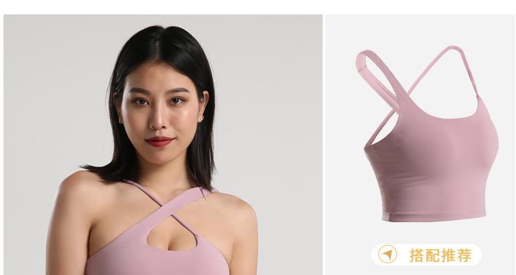 Chaleco deportivo cruzado para mujer, ajustado, sexy, con nudo deportivo, para yoga, sujetador corto con cuello colgante, ropa interior