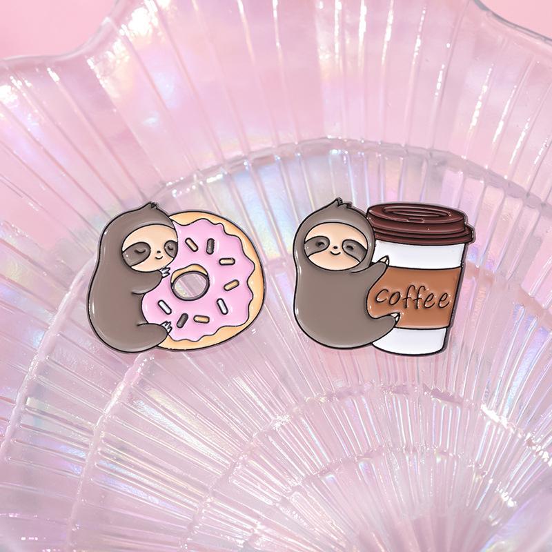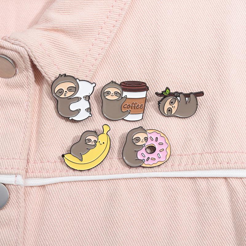 Broche con forma de dona de plátano y perezoso de dibujos animados, muy popular entre los transfronterizos, insignia personalizada que combina con todo.