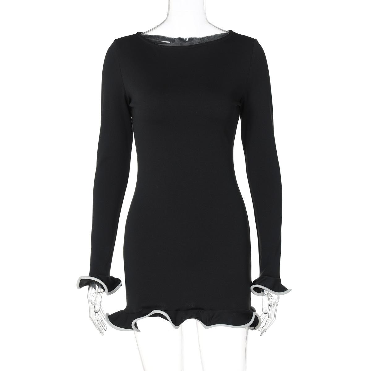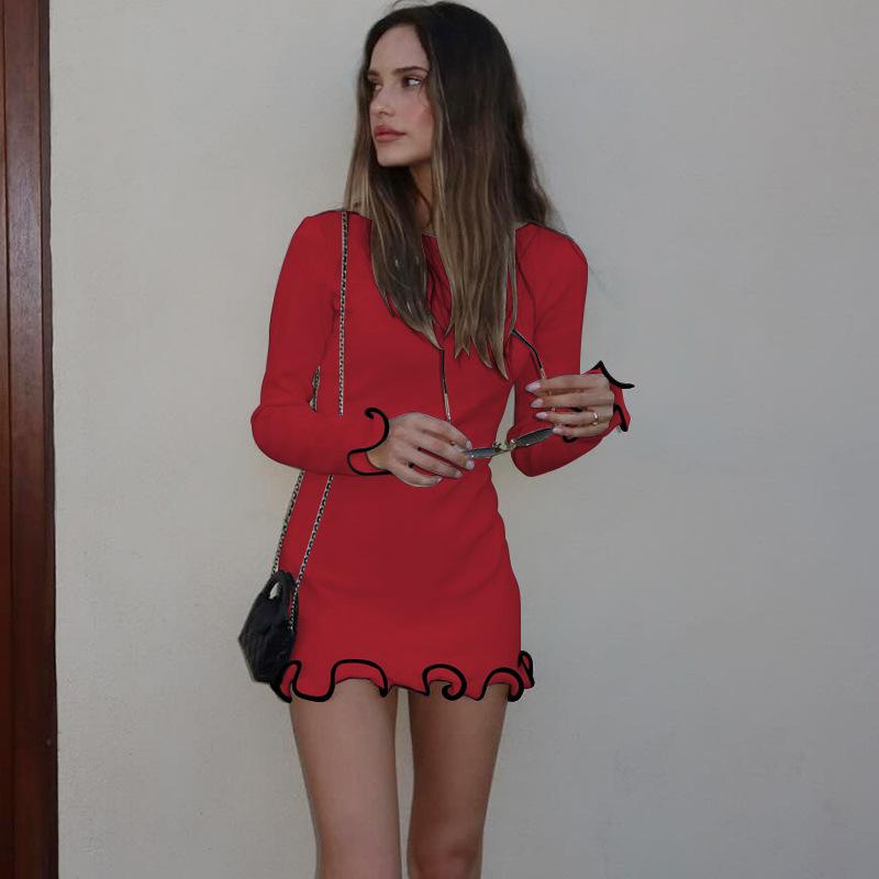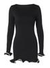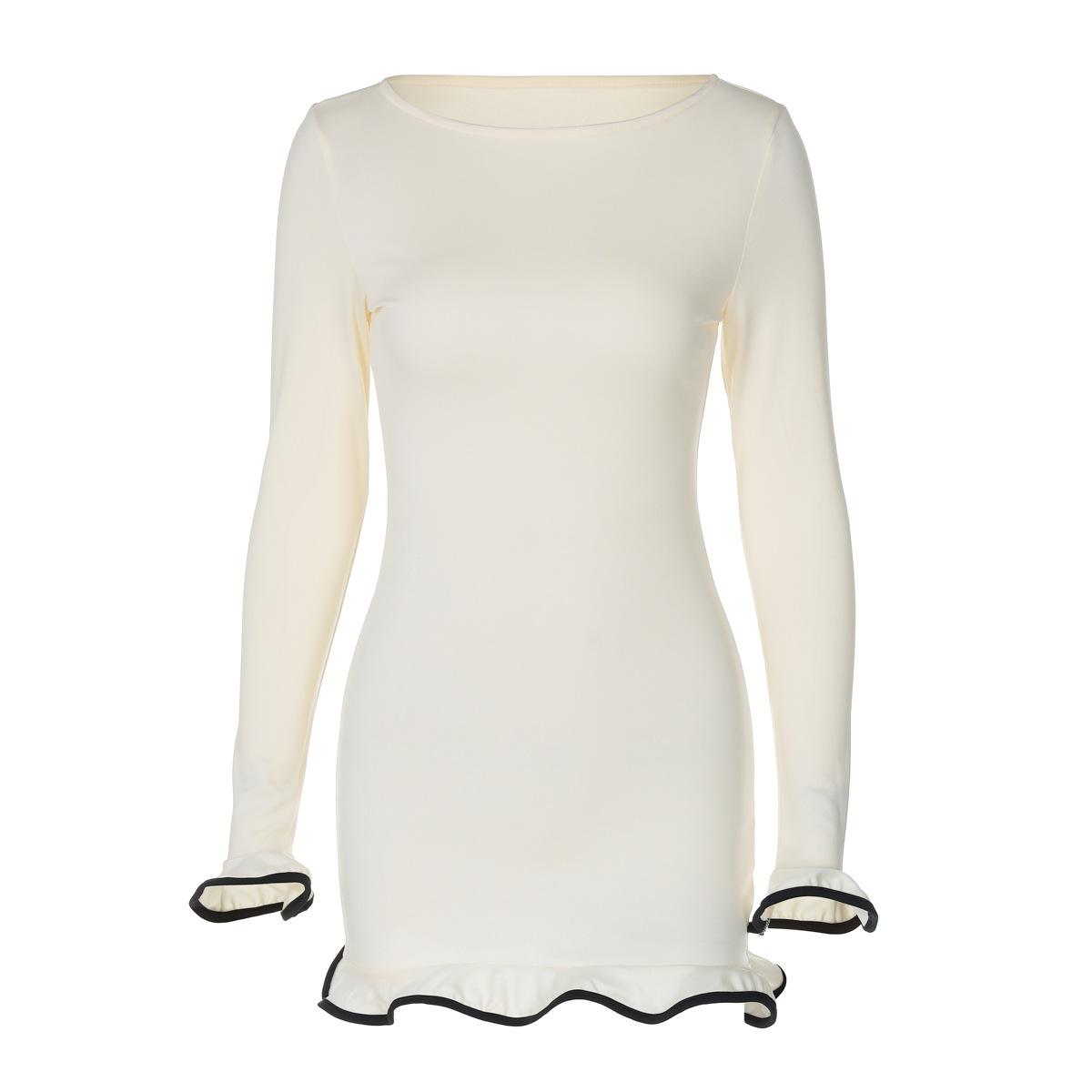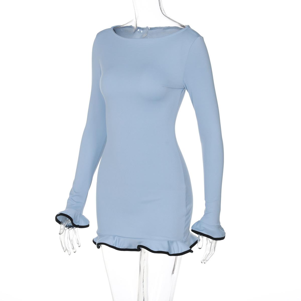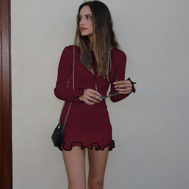 Falda Corta Ajustada Sexy Vestido con Volantes Borde Falda Tejida Manga Larga Color Sólido Ropa de Mujer Europea y Americana Comercio Exterior Falda de Verano