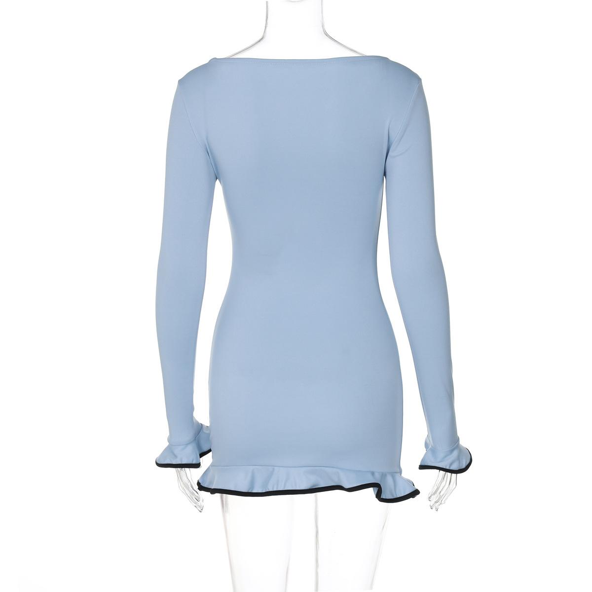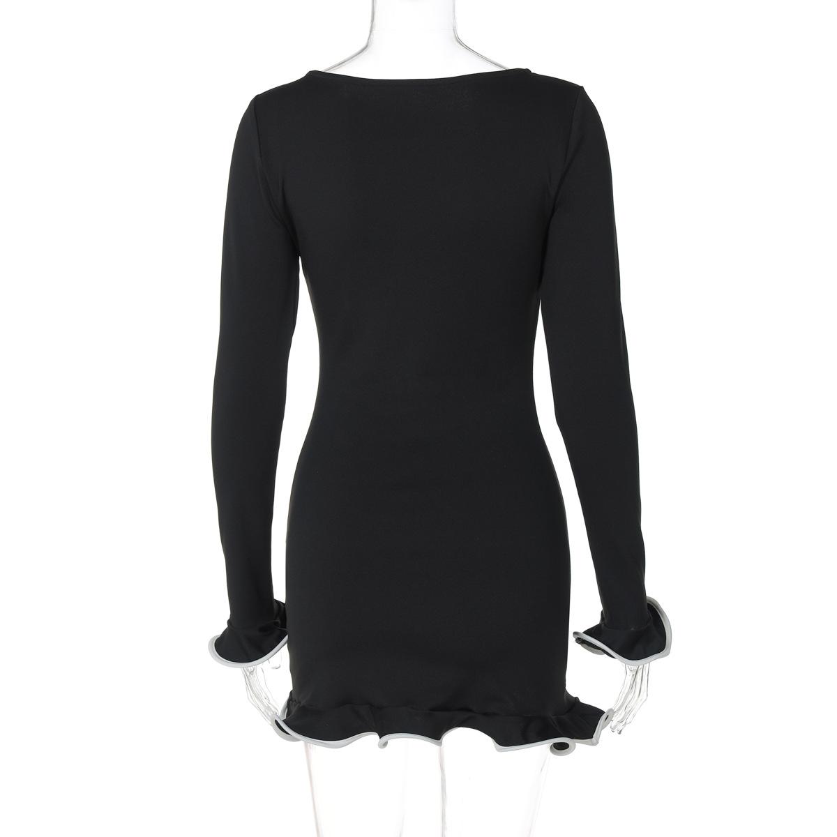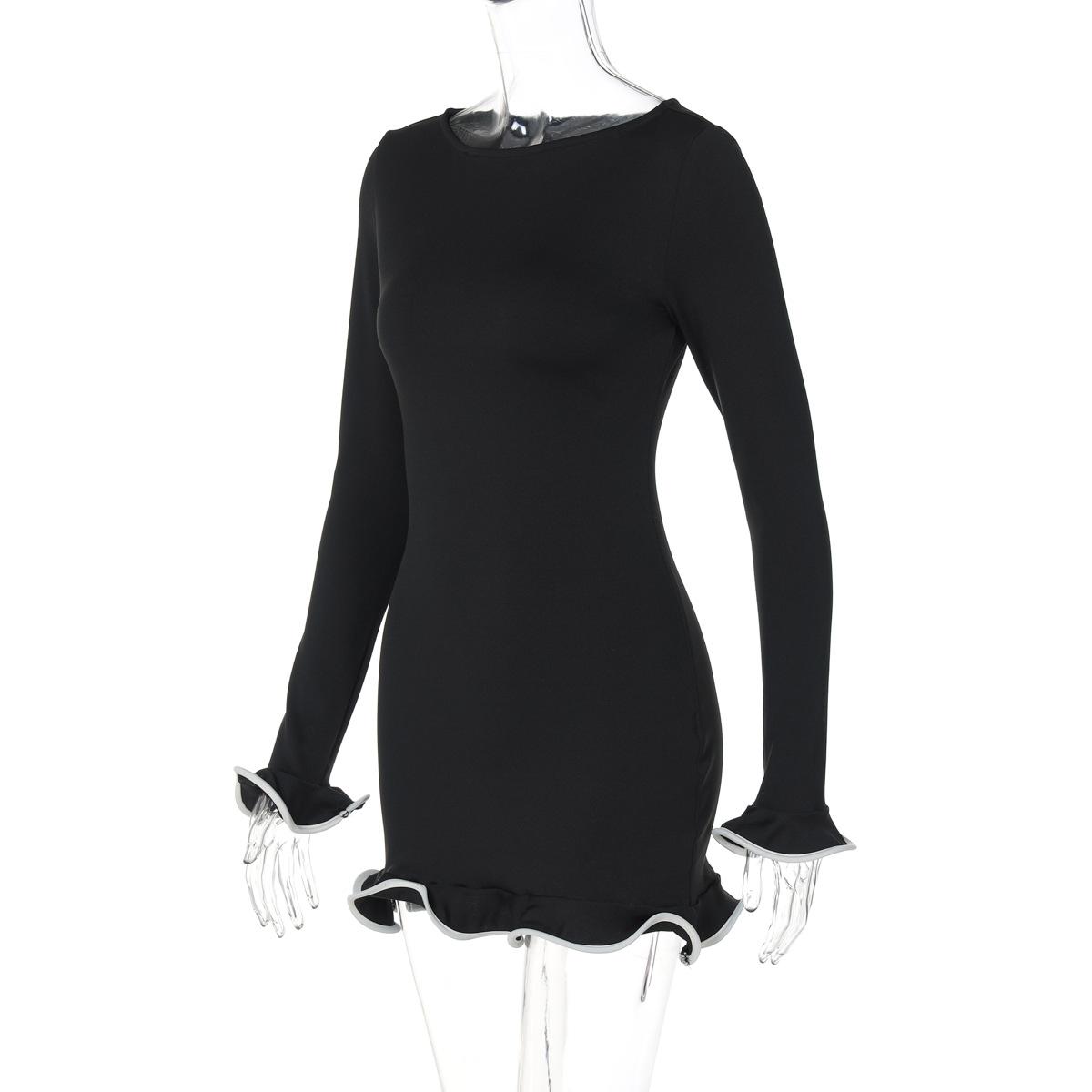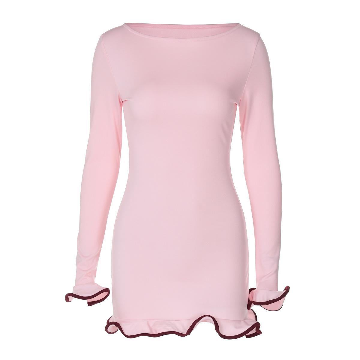 Falda Corta Ajustada Sexy Vestido con Volantes Borde Falda Tejida Manga Larga Color Sólido Ropa de Mujer Europea y Americana Comercio Exterior Falda de Verano