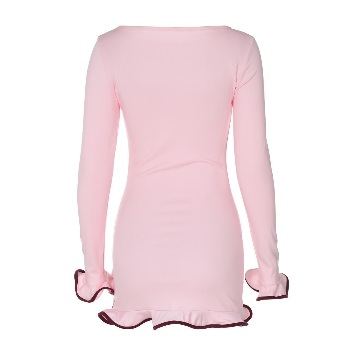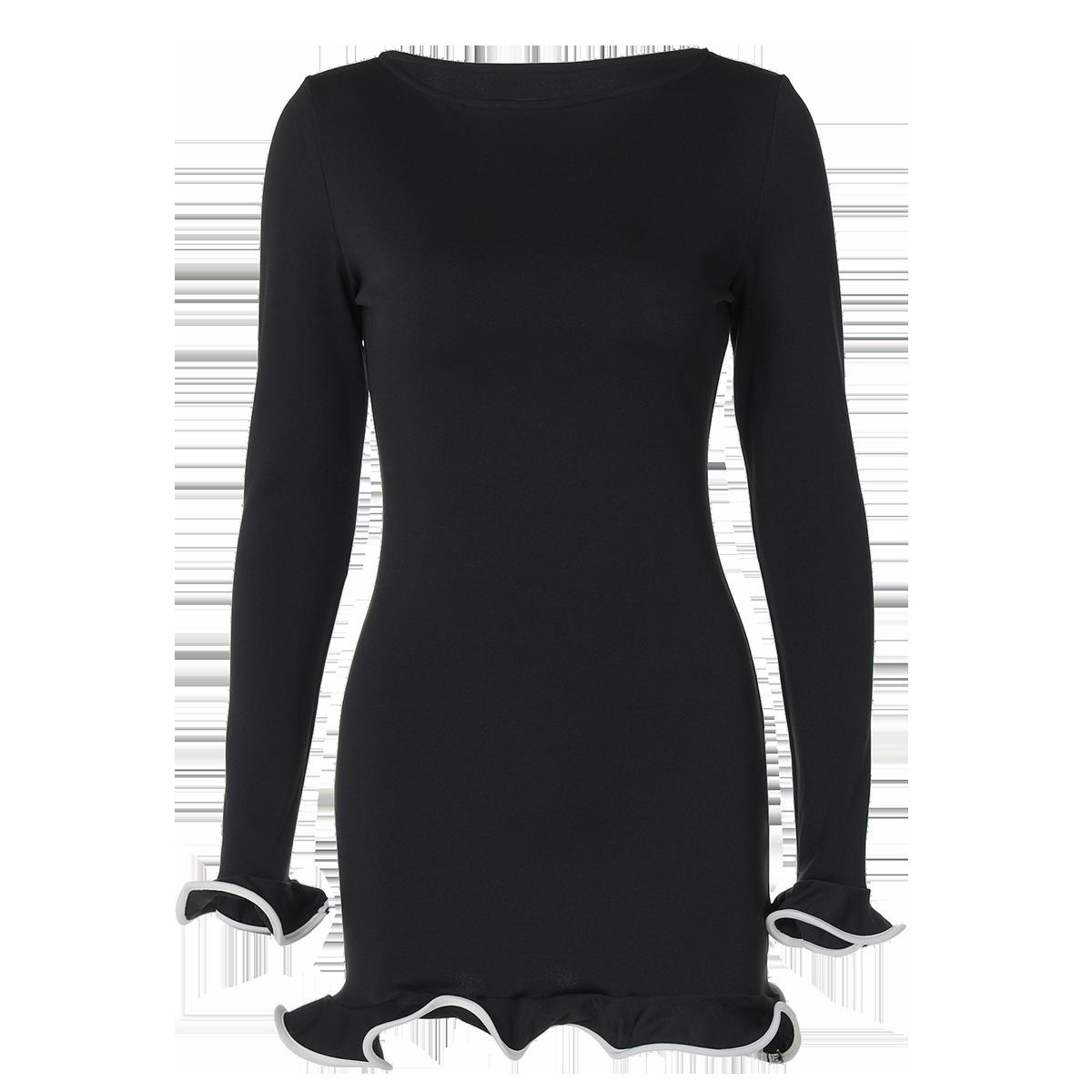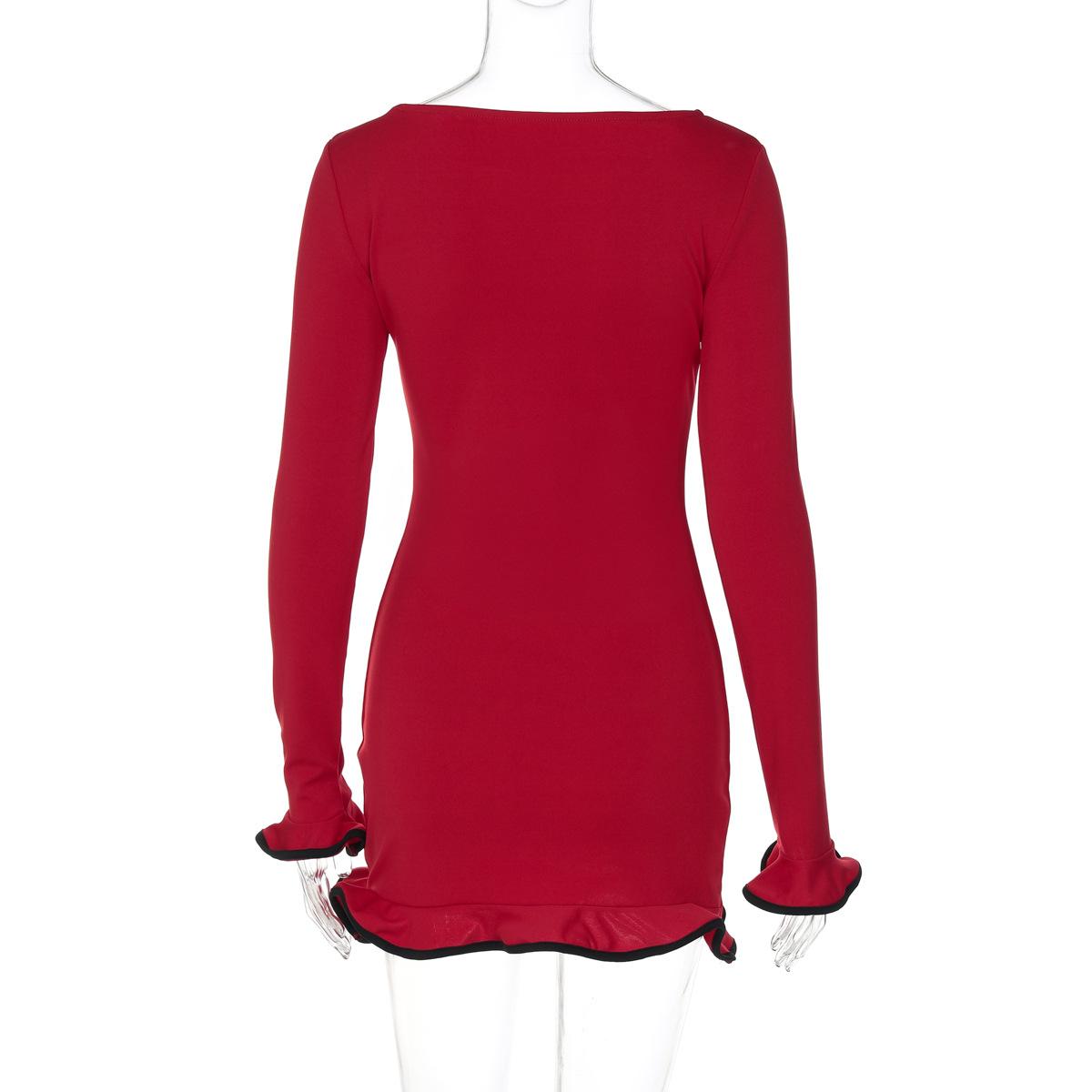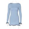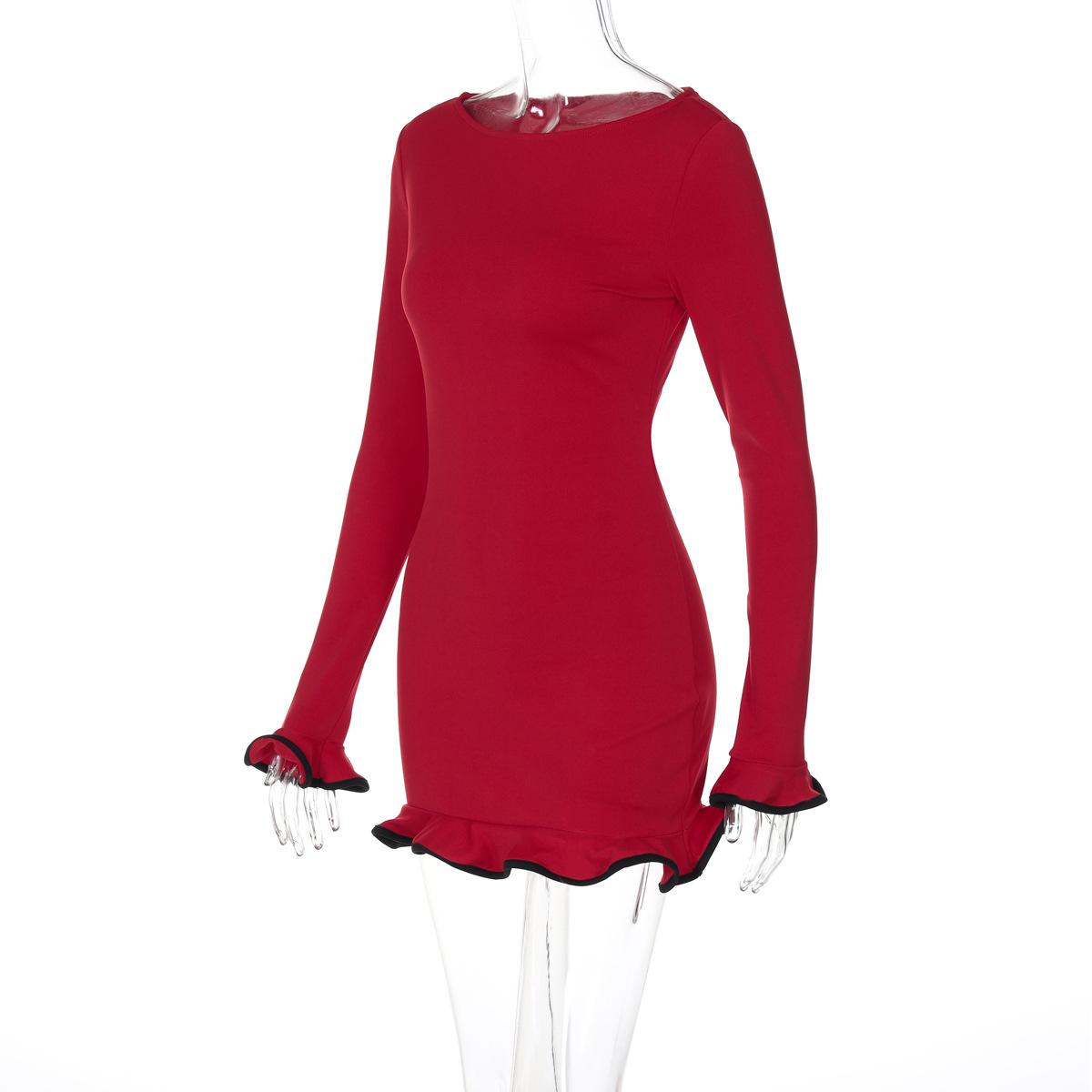 Falda Corta Ajustada Sexy Vestido con Volantes Borde Falda Tejida Manga Larga Color Sólido Ropa de Mujer Europea y Americana Comercio Exterior Falda de Verano