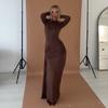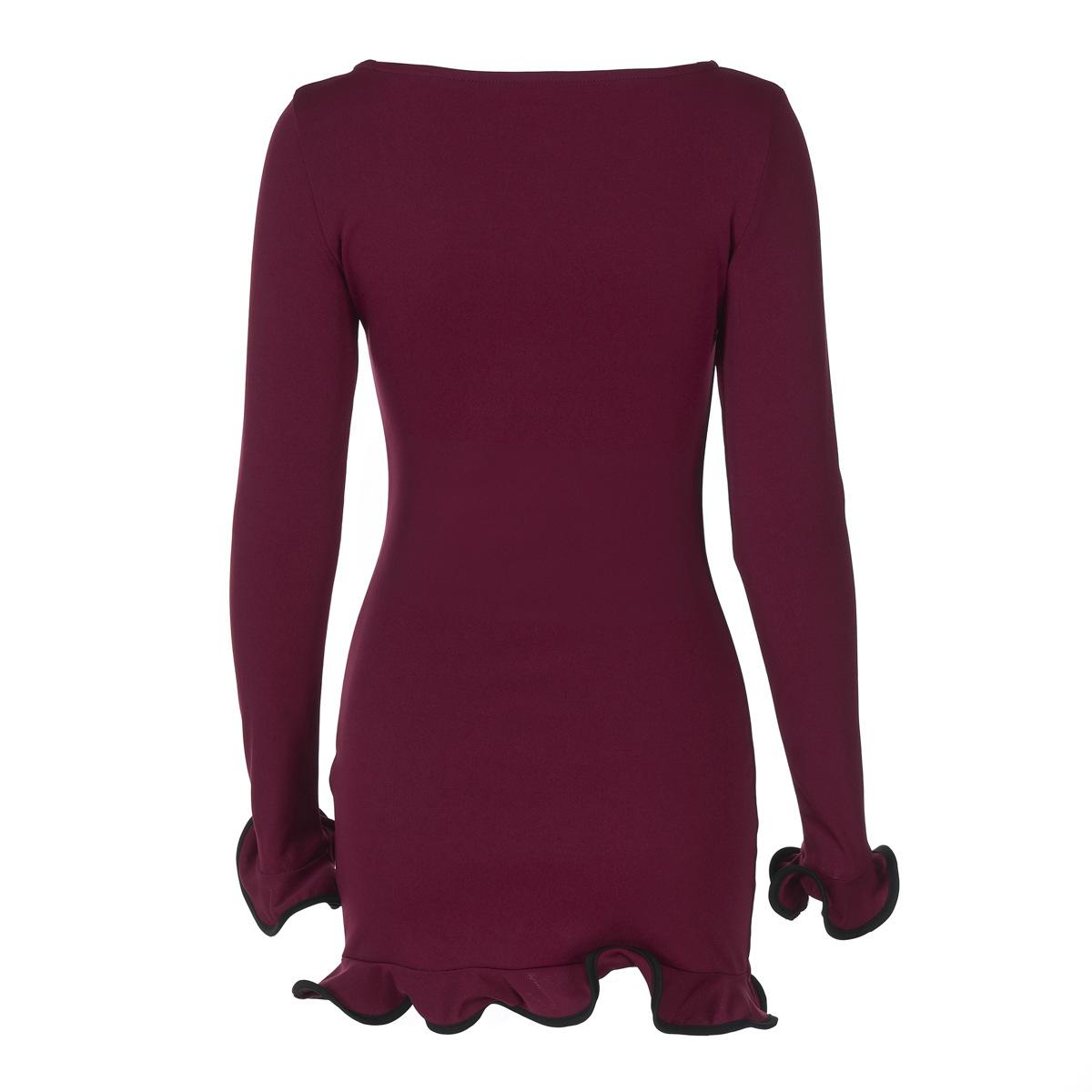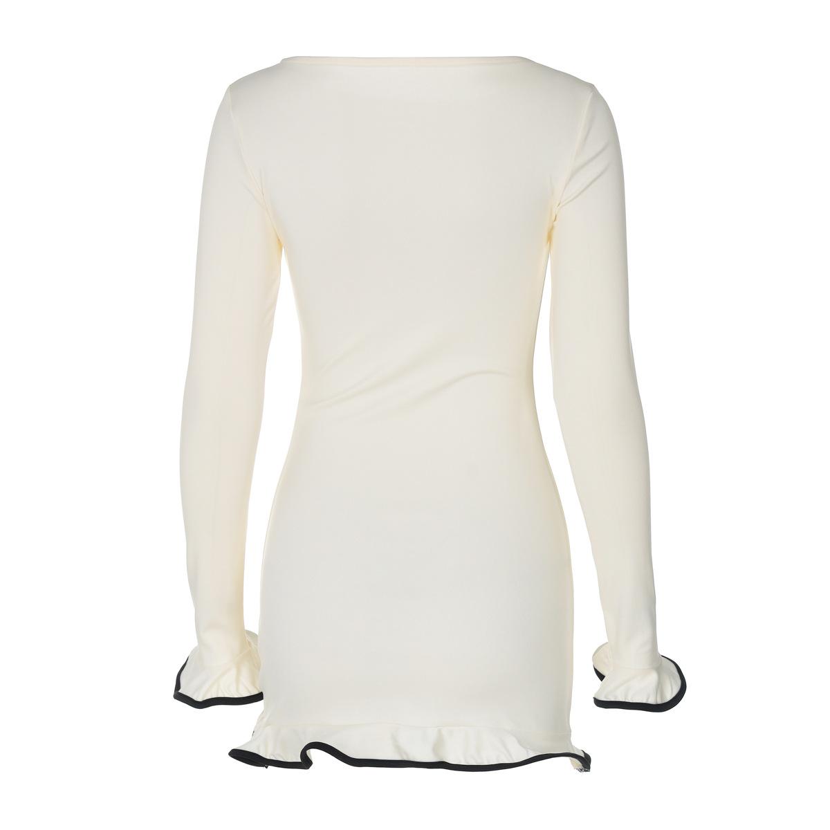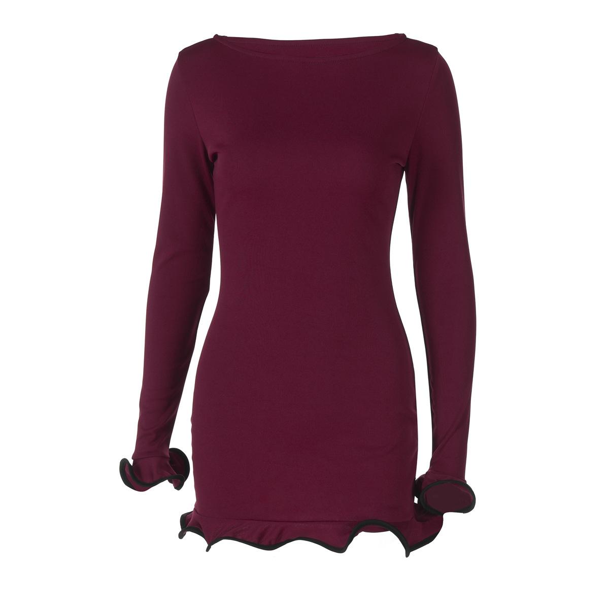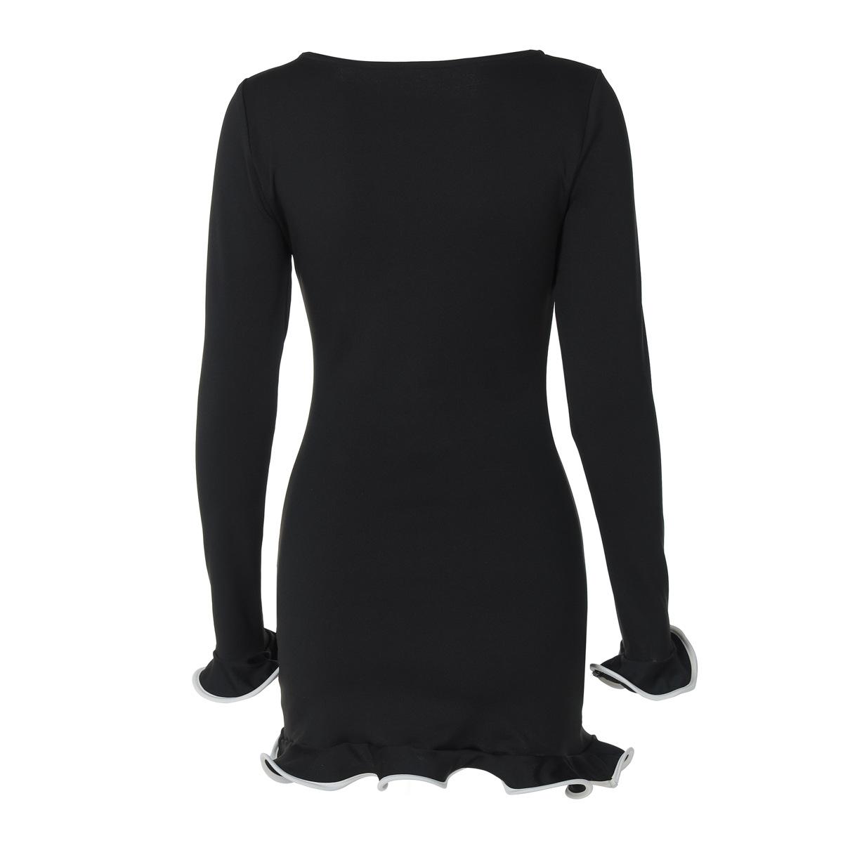 Falda Corta Ajustada Sexy Vestido con Volantes Borde Falda Tejida Manga Larga Color Sólido Ropa de Mujer Europea y Americana Comercio Exterior Falda de Verano