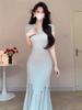 2025 Vestido de Temperamento Estilo Hepburn Francés Moda Color Sólido Espalda Descubierta con Lazado Cruzado Adelgazante Vestido Largo Ropa de Mujer Dropshipping