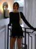 2025 Nuevo Mini Vestido Cruzado de Malla para Mujer con Cuello en V, Manga Larga Abullonada, Sexy sin Espalda, Vestido Holgado