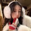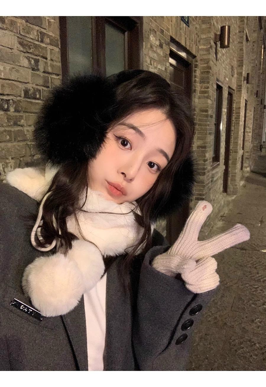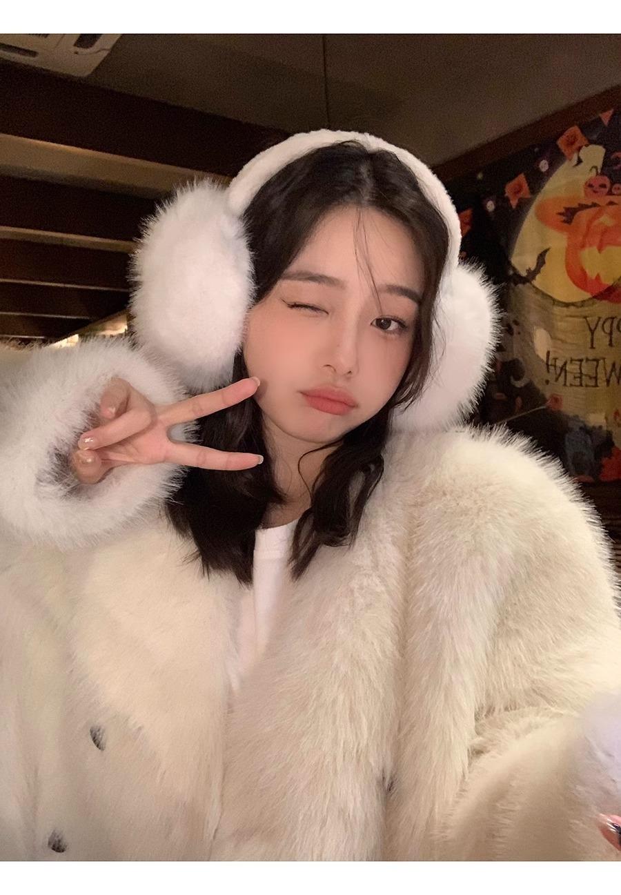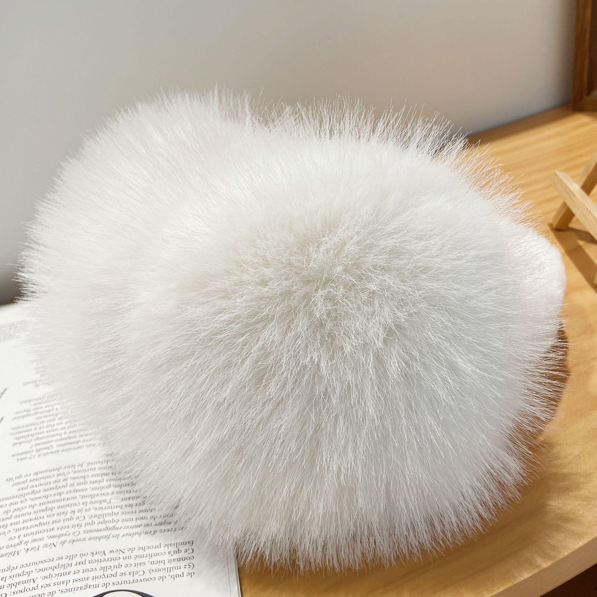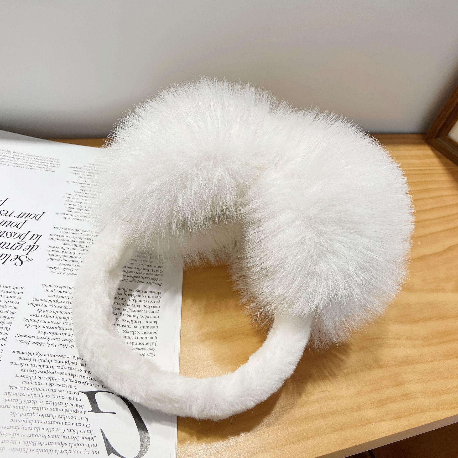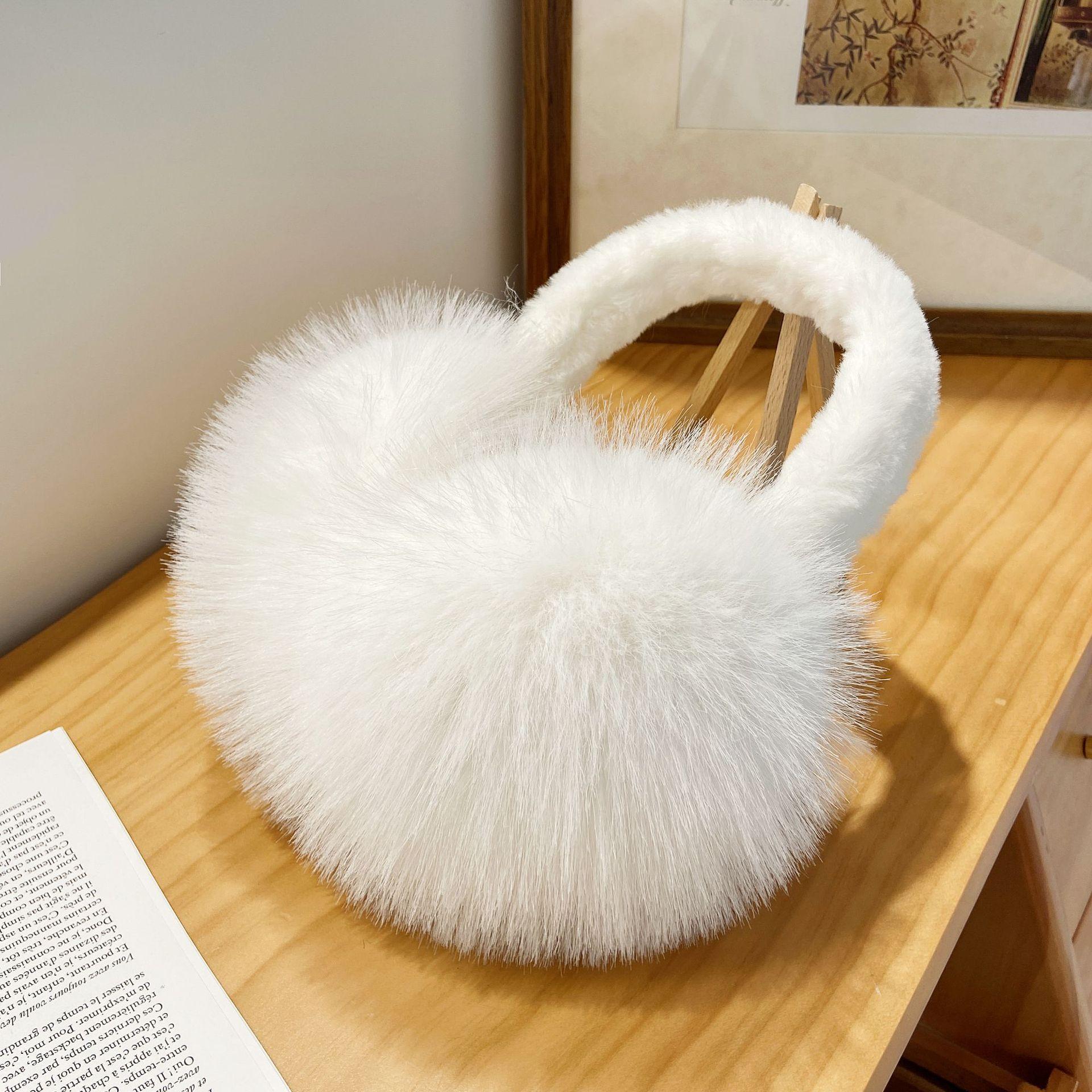 Orejeras de felpa grandes, lindas y suaves de piel de conejo blanco, cálidas y anticongelantes, para invierno, para mujer