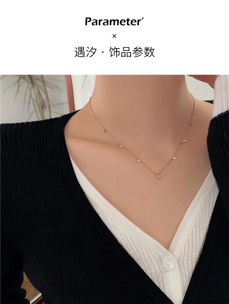 Primavera Pedrería Lentejuelas Pequeñas Gota de Agua Triángulo Acero Titanio Collar para Mujer Diseño Simple de Moda Lujo Ligero Cadena Clavícula Venta al por Mayor