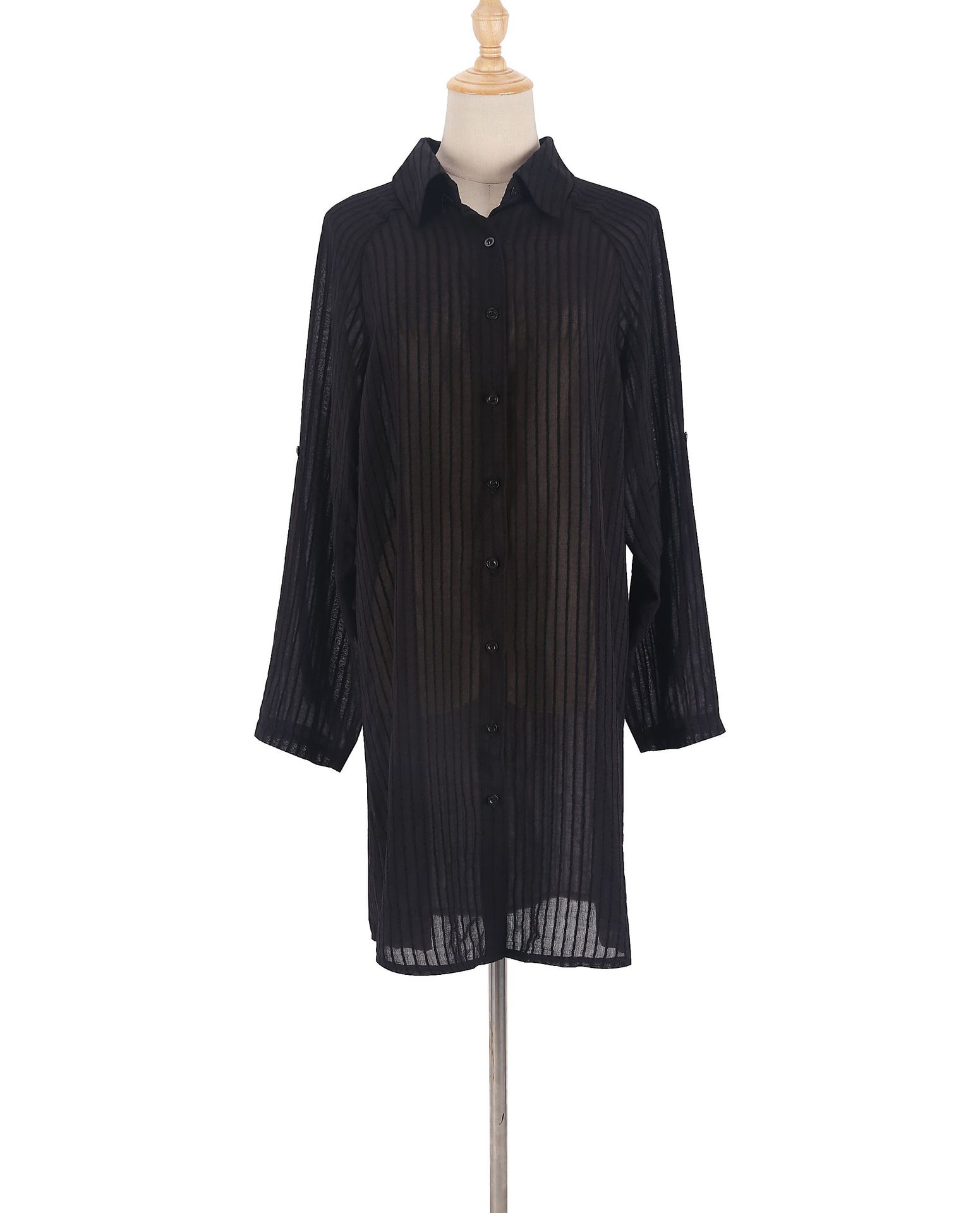 Nuevo cárdigan de playa de bikini de manga larga holgado estilo camisa negra estilo europeo y americano para vacaciones en la playa con protector solar | |