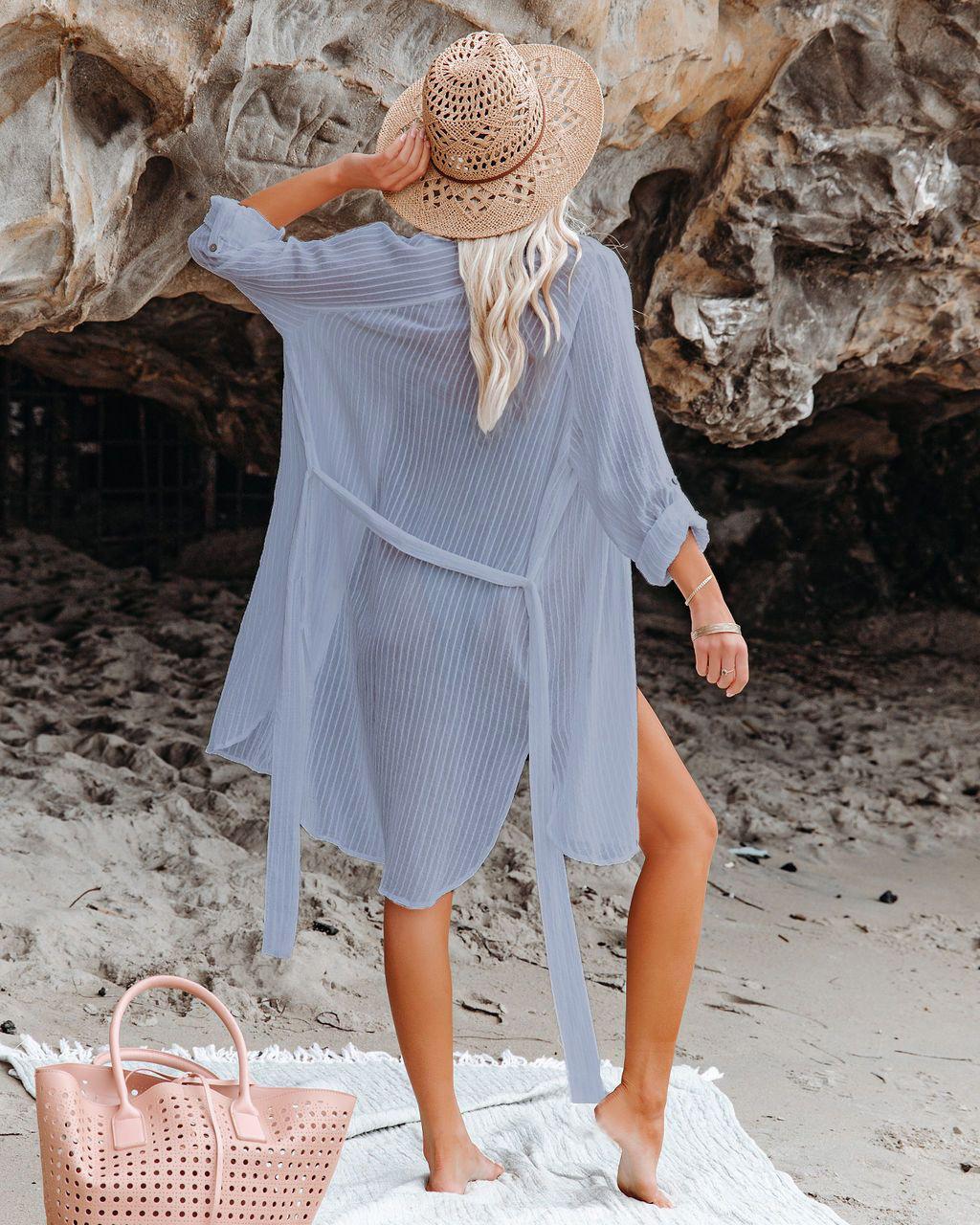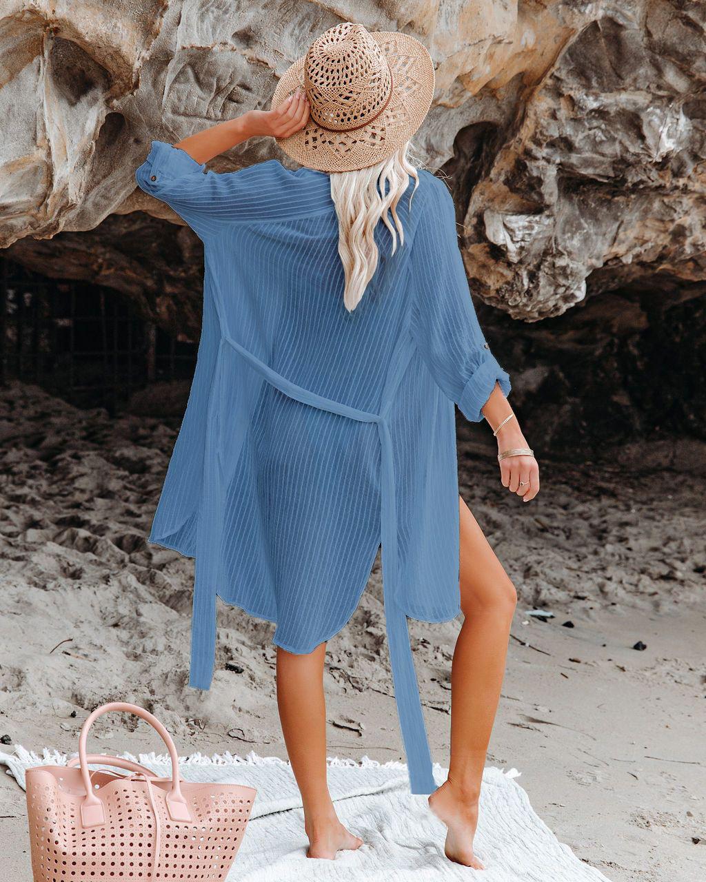 Falda larga de rayas azules europeas y americanas, bata de playa para vacaciones, traje de baño de bikini, camisa de protección solar para mujer | |