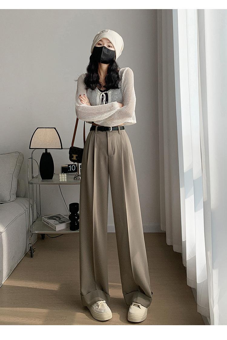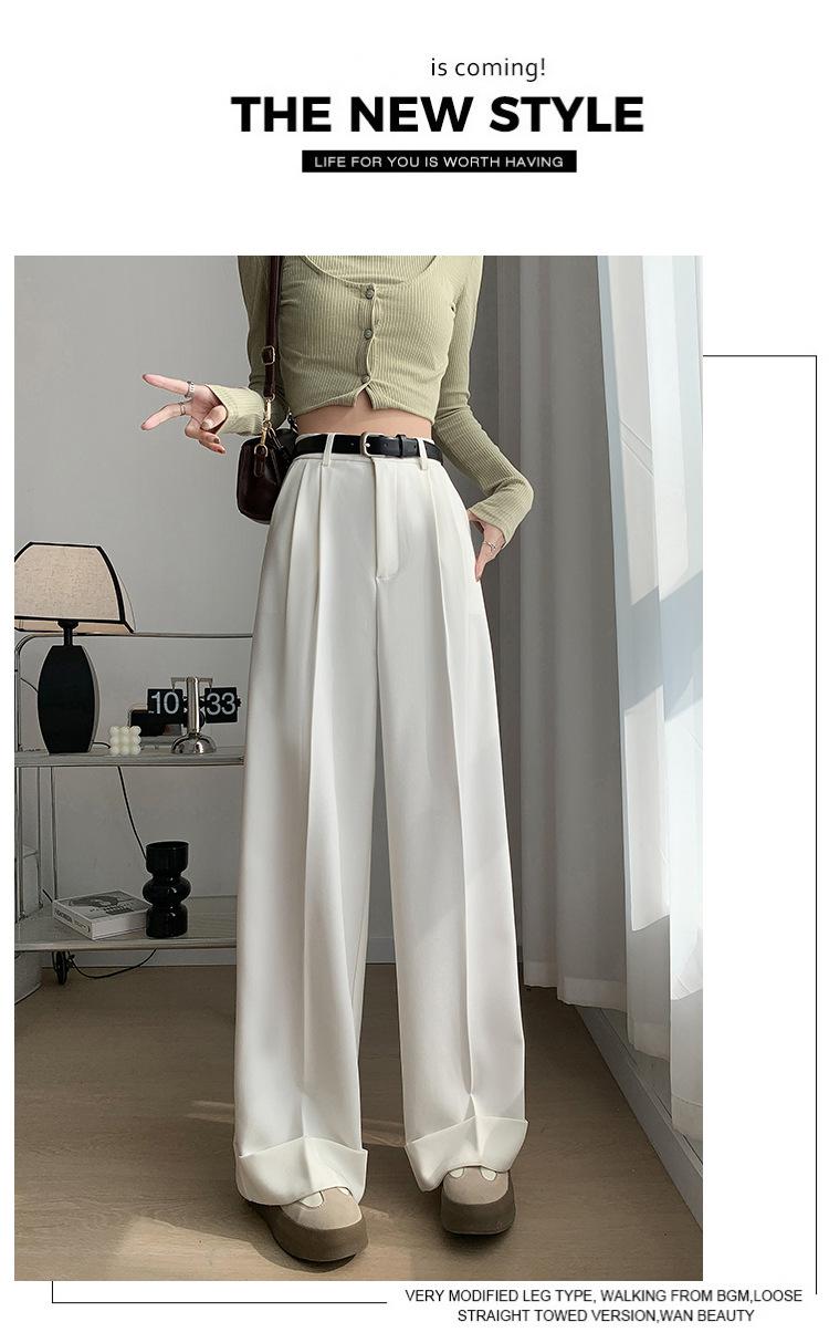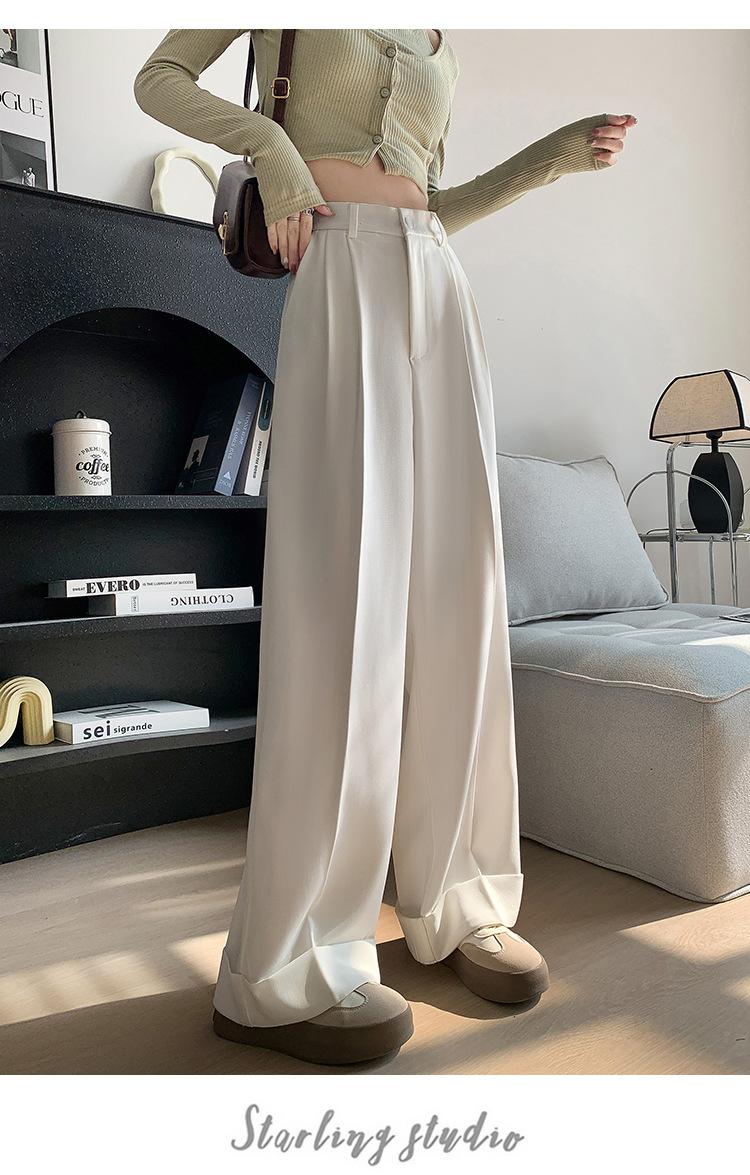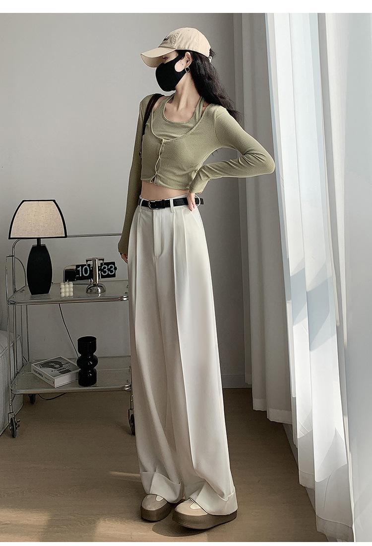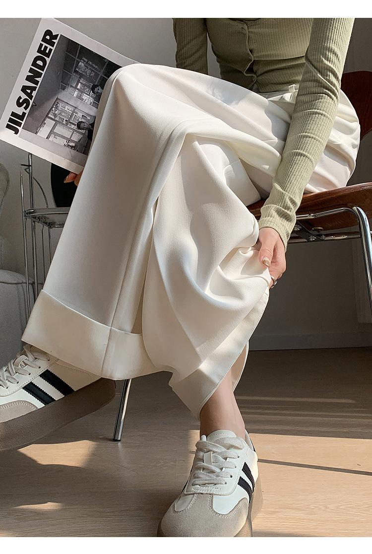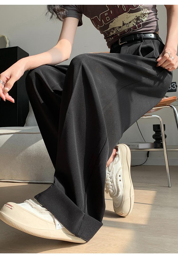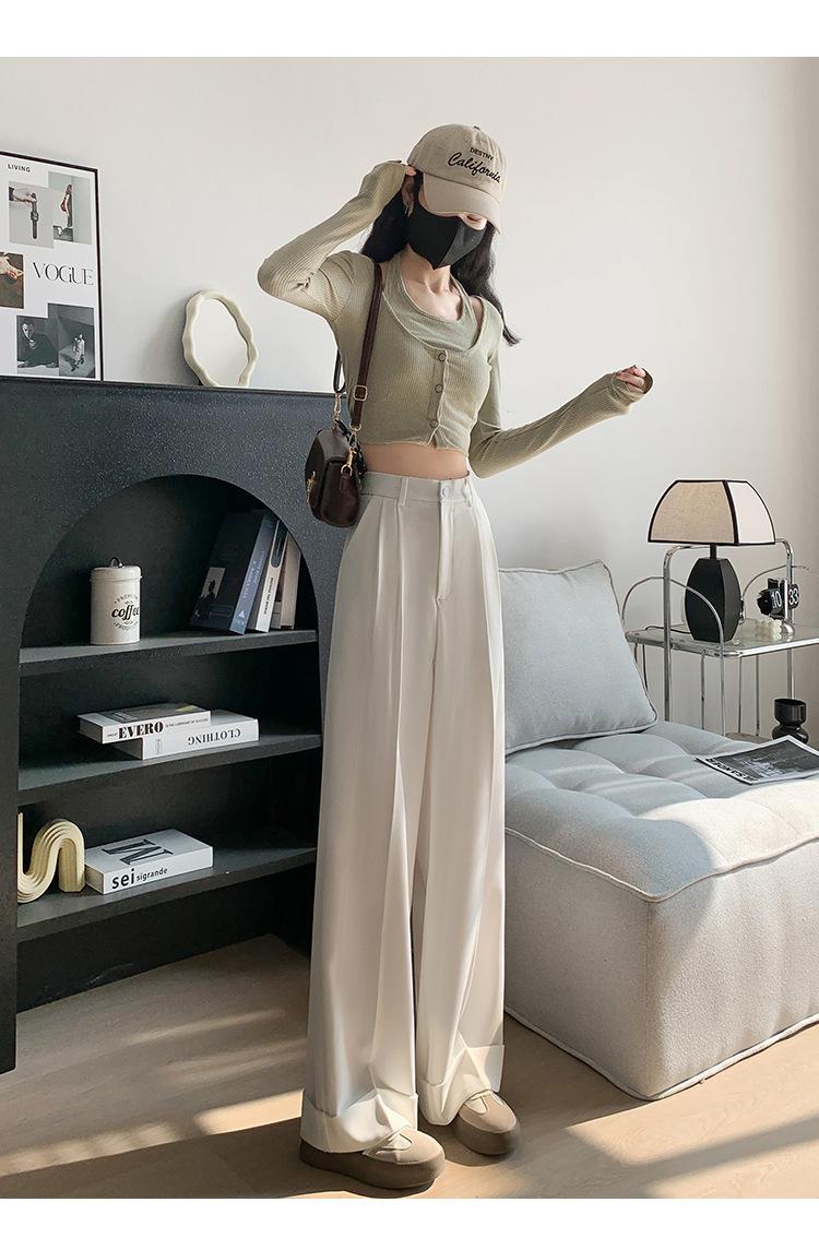 Traje con puños de pierna ancha para mujer 2025 Verano Nuevo Suelto Casual Cintura alta Slim Pantalón recto Pantalón drapeado hasta el suelo