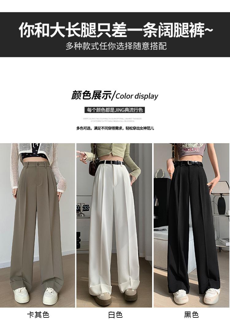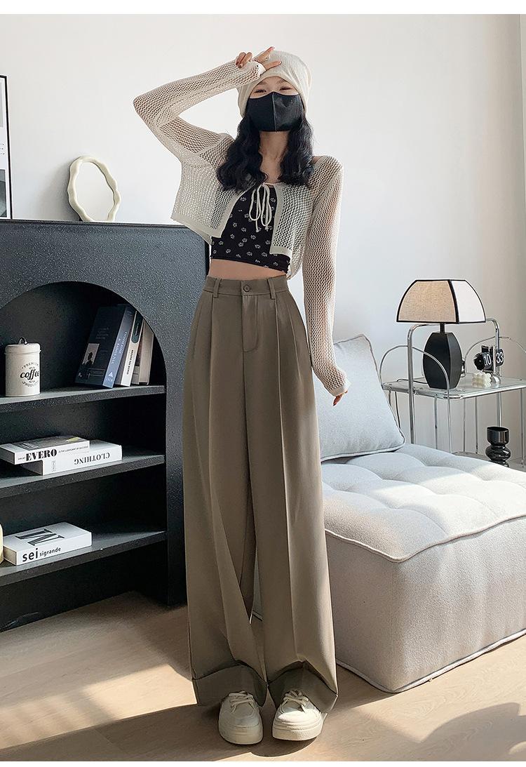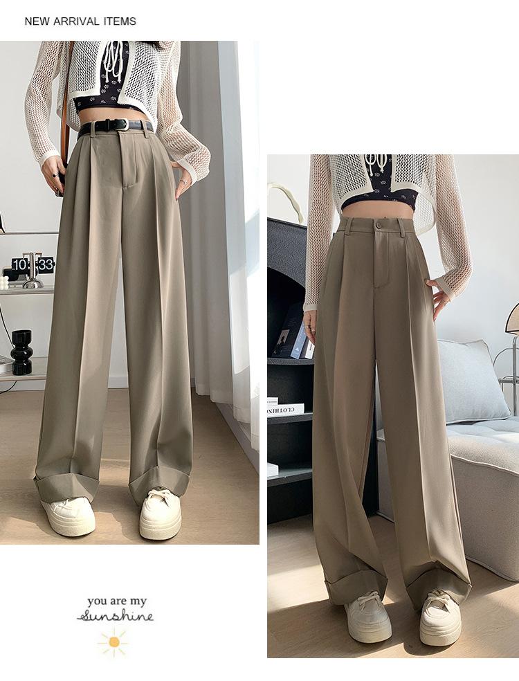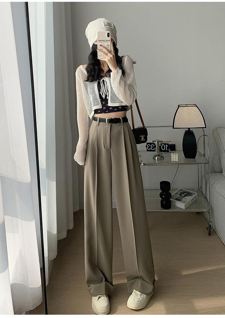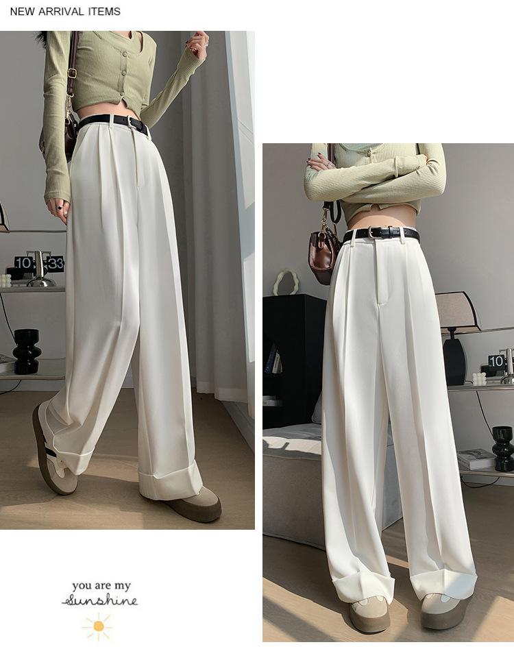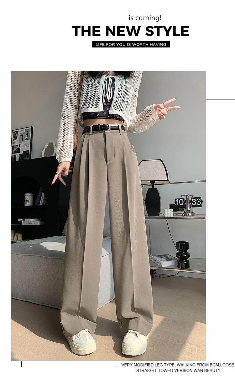 Traje con puños de pierna ancha para mujer 2025 Verano Nuevo Suelto Casual Cintura alta Slim Pantalón recto Pantalón drapeado hasta el suelo