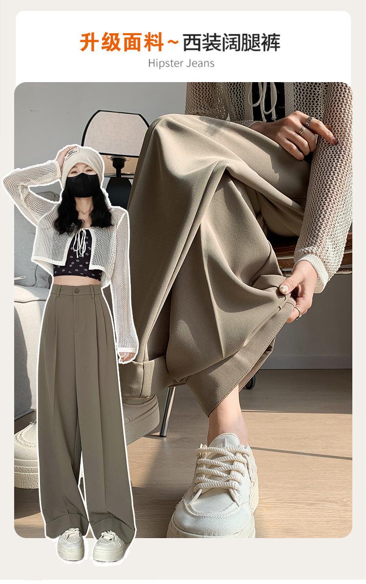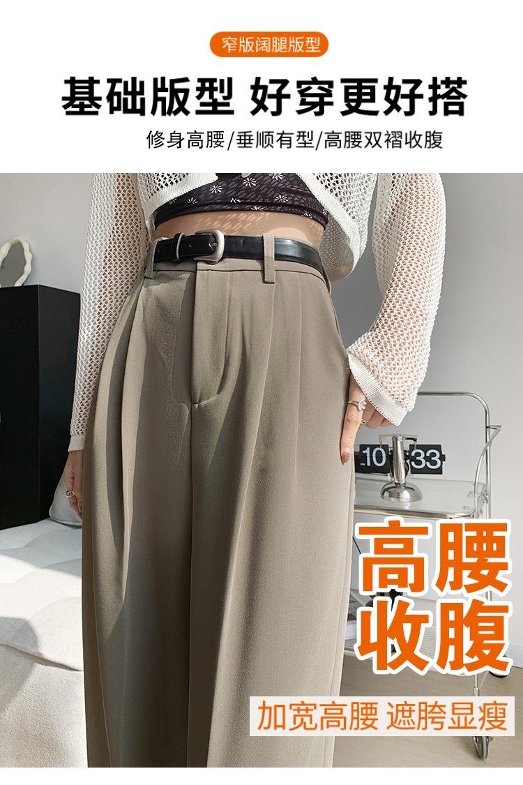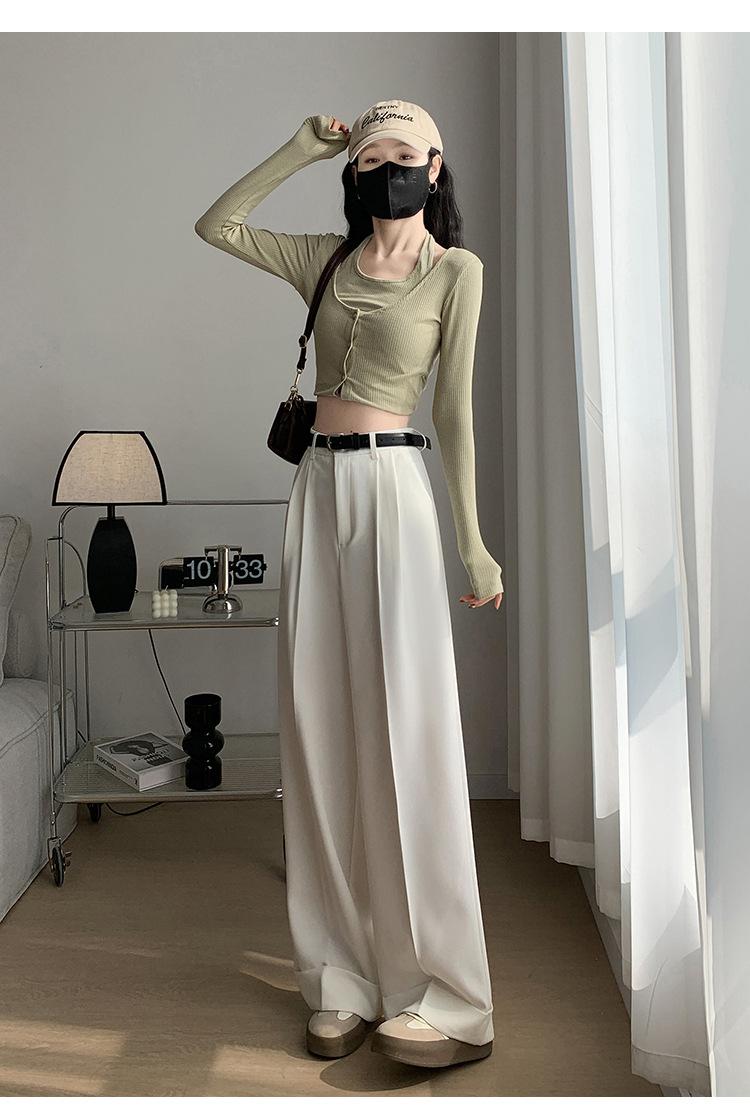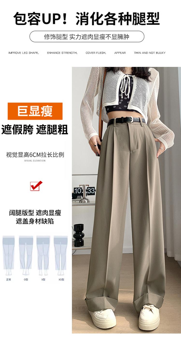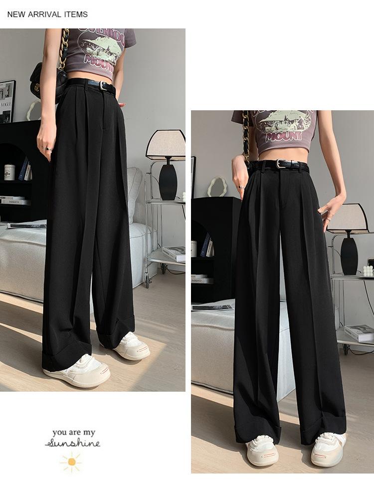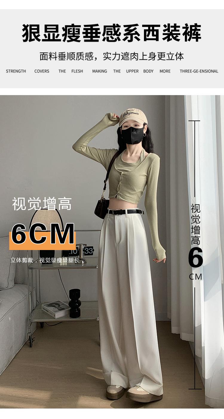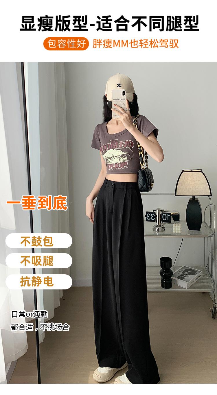 Traje con puños de pierna ancha para mujer 2025 Verano Nuevo Suelto Casual Cintura alta Slim Pantalón recto Pantalón drapeado hasta el suelo
