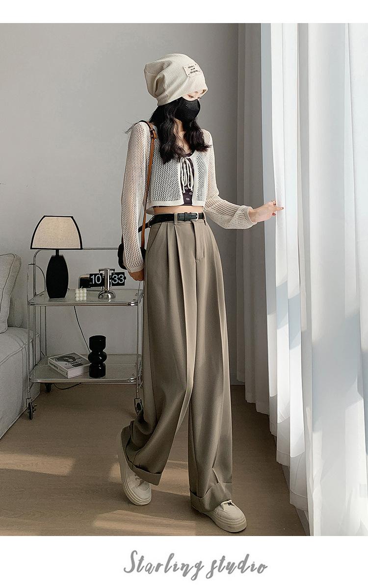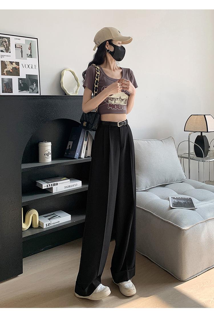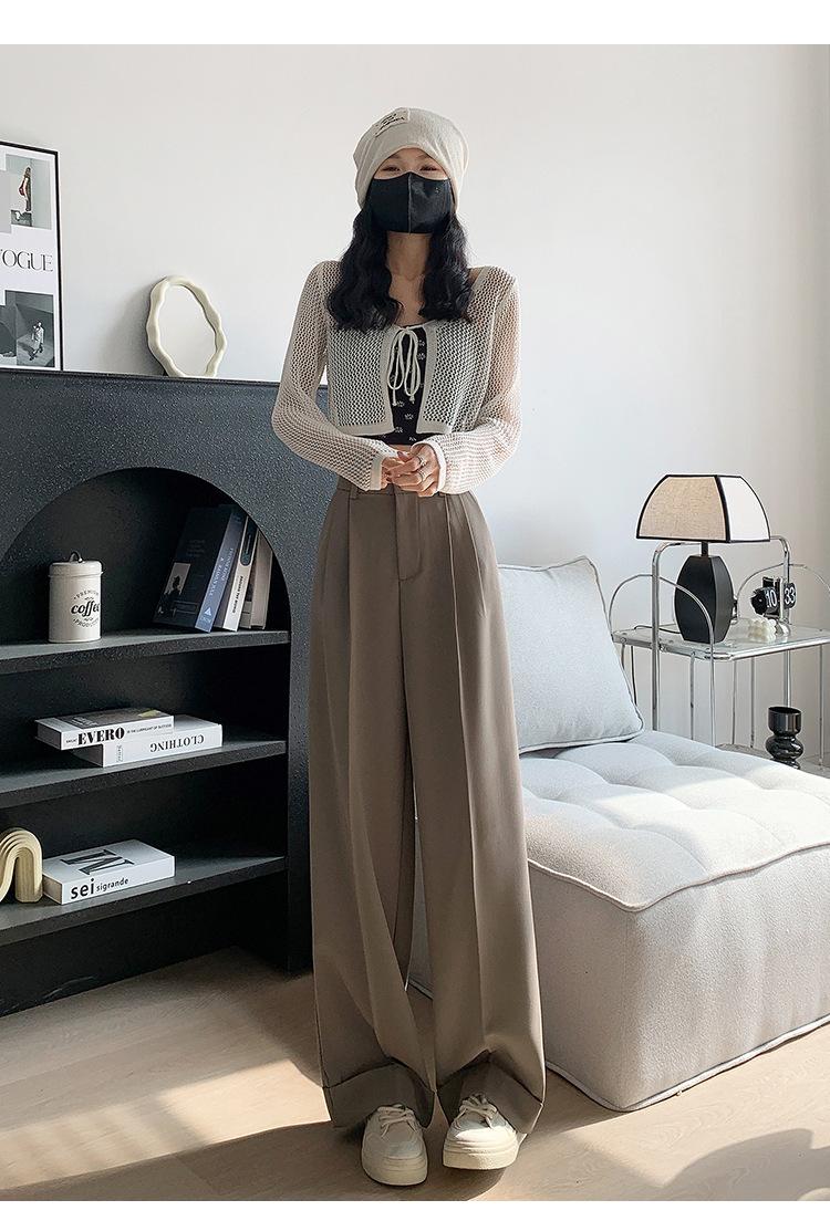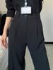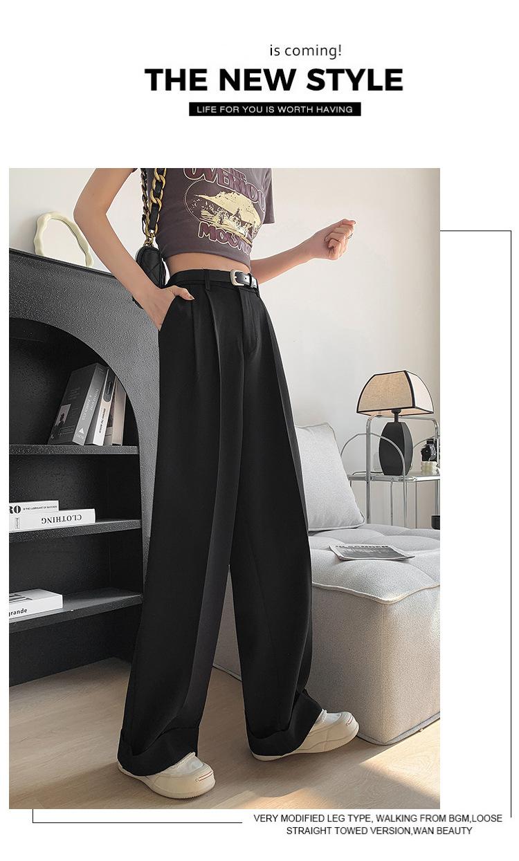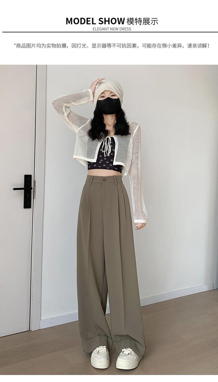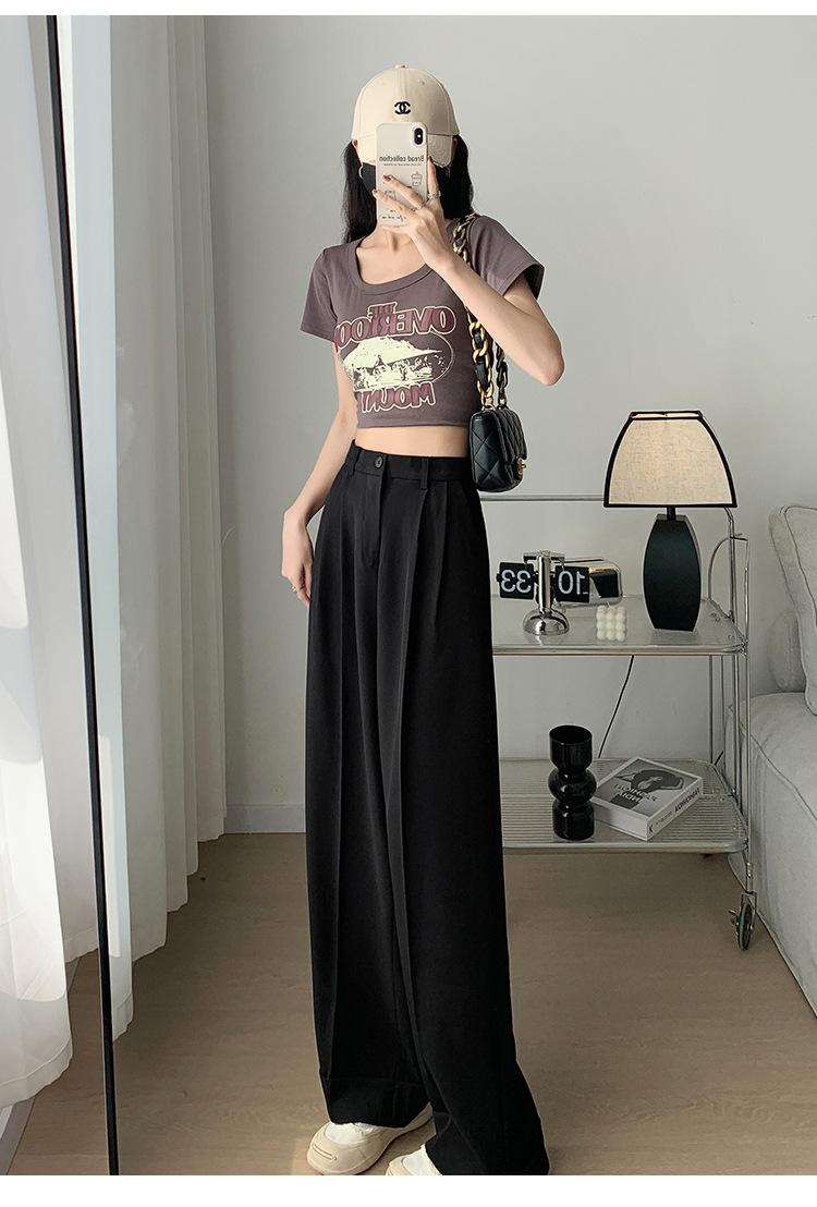 Traje con puños de pierna ancha para mujer 2025 Verano Nuevo Suelto Casual Cintura alta Slim Pantalón recto Pantalón drapeado hasta el suelo