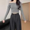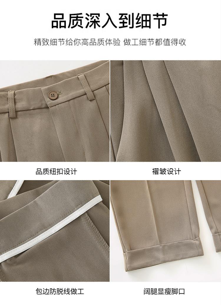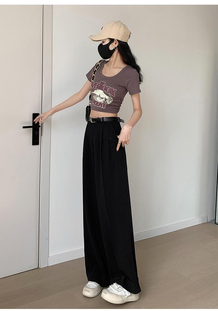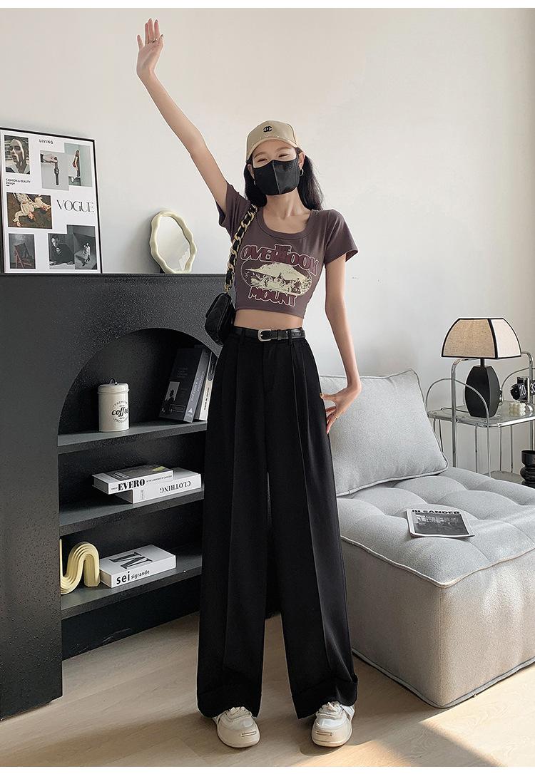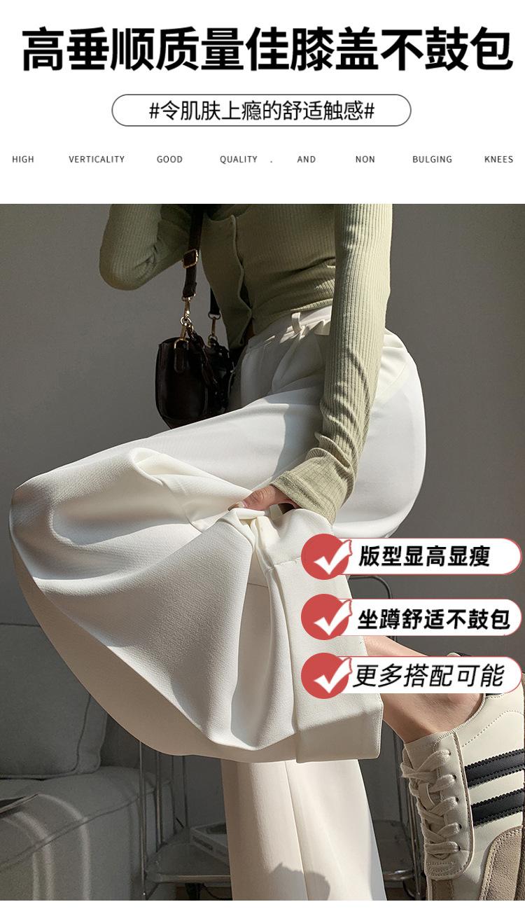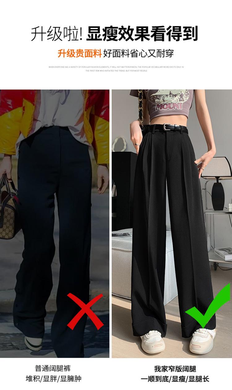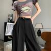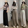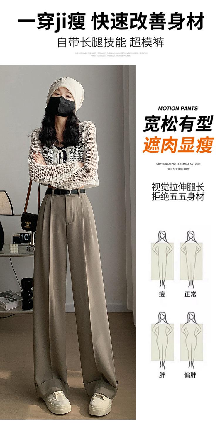 Traje con puños de pierna ancha para mujer 2025 Verano Nuevo Suelto Casual Cintura alta Slim Pantalón recto Pantalón drapeado hasta el suelo