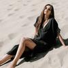 Nuevo cárdigan de playa de bikini de manga larga holgado estilo camisa negra estilo europeo y americano para vacaciones en la playa con protector solar