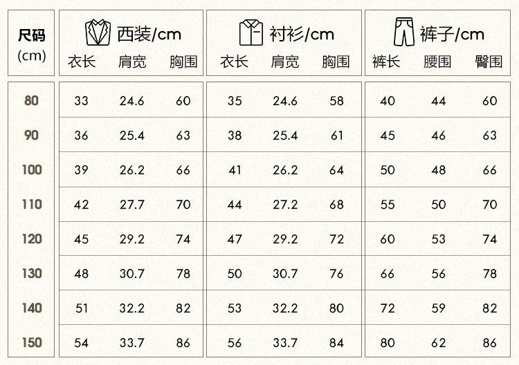 80cm, 90cm, 100cm, 110cm, 120cm, 130cm, 140cm, 150cm