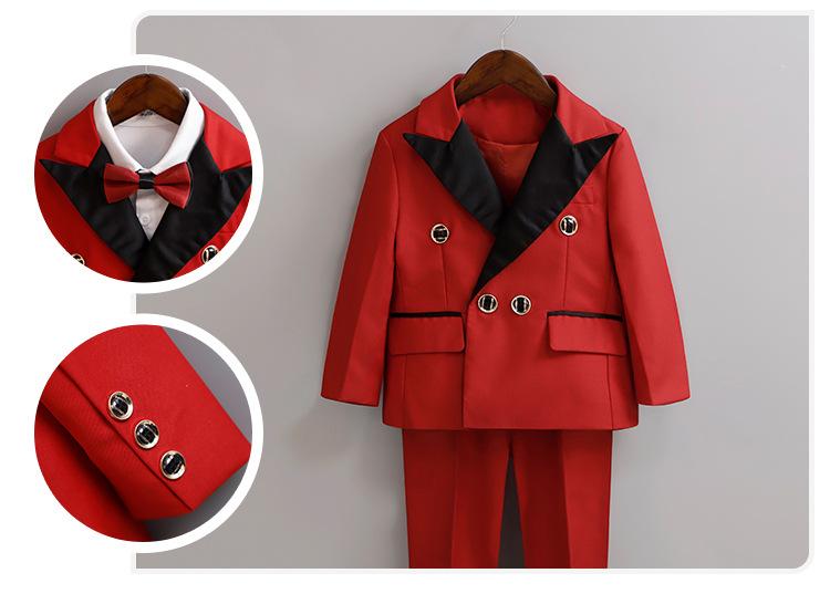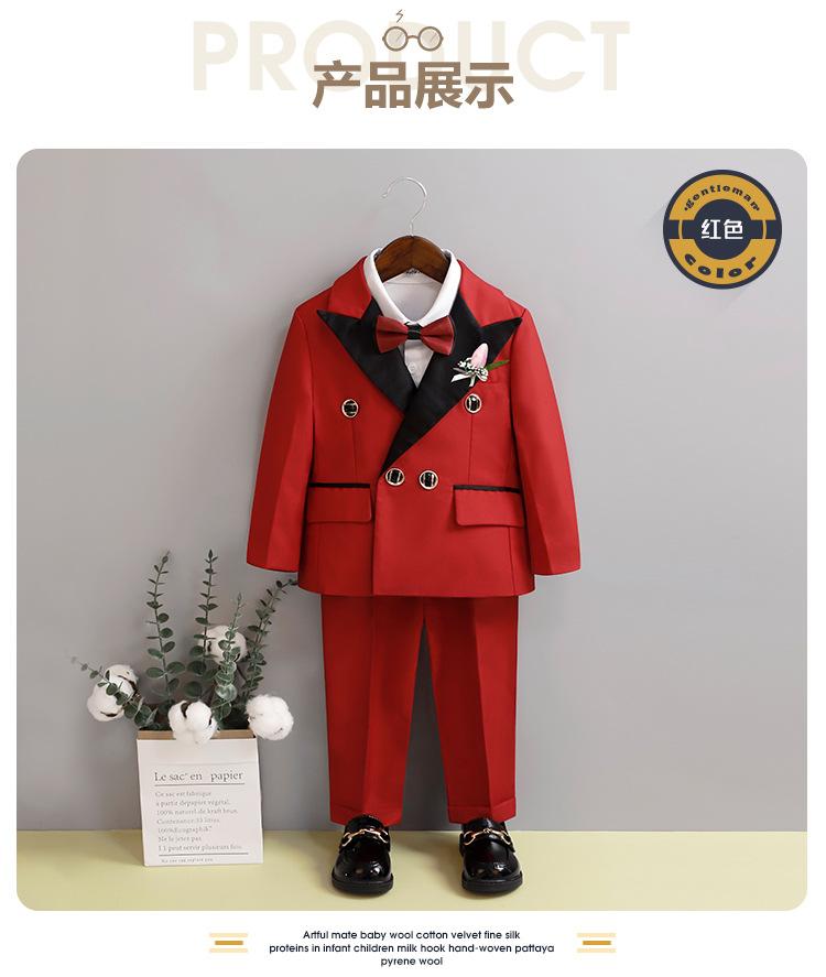 Red 4-piece set (jacket + trousers + Y6Y7 bow tie + pink tulip corsage)