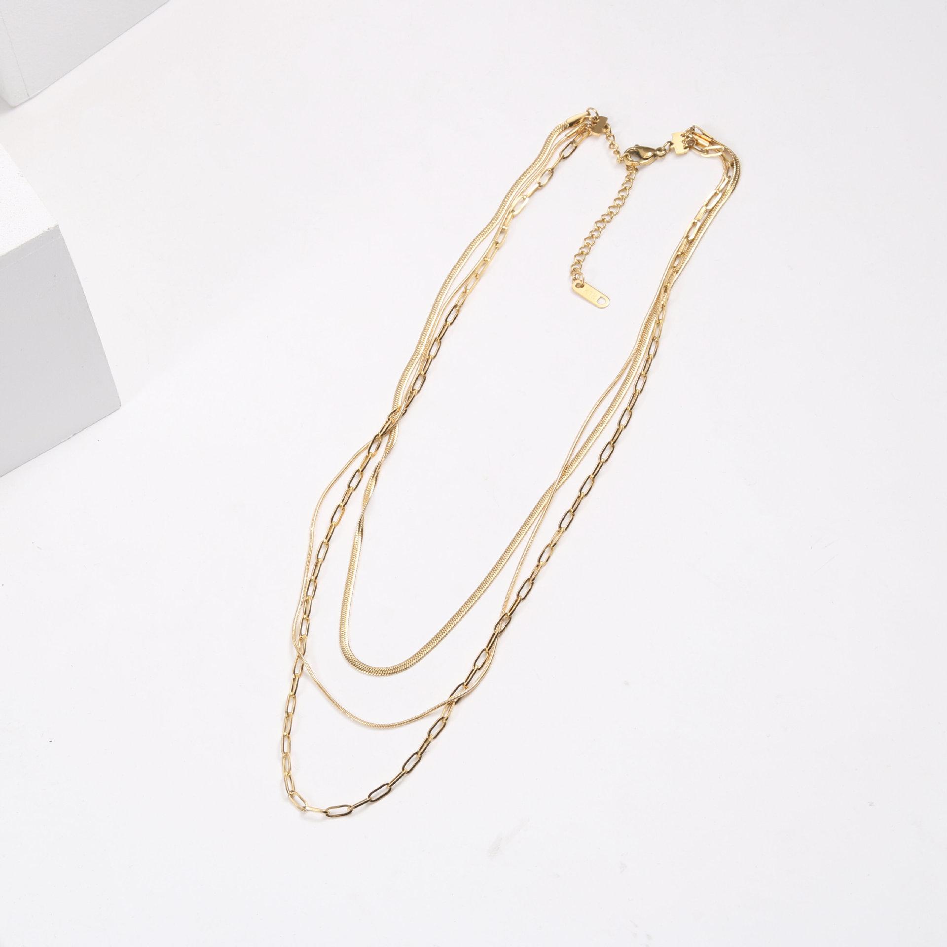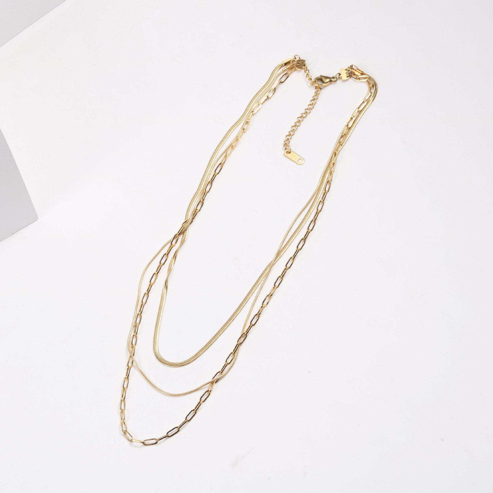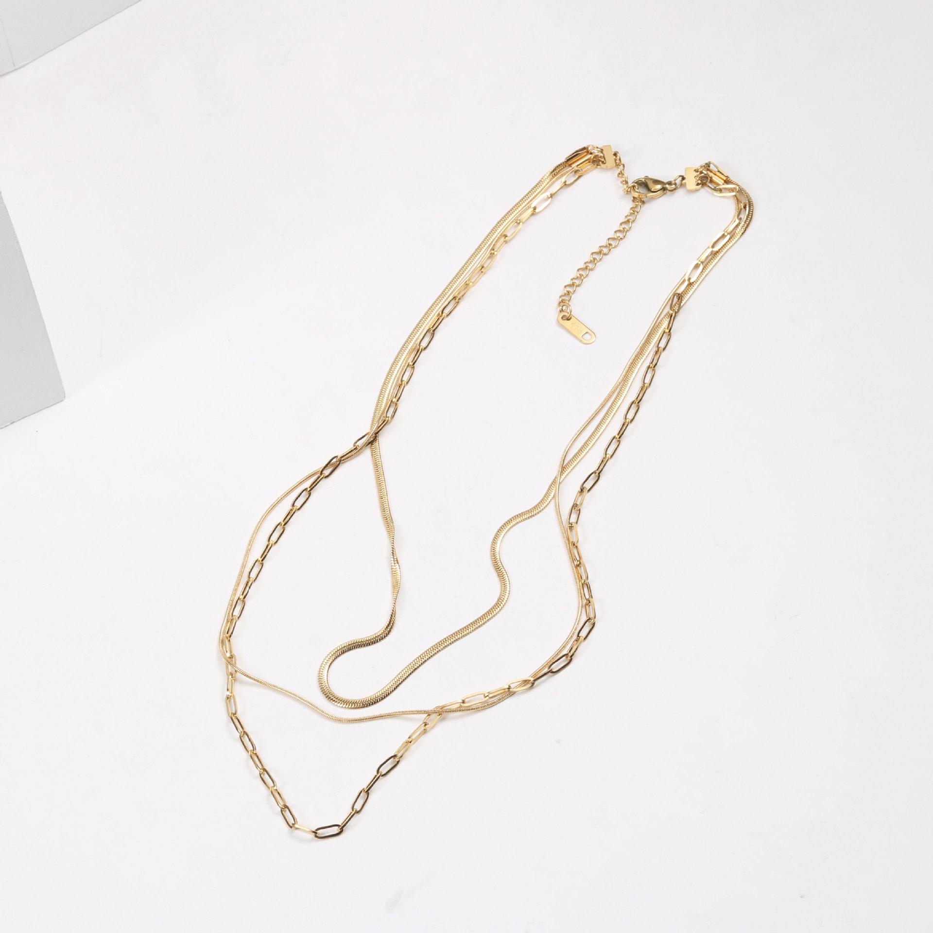 Collar de tres capas acero de titanio chapado en oro de 18K