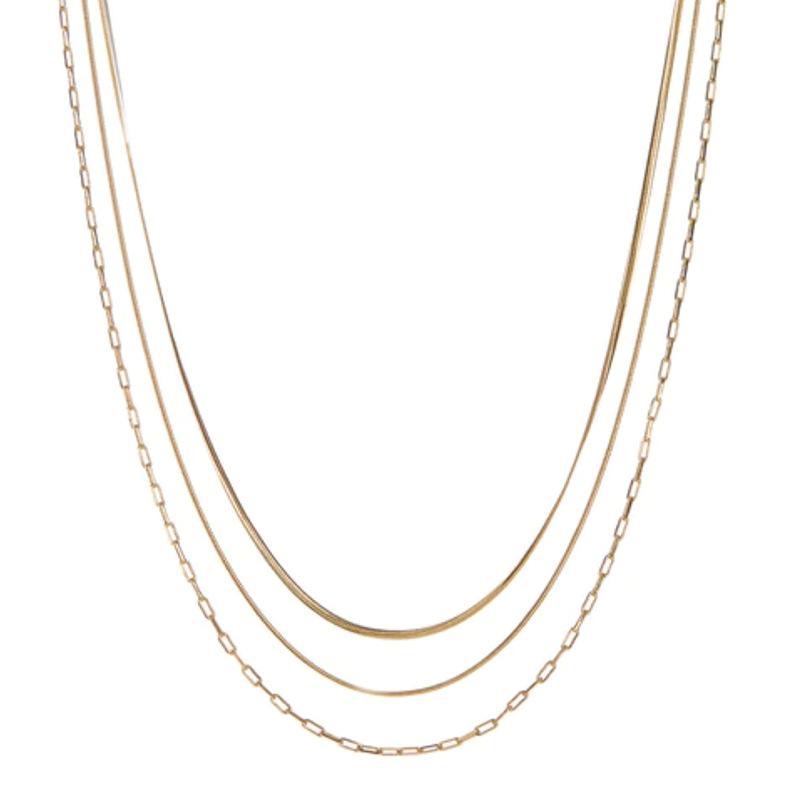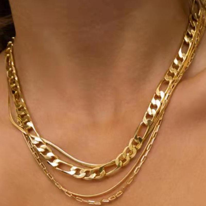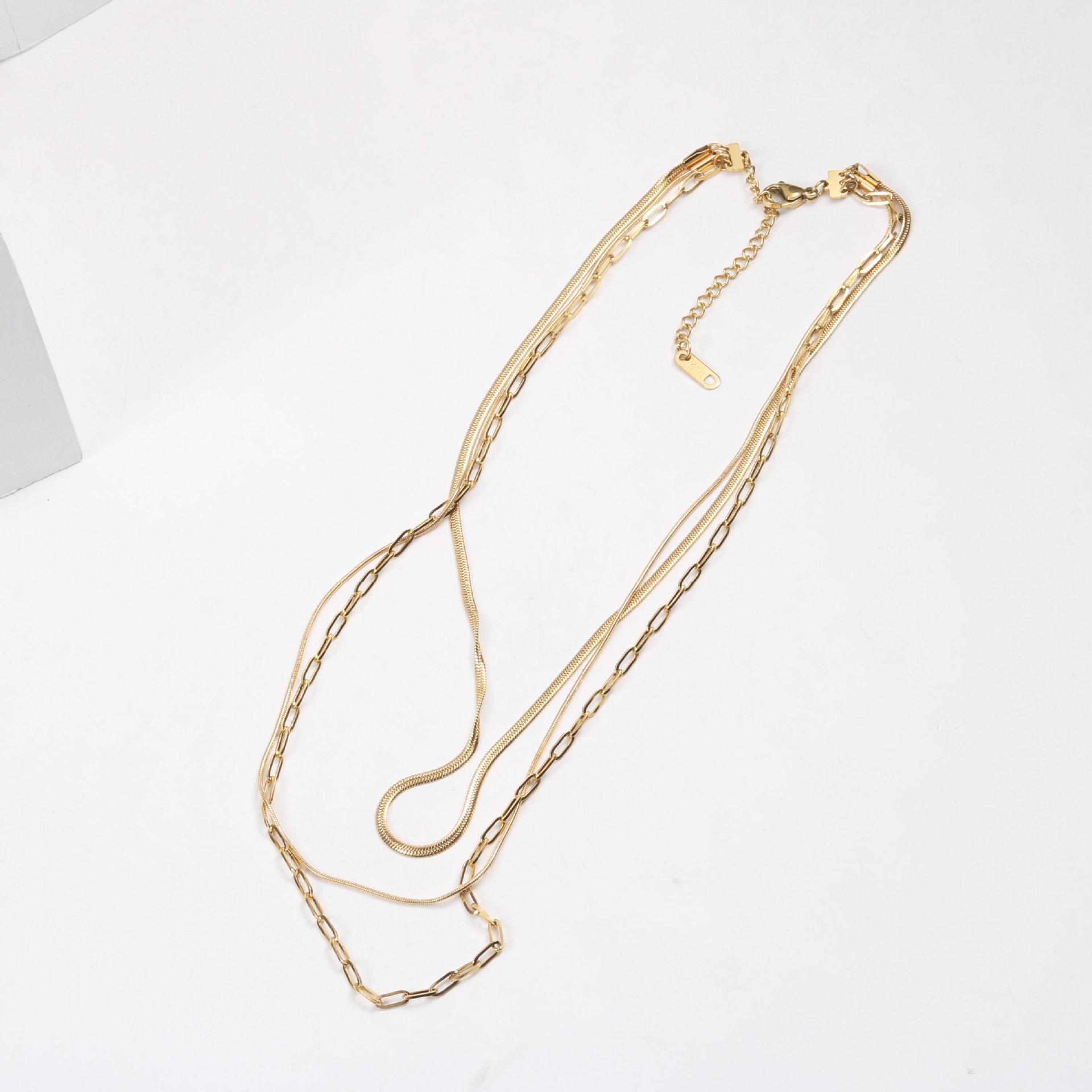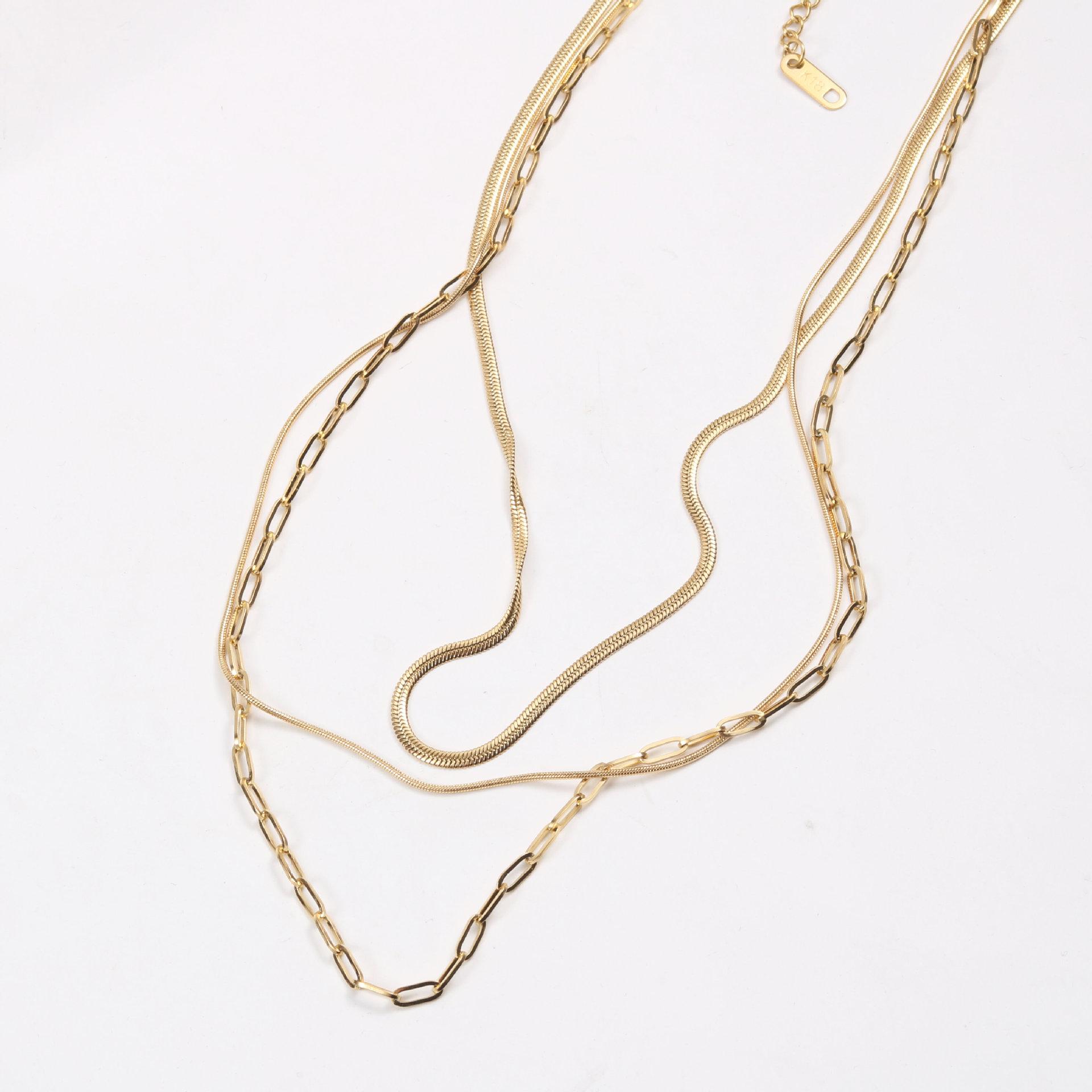 Collar de tres capas acero de titanio chapado en oro de 18K