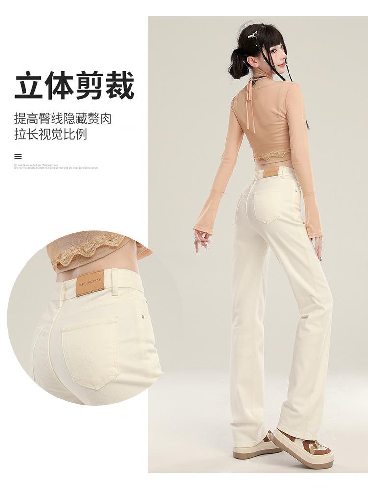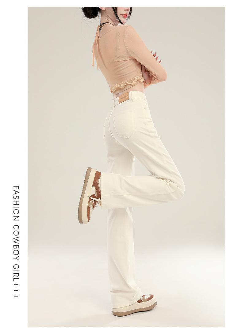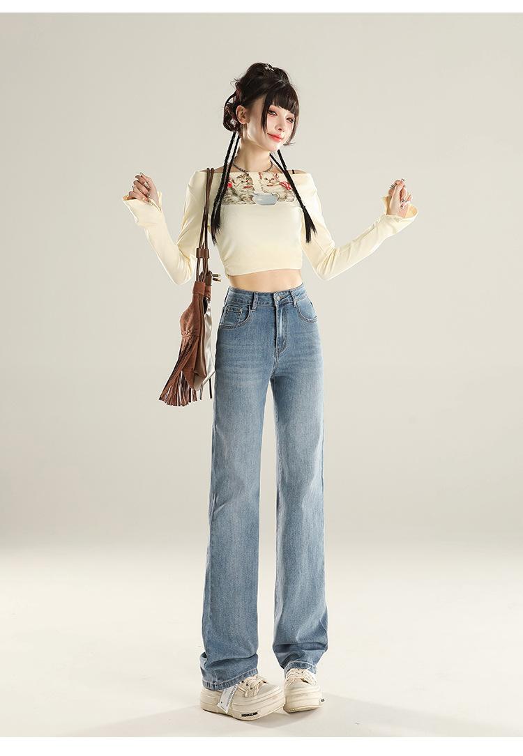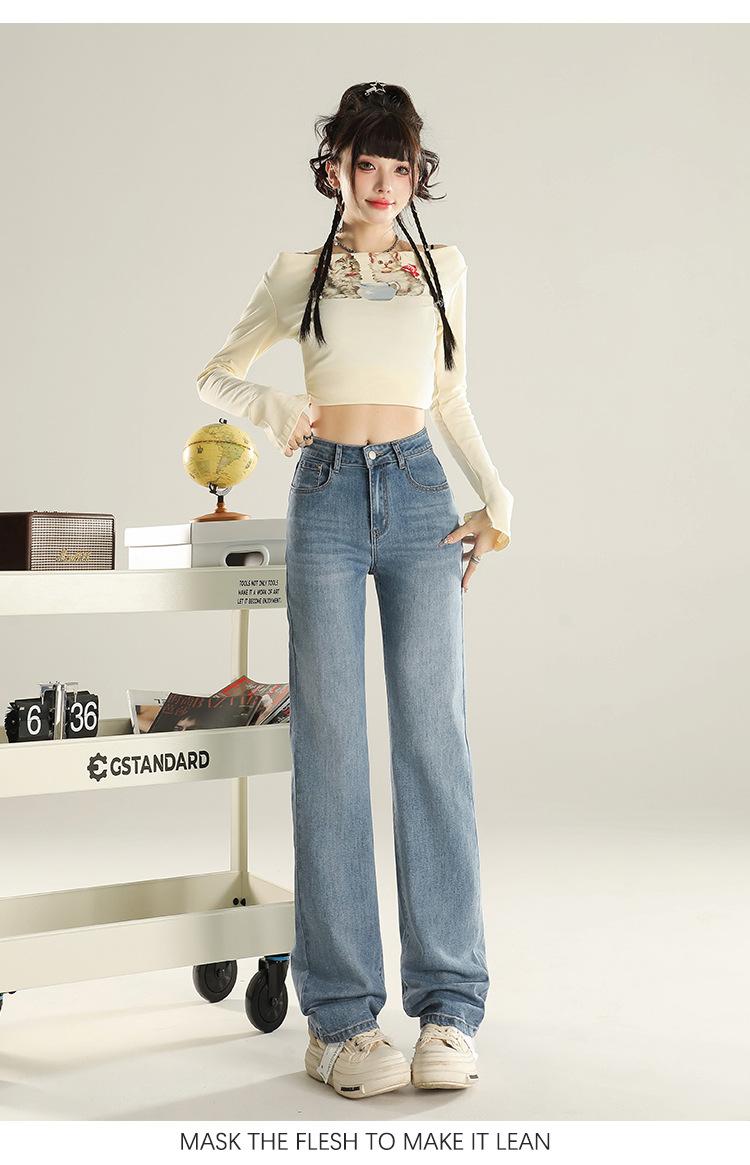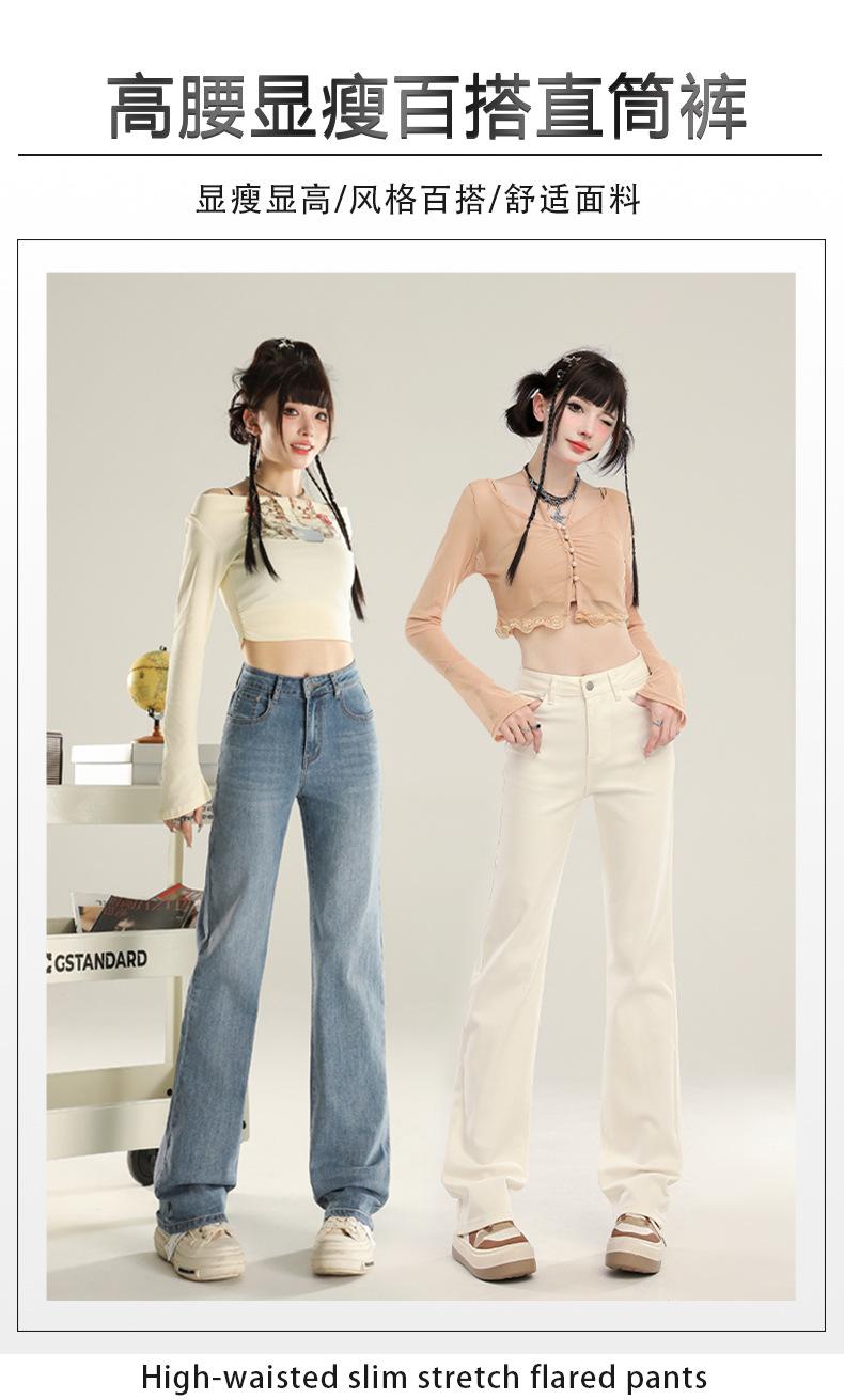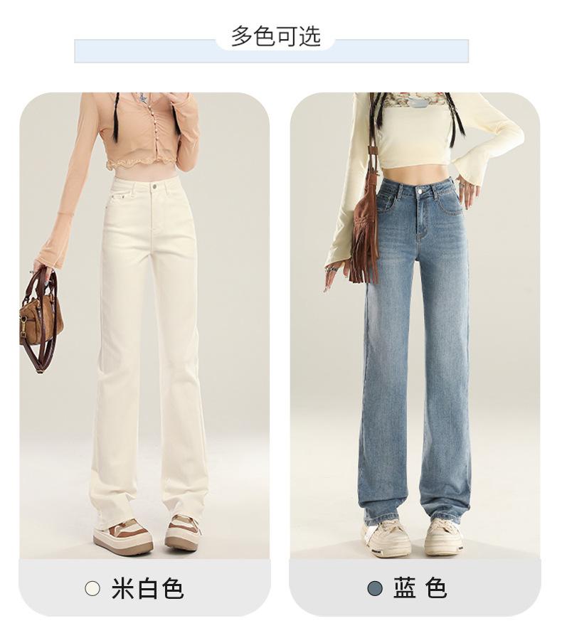 Jeans Stretch de Pierna Recta para Mujer, Otoño de Cintura Alta Ajustados de Pierna Estrecha Ancha, Jeans de Otoño con Caída hasta el Piso para Mujer