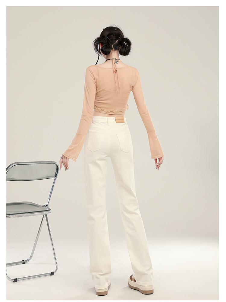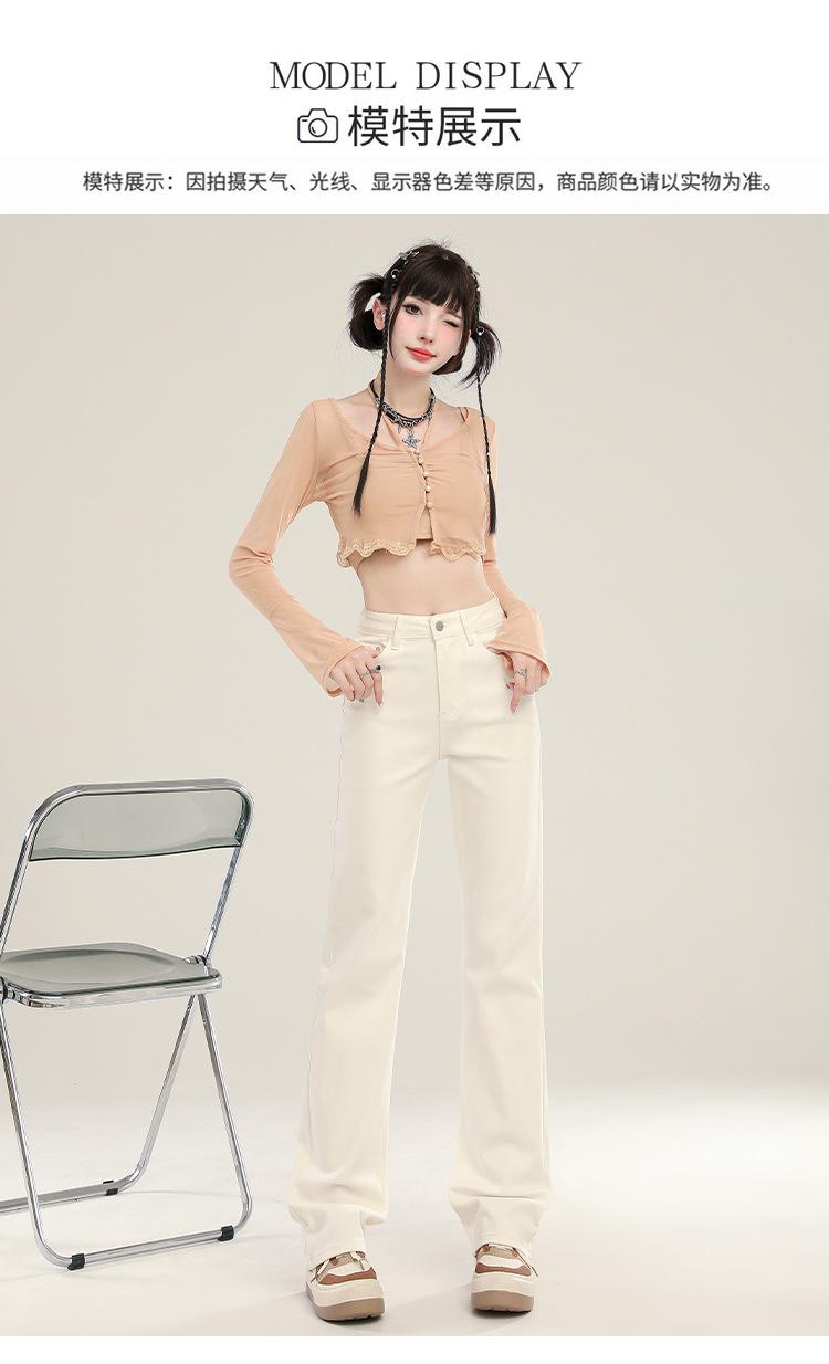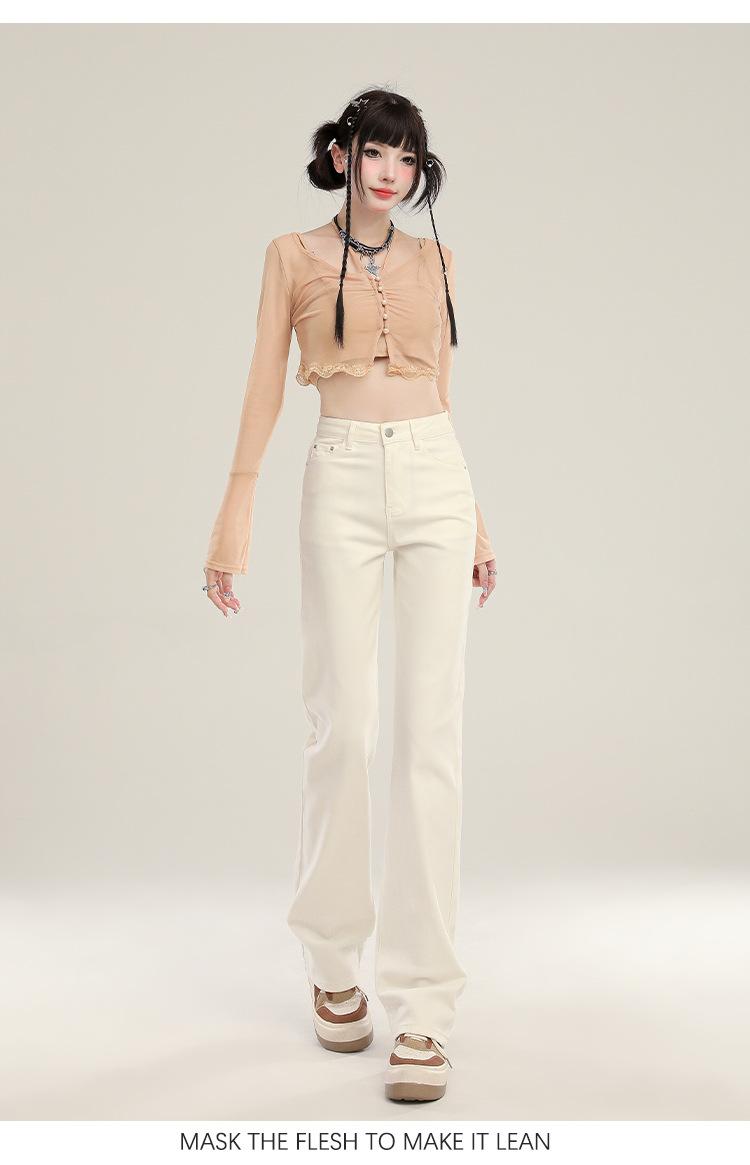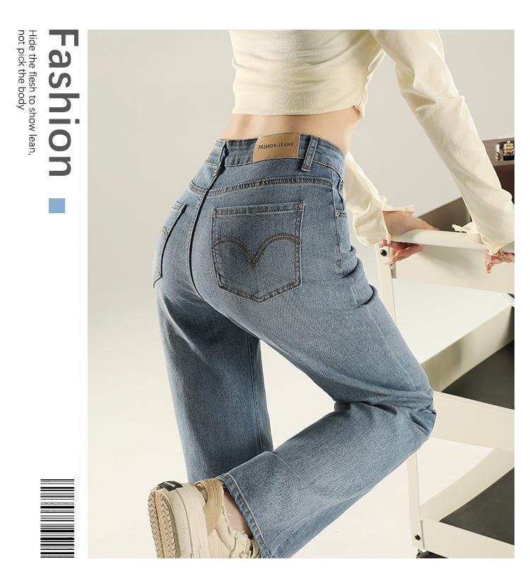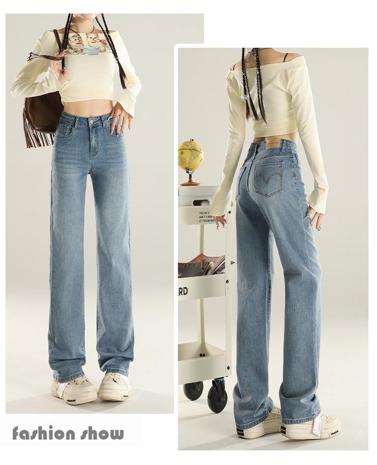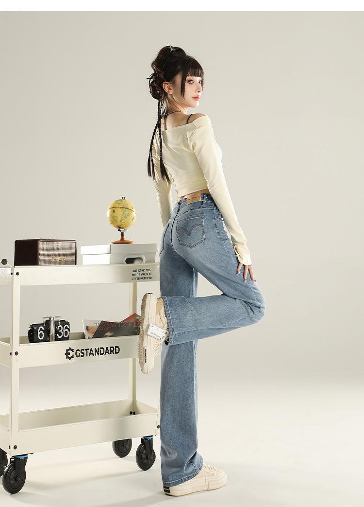 Jeans Stretch de Pierna Recta para Mujer, Otoño de Cintura Alta Ajustados de Pierna Estrecha Ancha, Jeans de Otoño con Caída hasta el Piso para Mujer