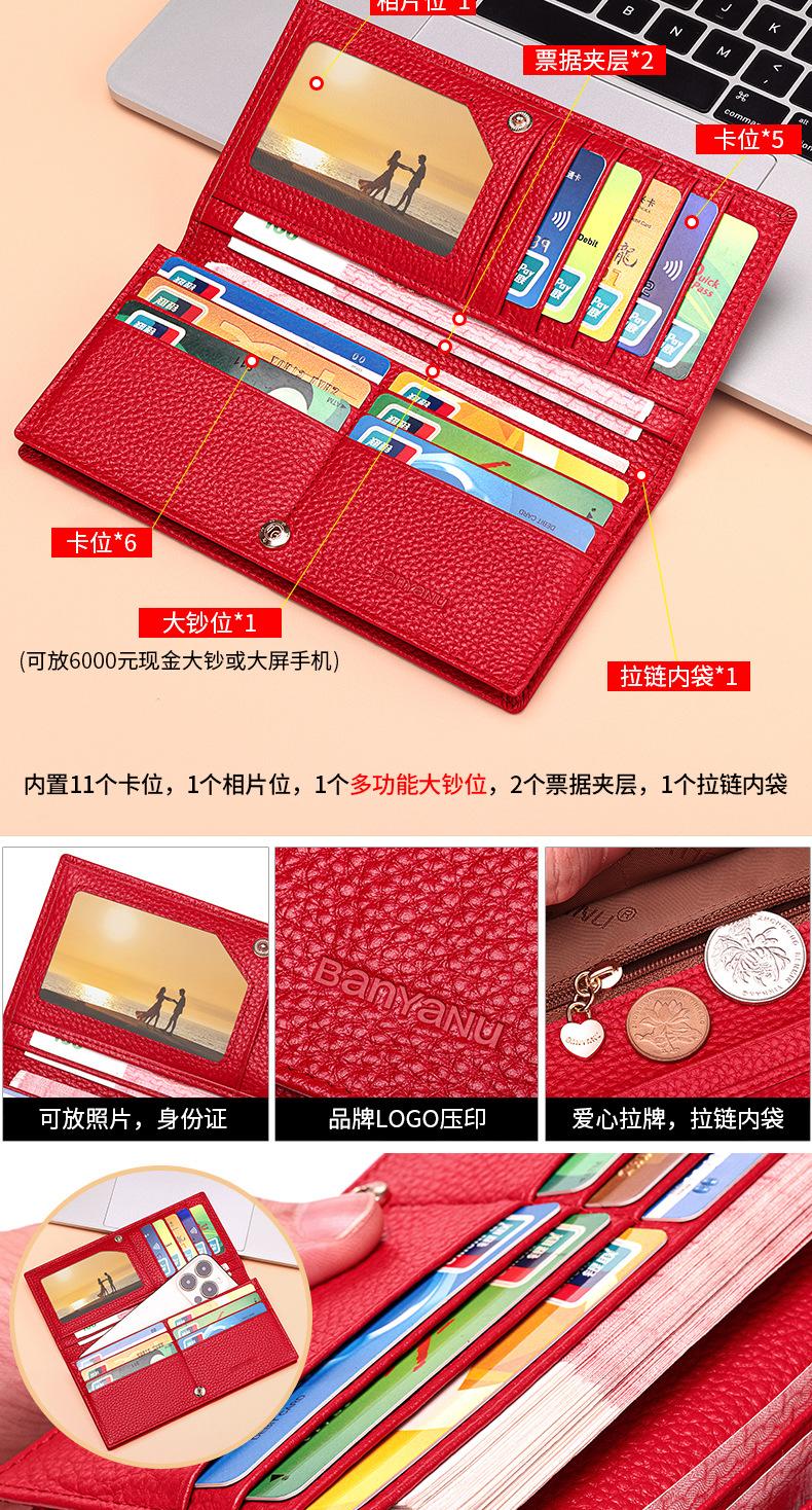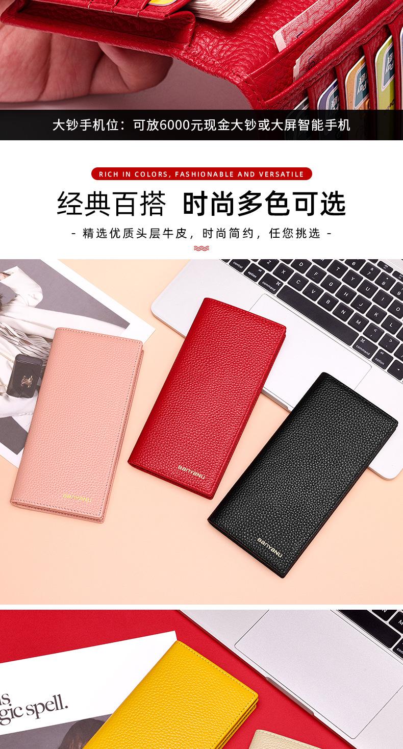 Cartera de Mujer Larga de Cuero Genuino 2025 Nueva Cuero Vacuno Suave Antidesmagnetización Cartera de Negocios Bolso Pequeño Clutch Cartera de Mujer