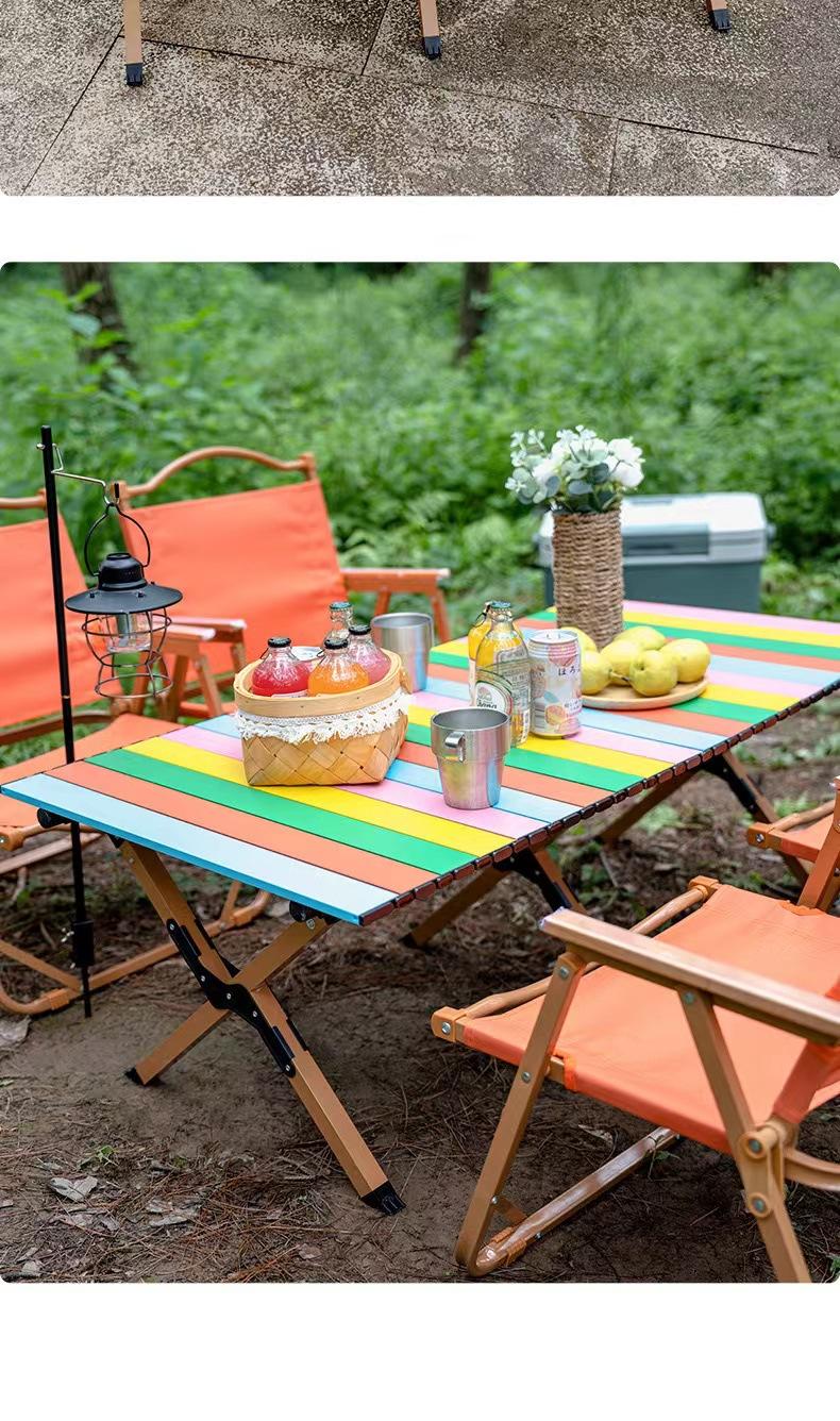 Mesa plegable para acampar al aire libre, color naranja, de aleación de aluminio, portátil, para acampar, juego de mesa y sillas para jardín y exterior.