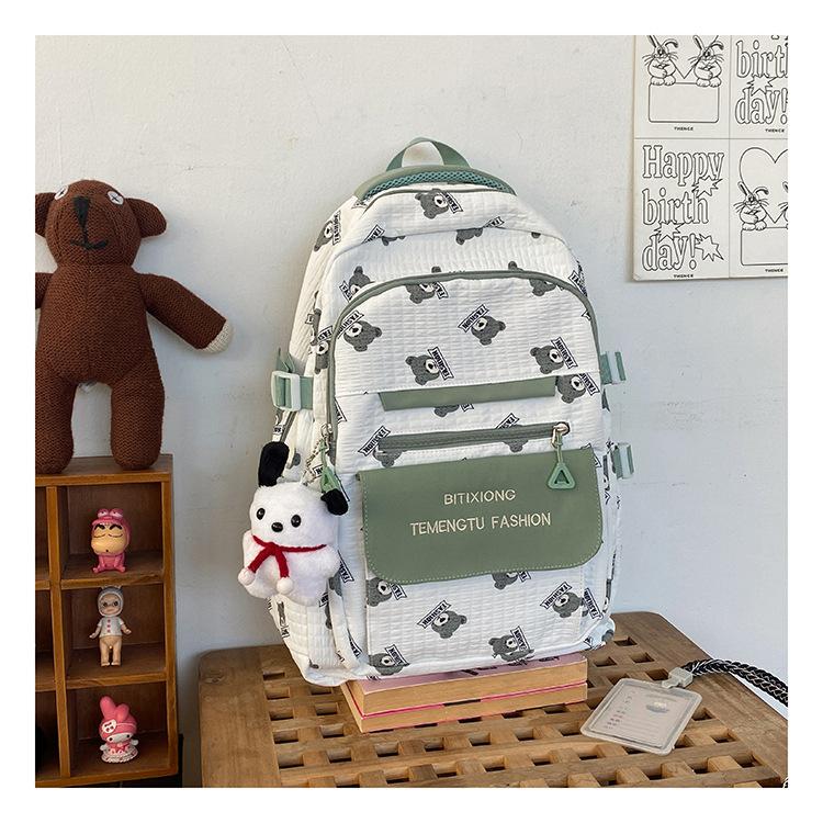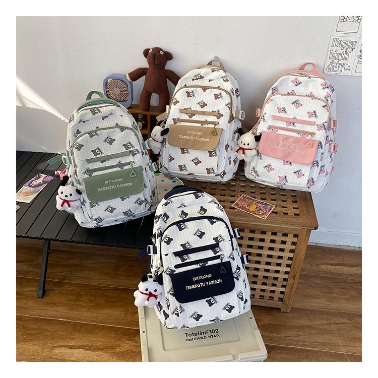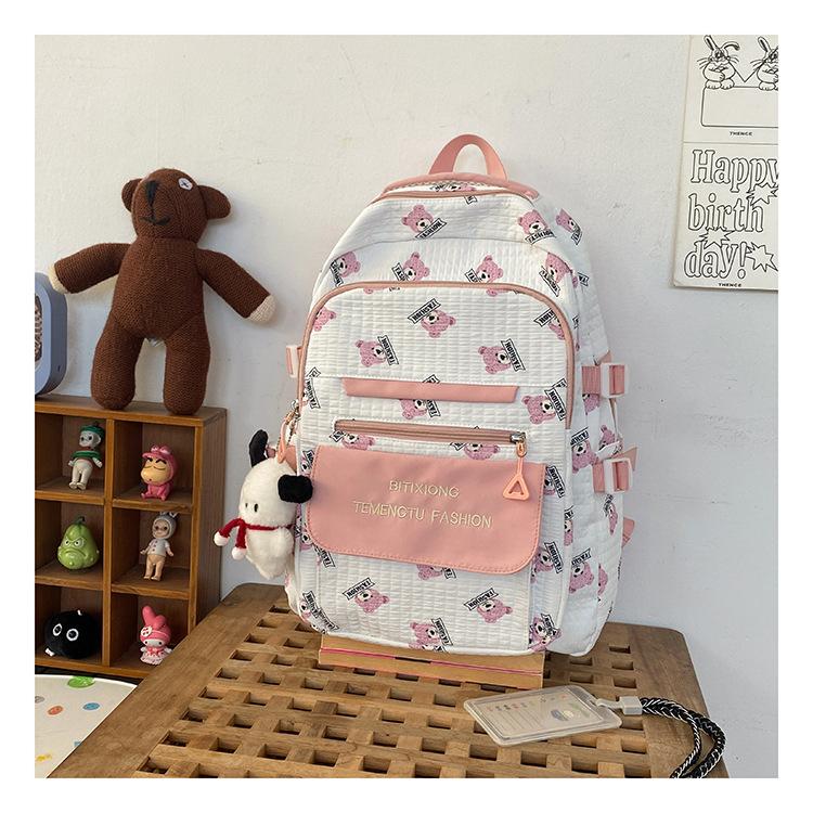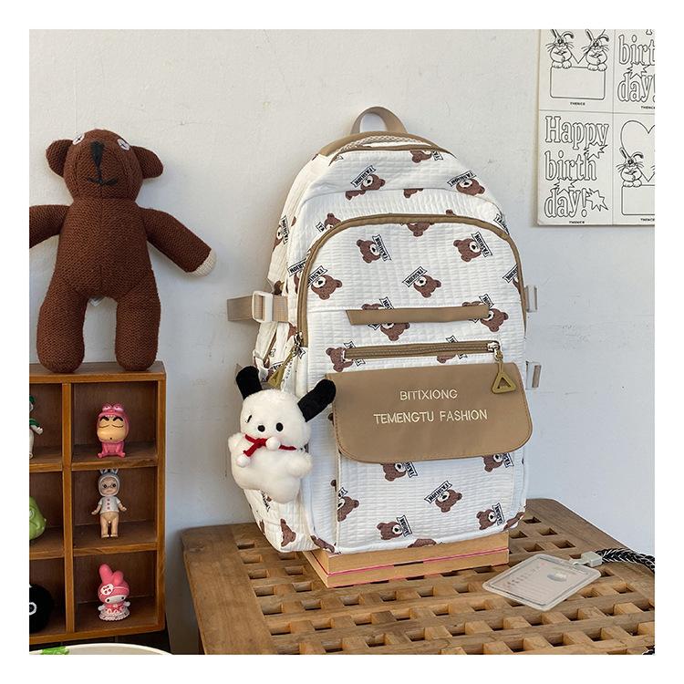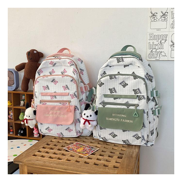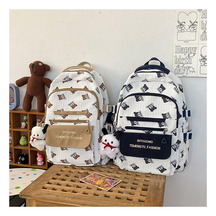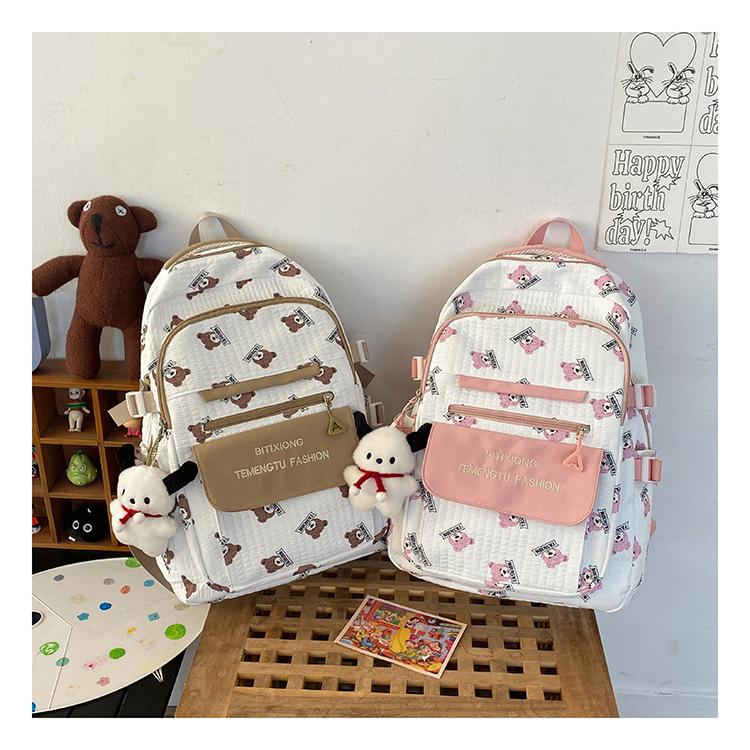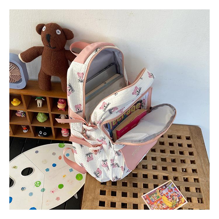 Mochila japonesa con diseño de oso lindo de gran capacidad para estudiantes de secundaria, nueva mochila sencilla de múltiples capas para estudiantes de escuela primaria