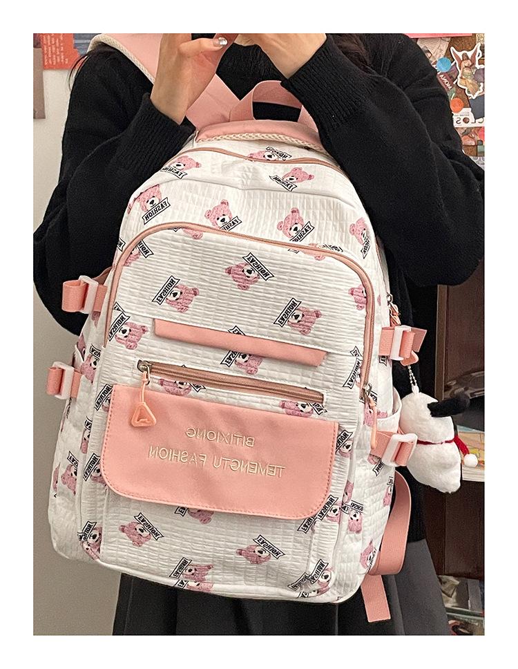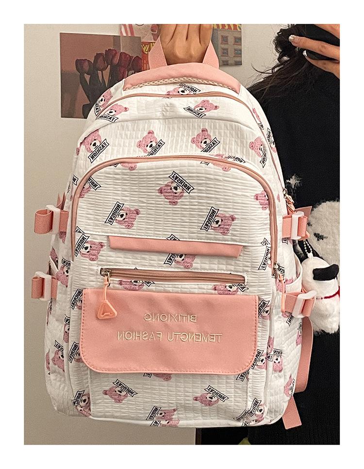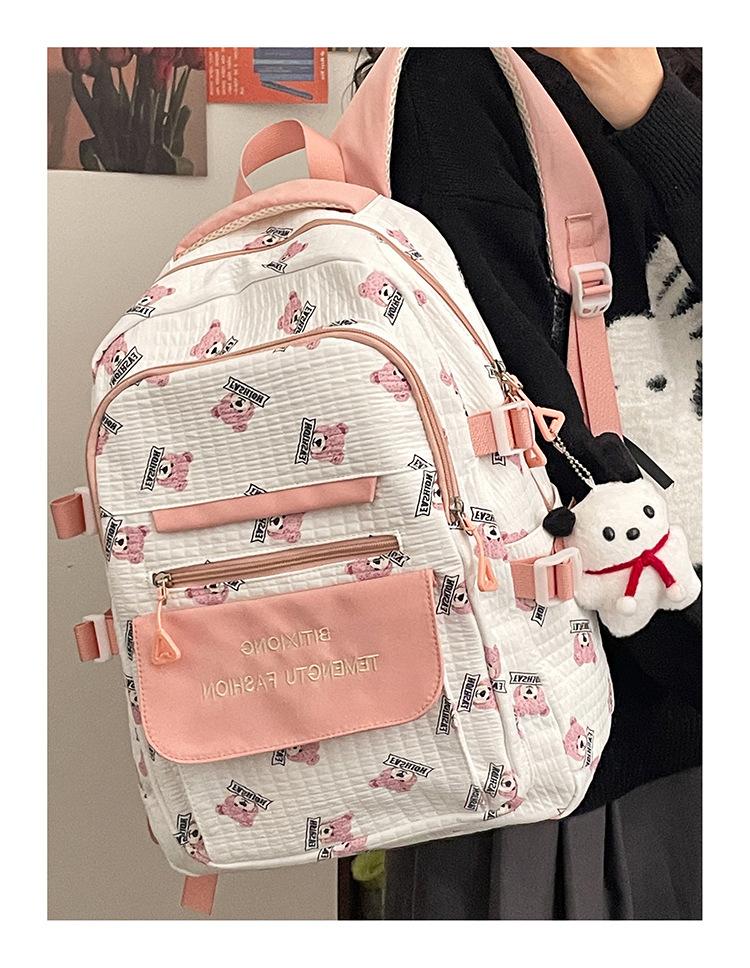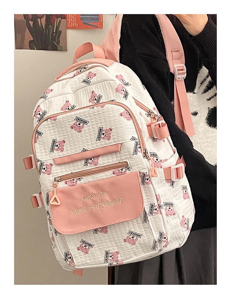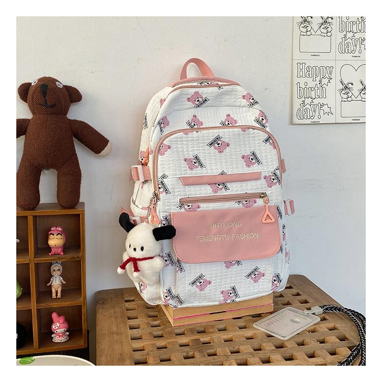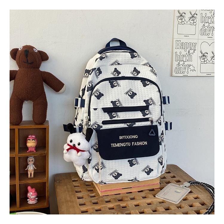 Mochila japonesa con diseño de oso lindo de gran capacidad para estudiantes de secundaria, nueva mochila sencilla de múltiples capas para estudiantes de escuela primaria