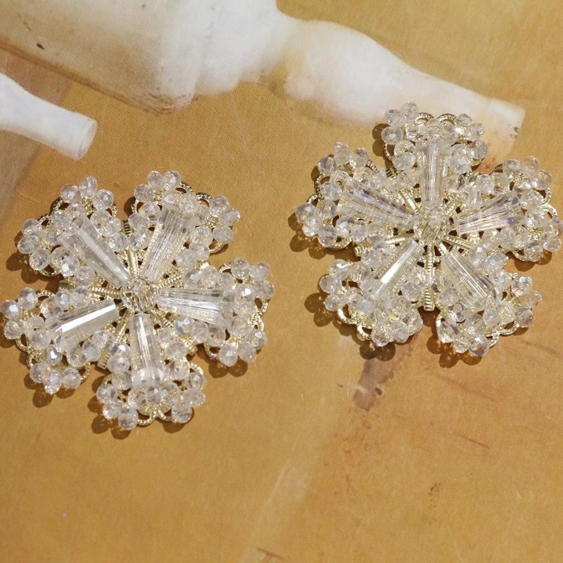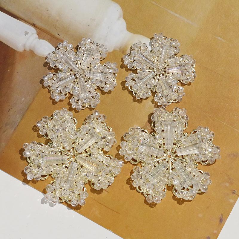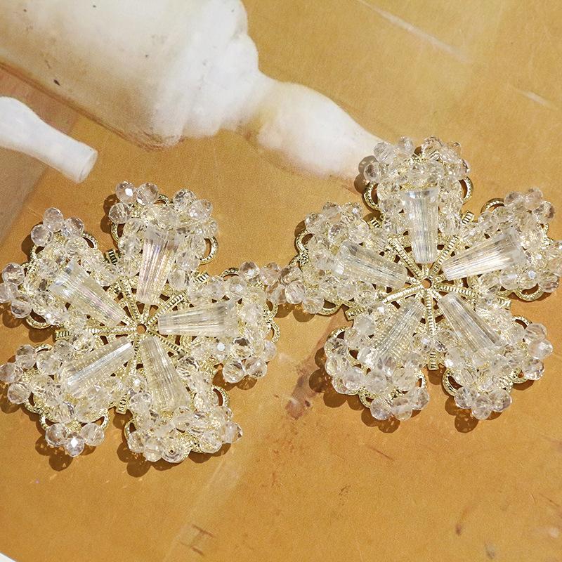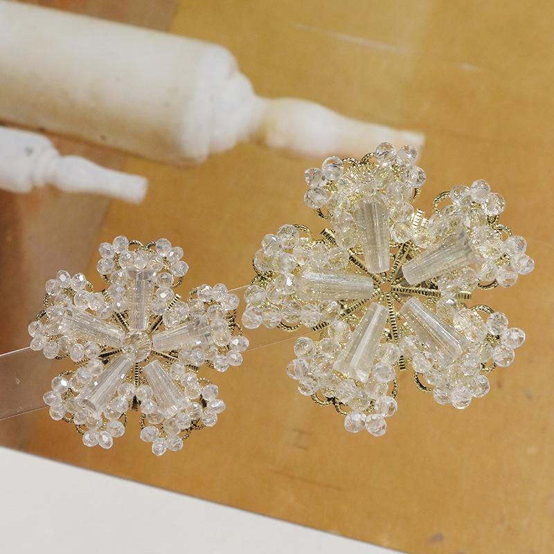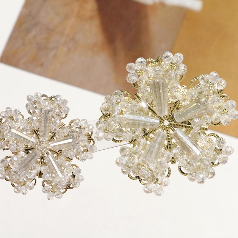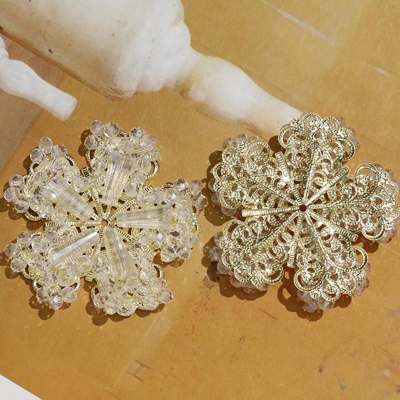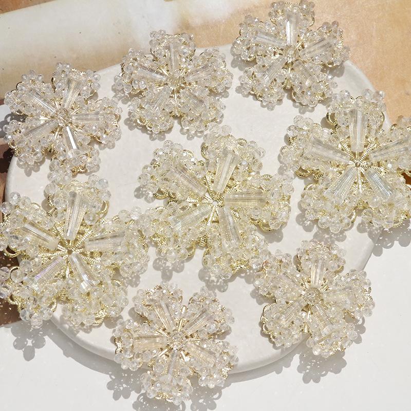 Temperamento de lujo ligero exagerado cristal copo de nieve flor diy tejido a mano con cuentas horquilla accesorios para el cabello material para aretes al por mayor
