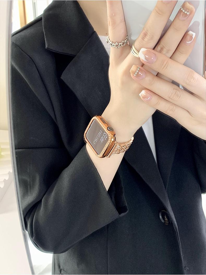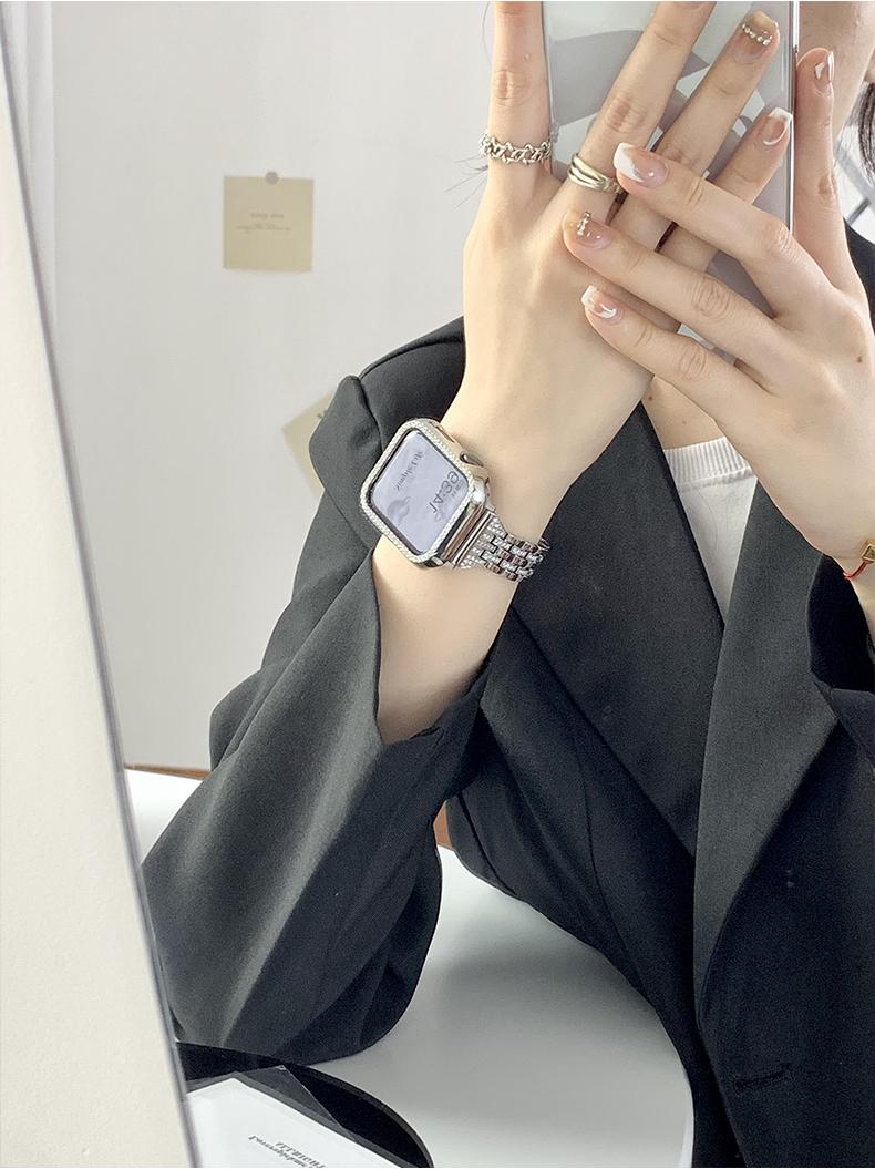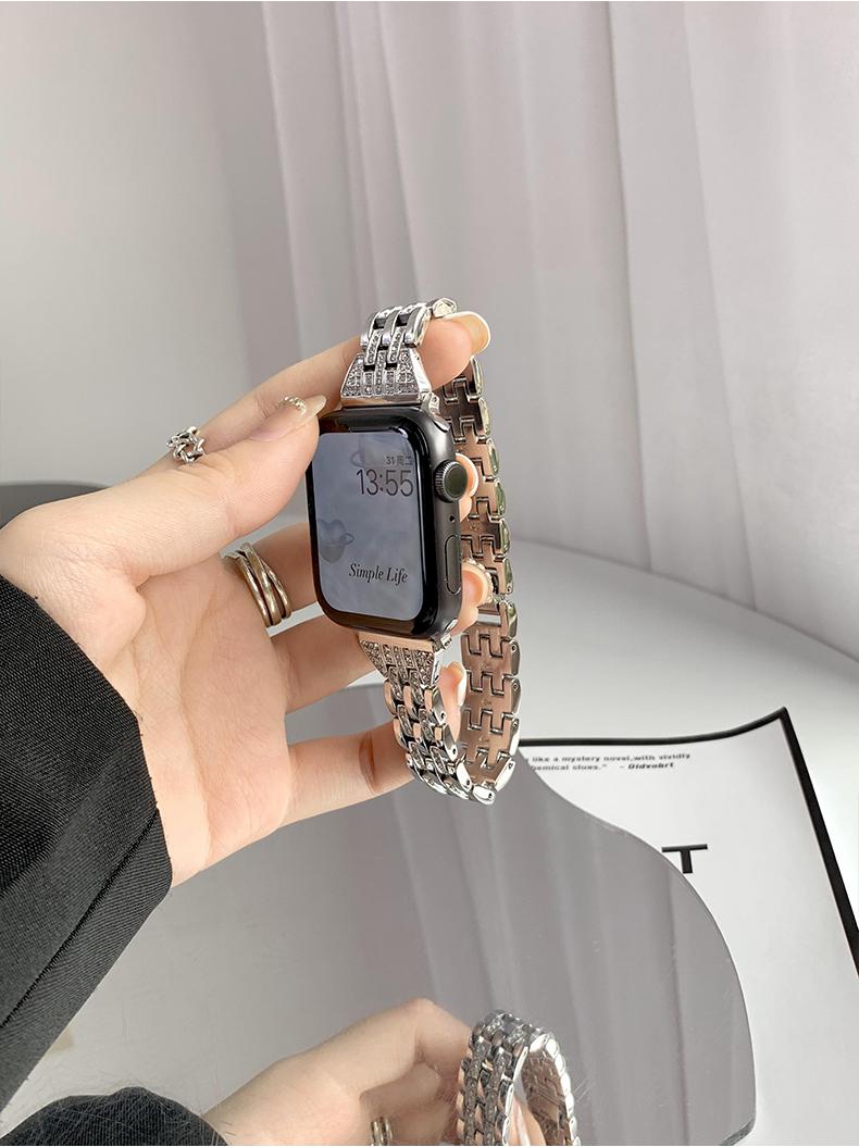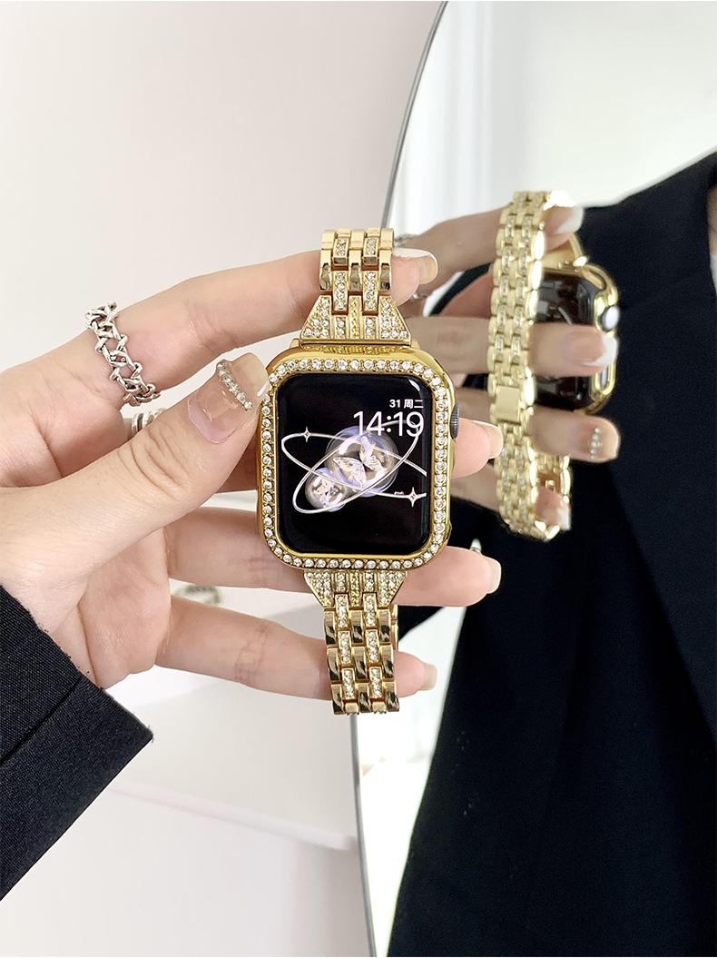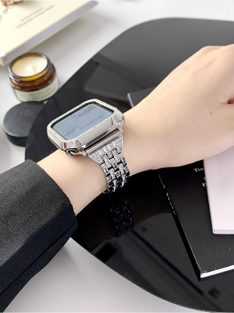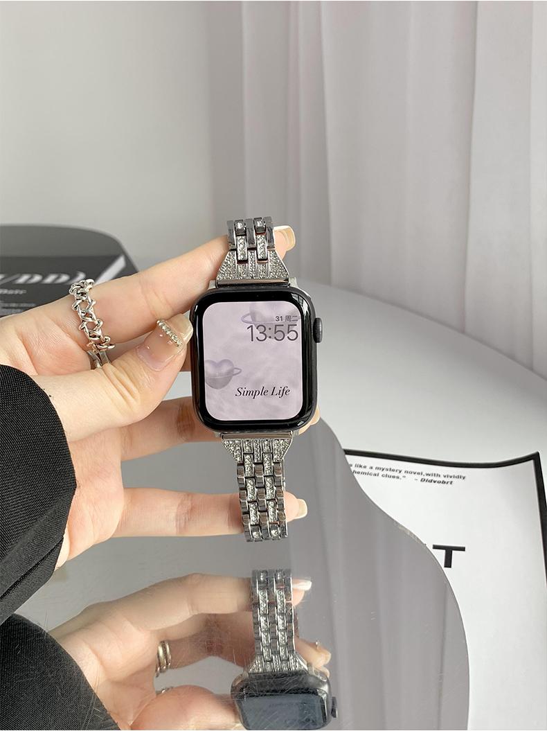 Adecuado para iwatch10 Correa de Metal con Diamantes para Apple Watch applewatch9876 Generación se Cintura Pequeña de Hombre