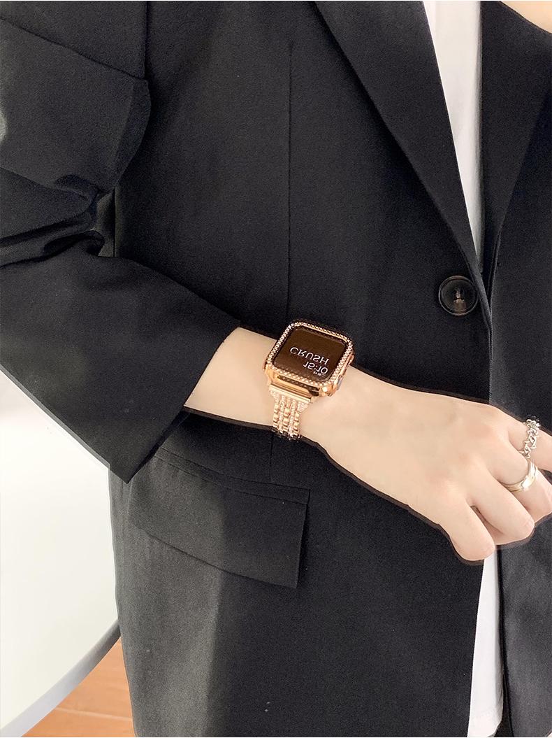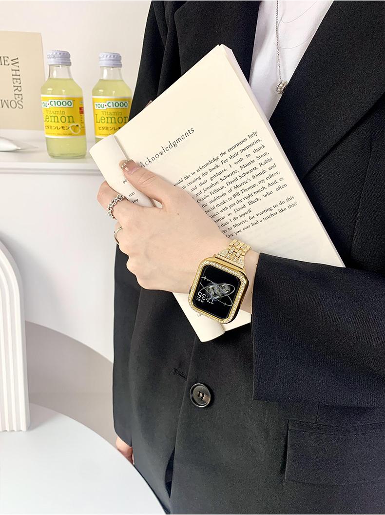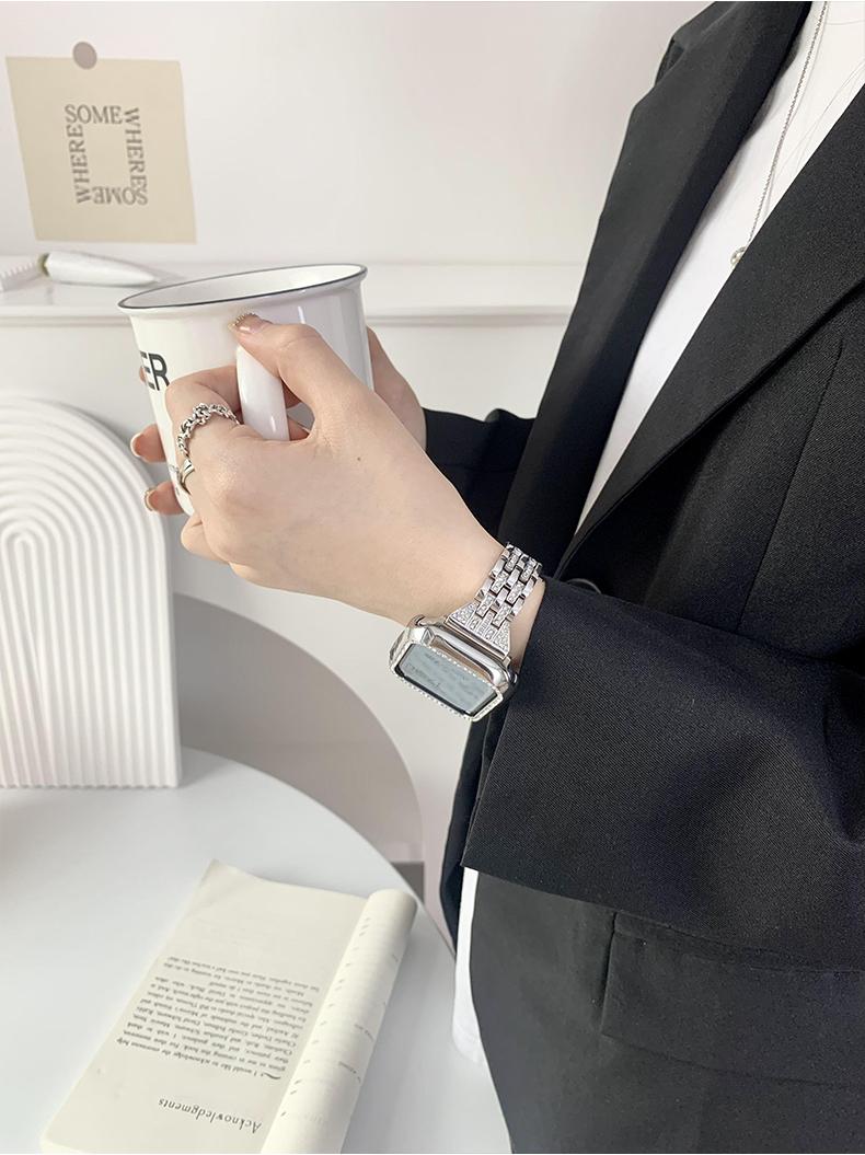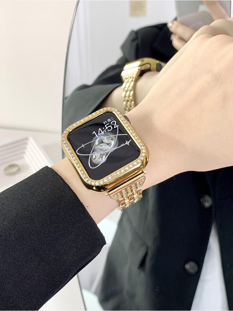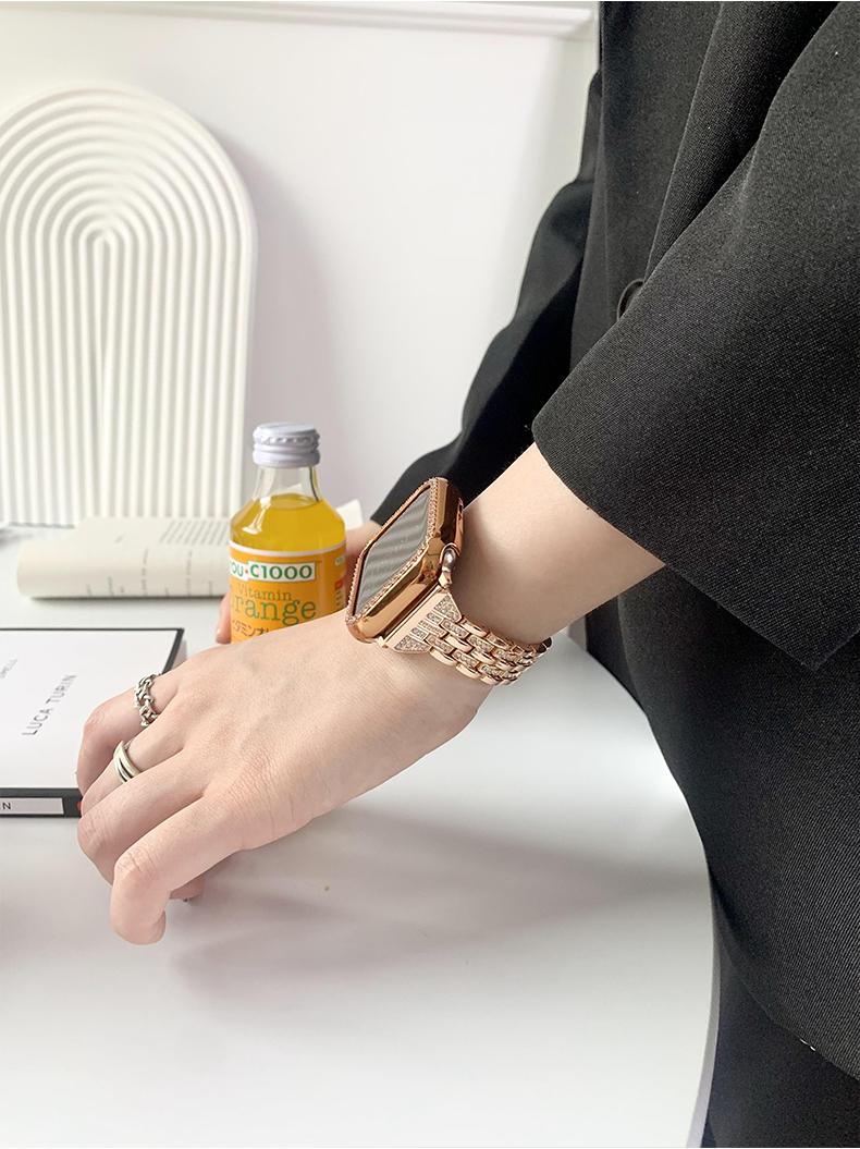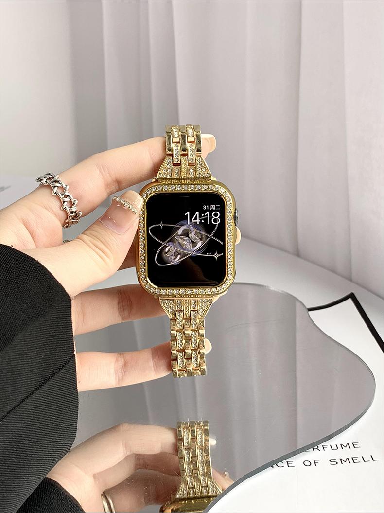 Adecuado para iwatch10 Correa de Metal con Diamantes para Apple Watch applewatch9876 Generación se Cintura Pequeña de Hombre