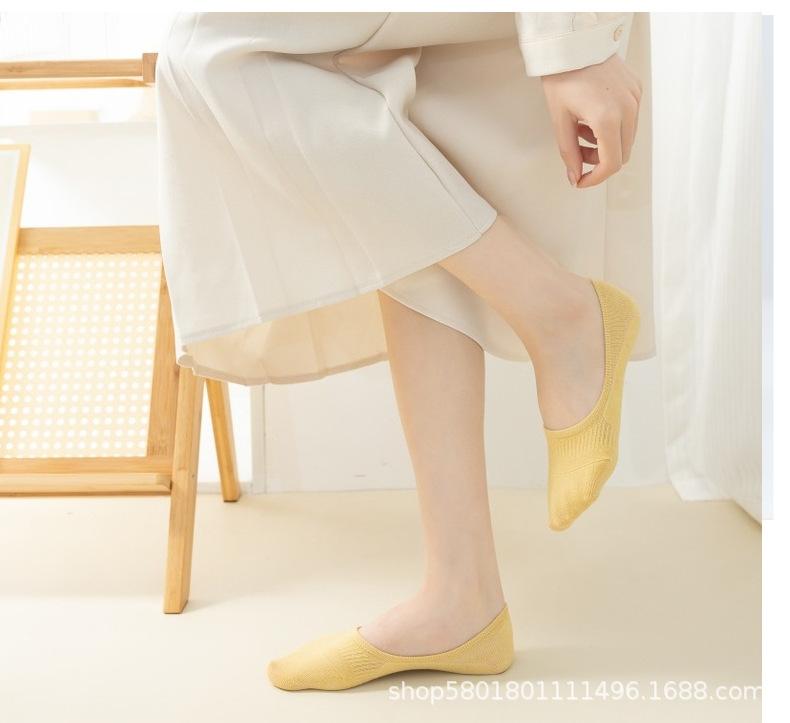 Calcetines invisibles para barco para mujer, antideslizantes, que no se caen, con desodorante de silicona para primavera y verano, bajos, combinables, de algodón fino, para niñas, calcetines invisibles de boca baja