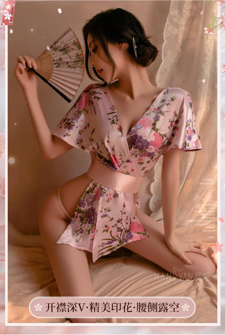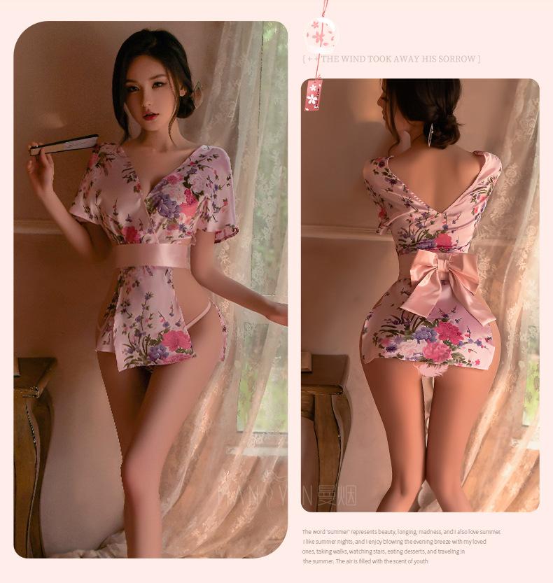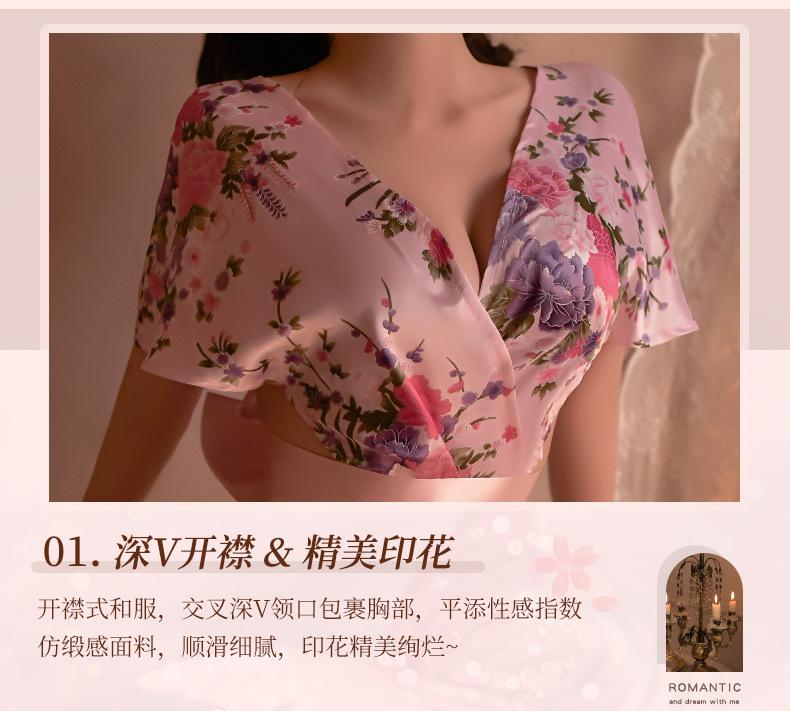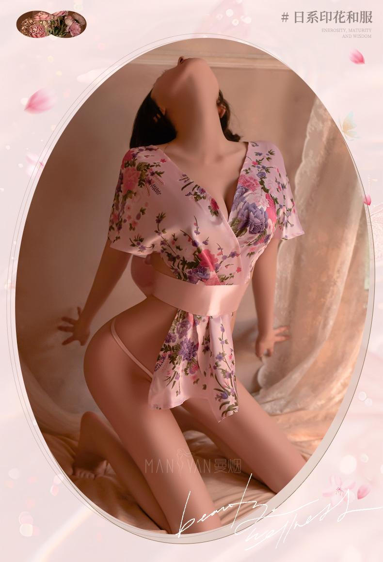 Lencería Sexy para Mujer Sexy Escote en V Profundo Cintura Expuesta Hermosa Espalda Estilo Japonés Cárdigan Estampado Kimono Bata Conjunto 1996