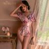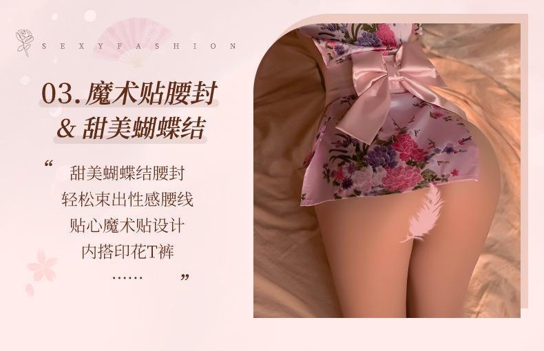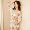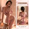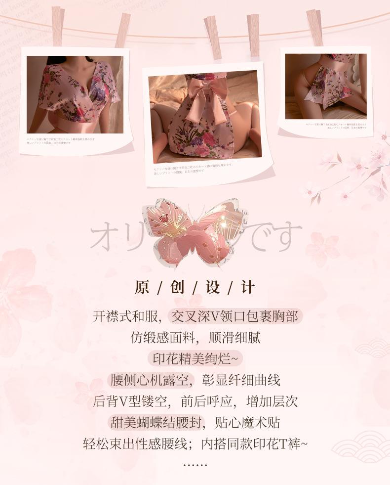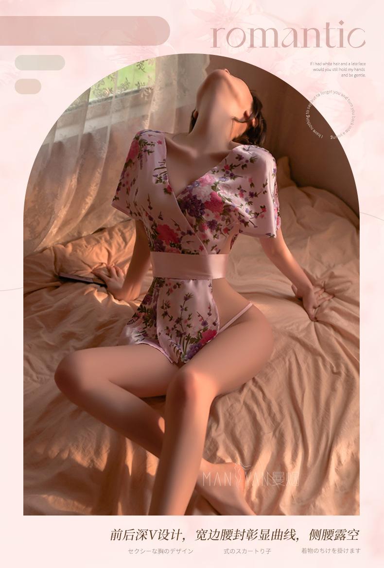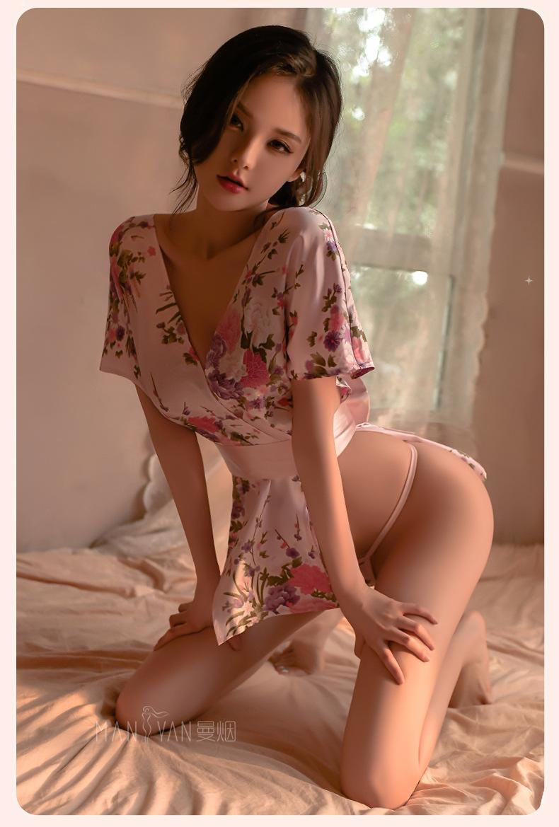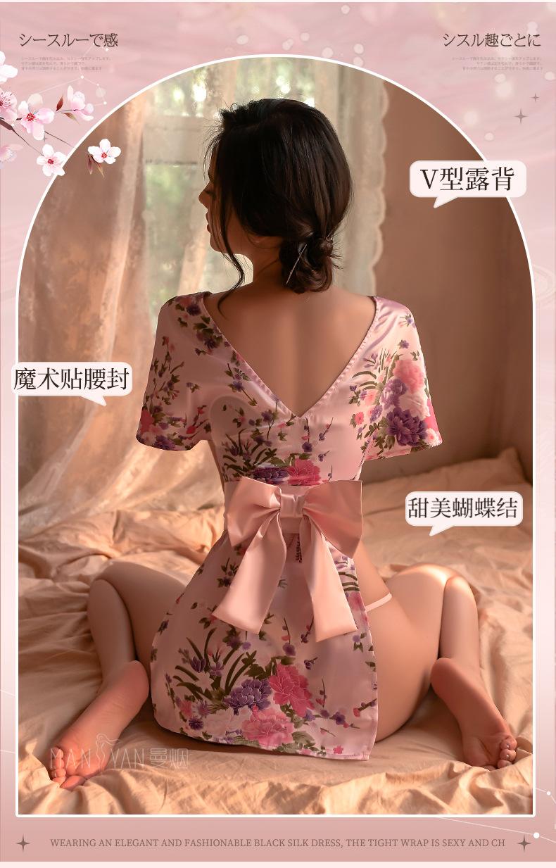 Lencería Sexy para Mujer Sexy Escote en V Profundo Cintura Expuesta Hermosa Espalda Estilo Japonés Cárdigan Estampado Kimono Bata Conjunto 1996
